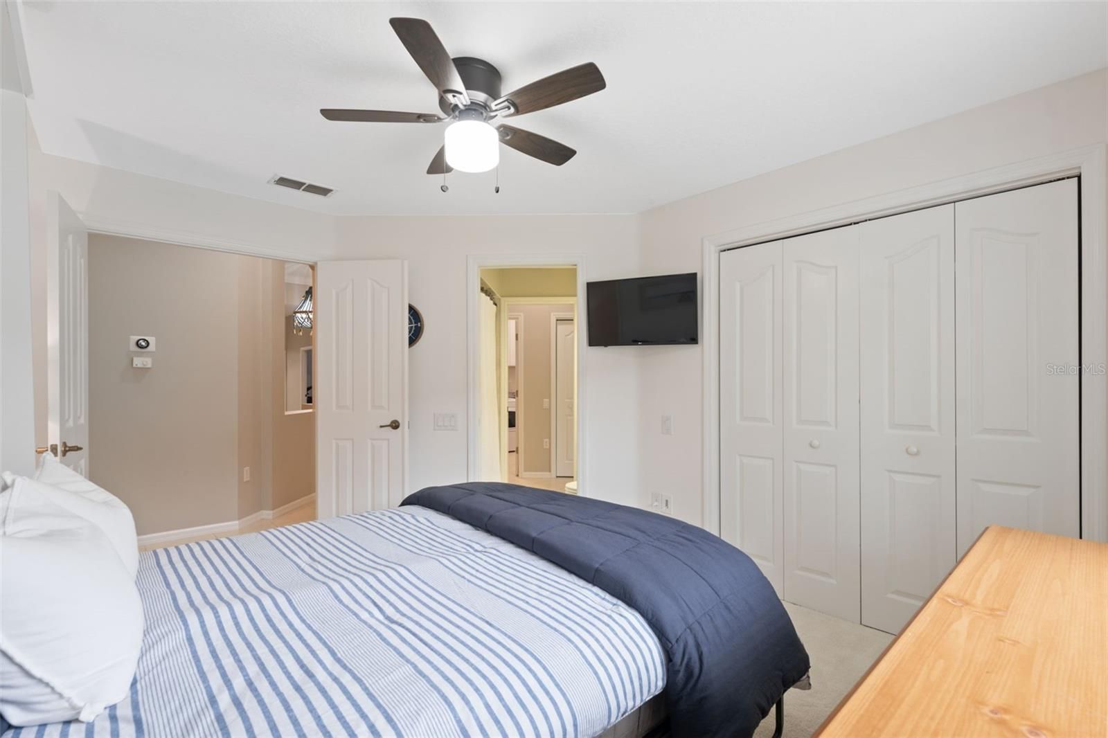- Attic Ventilator, Ceiling Fan(s), High Ceilings, Open Floorplan, Main Level Primary, Split Bedrooms, Thermostat, Walk-In Closet(s)