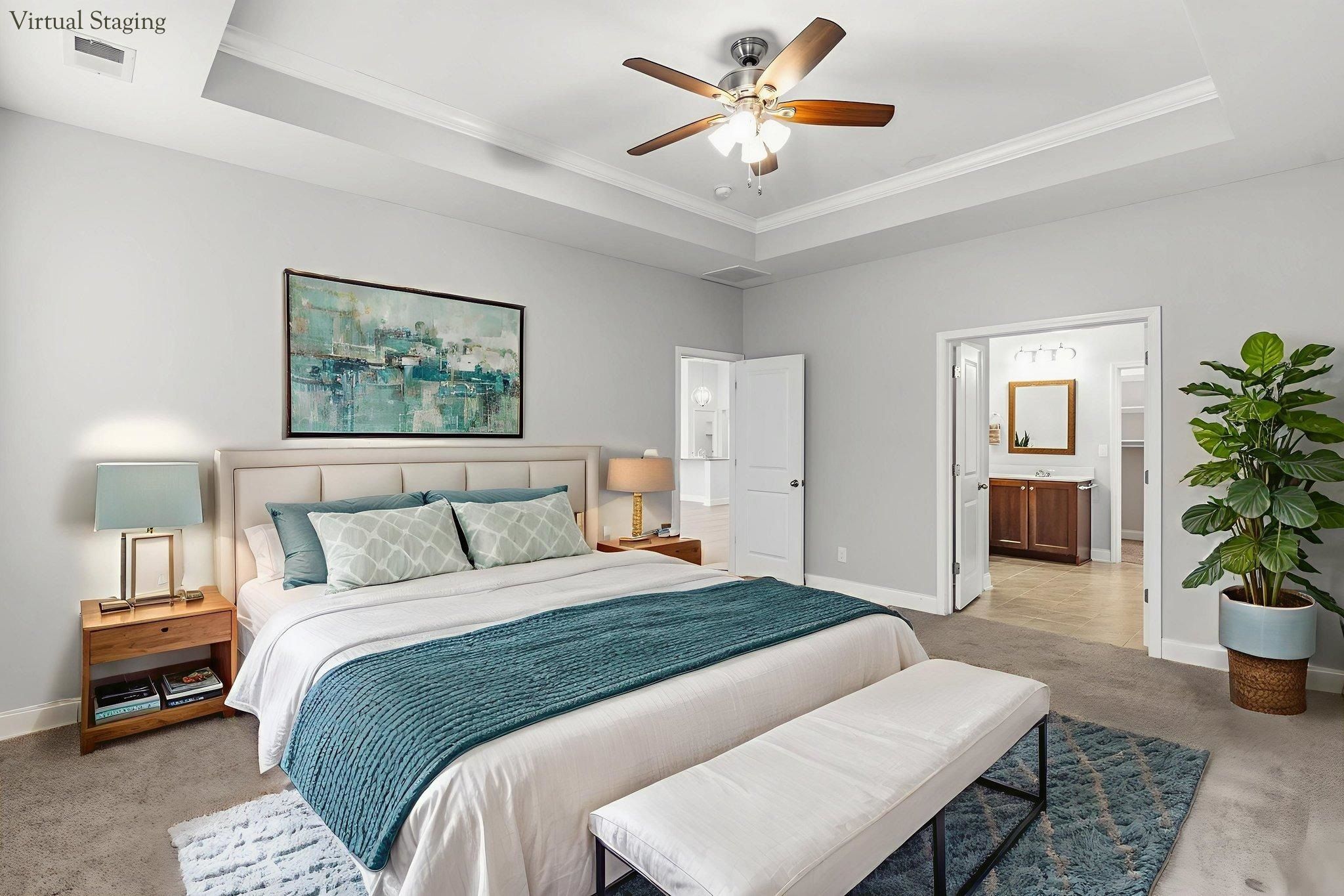 - Tray Ceiling(s), Ceiling Fan(s), Dual Sinks, Fireplace, LinenCloset, Main Level Primary, Tub Shower, Vanity, Walk-In Closet(s), Breakfast Bar, Bedroom on Main Level, Breakfast Area, Entrance Foyer, Kitchen Island, Stainless Steel Appliances, Solid Surface Counters