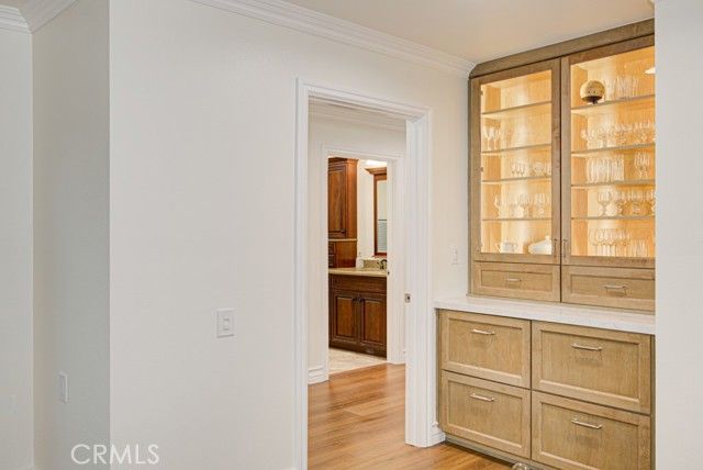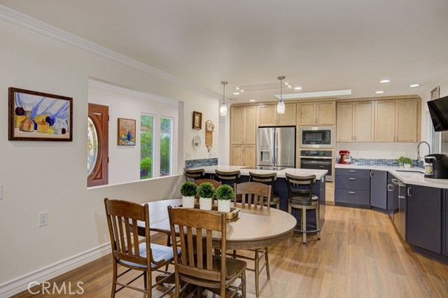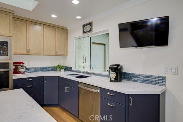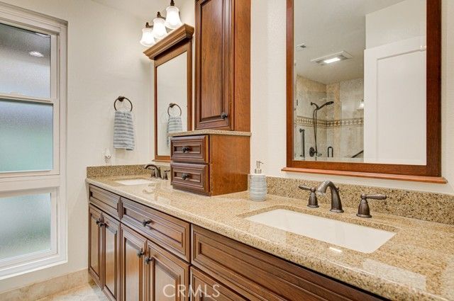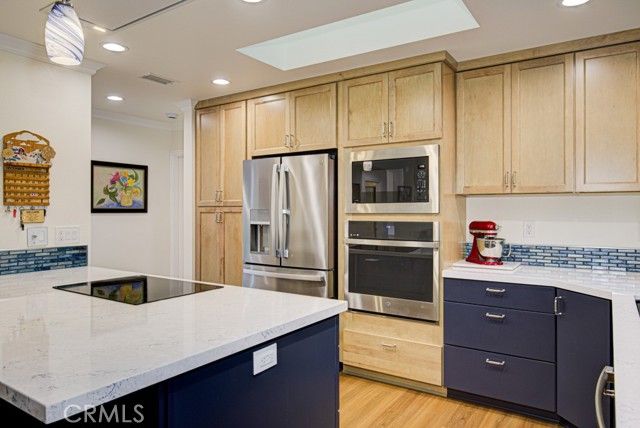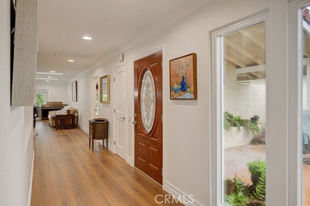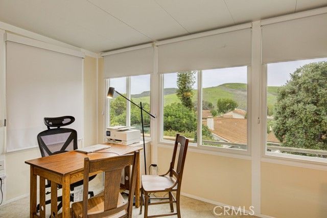 Enjoy beautiful views from this single-level residence nestled on a serene cul-de-sac in prestigious Gate 11 of Laguna Woods Village - the premier 55+ community just minutes from Laguna Beach. This remodeled 2 bedroom, 2 bathroom residence offers approximately 1,578 square feet of thoughtfully designed living space, plus an additional enclosed sunroom of about 200 square feet that creates a light-filled extension of the main living area and a perfect spot to enjoy morning coffee or evening relaxation. From the back of the home, picturesque hillside views provide a tranquil backdrop, while the spacious front courtyard offers a welcoming and private outdoor area ideal for entertaining or a quiet retreat.? Inside, the home has been transformed and features two spacious primary bedrooms, each with its own en-suite bathroom, providing exceptional comfort and privacy for owners and guests alike. The open-concept kitchen is the centerpiece of the living space, showcasing stainless steel appliances including an induction cooktop, new custom KraftMaid cabinetry with soft-close drawers and doors, a pantry with roll-out shelves, and multiple pull-out drawers that maximize storage and convenience. New custom closets in the bedrooms add to the organized feel of the home, while the full-sized washer and dryer are conveniently located inside enhancing everyday ease of living. Modern upgrades are evident throughout, including recessed lighting, ceiling fans, and skylights with remote controlled shades that bring in abundant natural light. An inviting electric fireplace adds warmth and ambiance to the main living area, making it a cozy gathering space in cooler months. Newly installed SOLAR PANELS with backup battery offer energy efficiency and peace of mind, helping to manage utility costs. Also, another great upgrade - new plumbing throughout. An attached two-car garage provides direct access and generous storage options. Beyond the home itself, residents enjoy an unparalleled array of resort-style amenities within Laguna Woods Village, including a 27-hole golf course, pickleball, 7 clubhouses, 5 pools, 3 fitness centers, social clubs, and year-round activities, all set amidst rolling hills and manicured grounds in an exclusive guard-gated environment. This residence blends refined design, modern comfort, and a coveted location into a truly luxurious offering in one of Southern California’s most desirable 55+ communities. Come and see this move-in ready home.