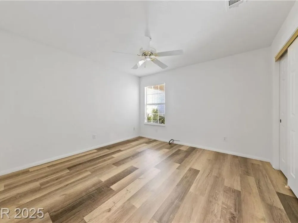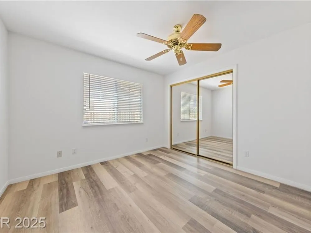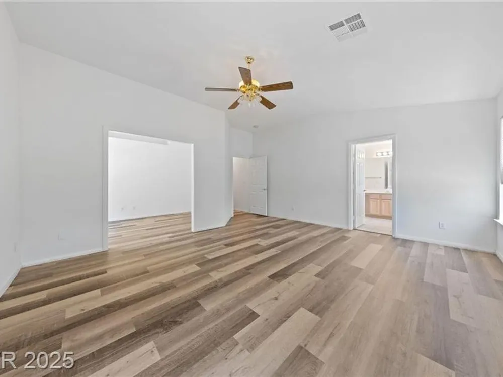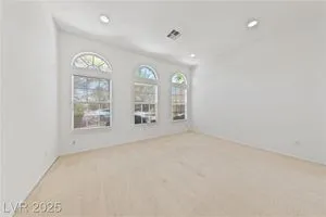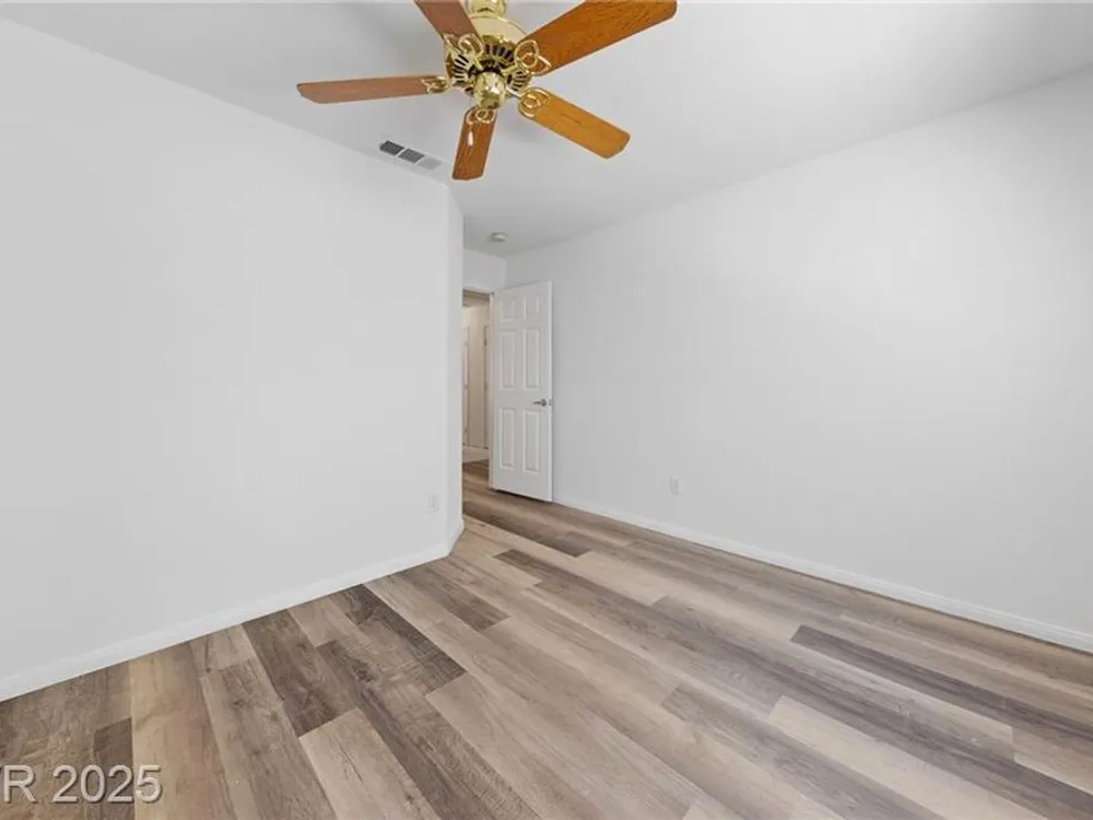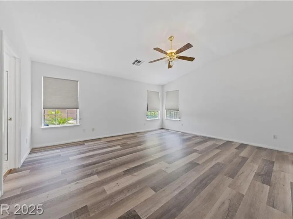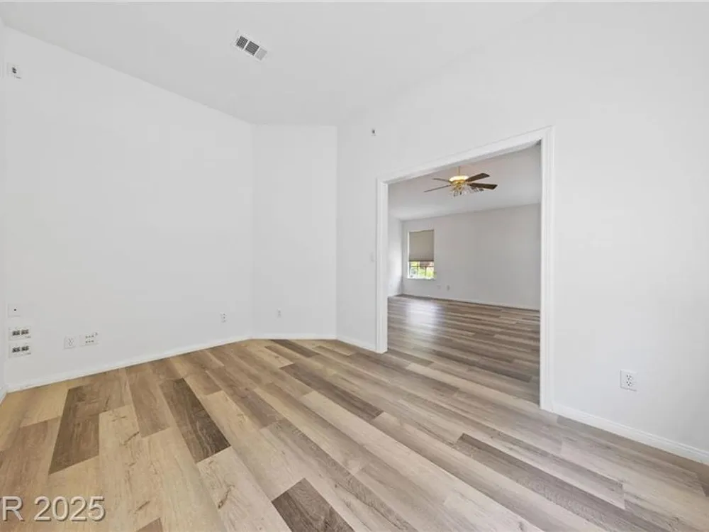 Beautiful Single-Story Home in Los Prados Golf Course Community!Welcome to this lovely 4-bedroom, 2-bath home with a spacious 3-car garage, offering 2,349 sqft of comfortable living space. Located in the sought-after guard-gated Los Prados community, this home features an open floor plan, fresh interior paint throughout, and new luxury vinyl flooring in the bedrooms, hallway, and washroom. The 4th bedroom is currently configured as a home office conveniently located off the primary suite—perfect for remote work or a quiet retreat. Enjoy the expansive backyard for relaxation or entertaining. Community amenities include: golf course, clubhouse with restaurant, two sparkling pools, Tennis & pickleball courts. scenic walking trails, RV parking available; and guard-gated security. Don’t miss this opportunity to live in one of Las Vegas’ desirable golf course communities!