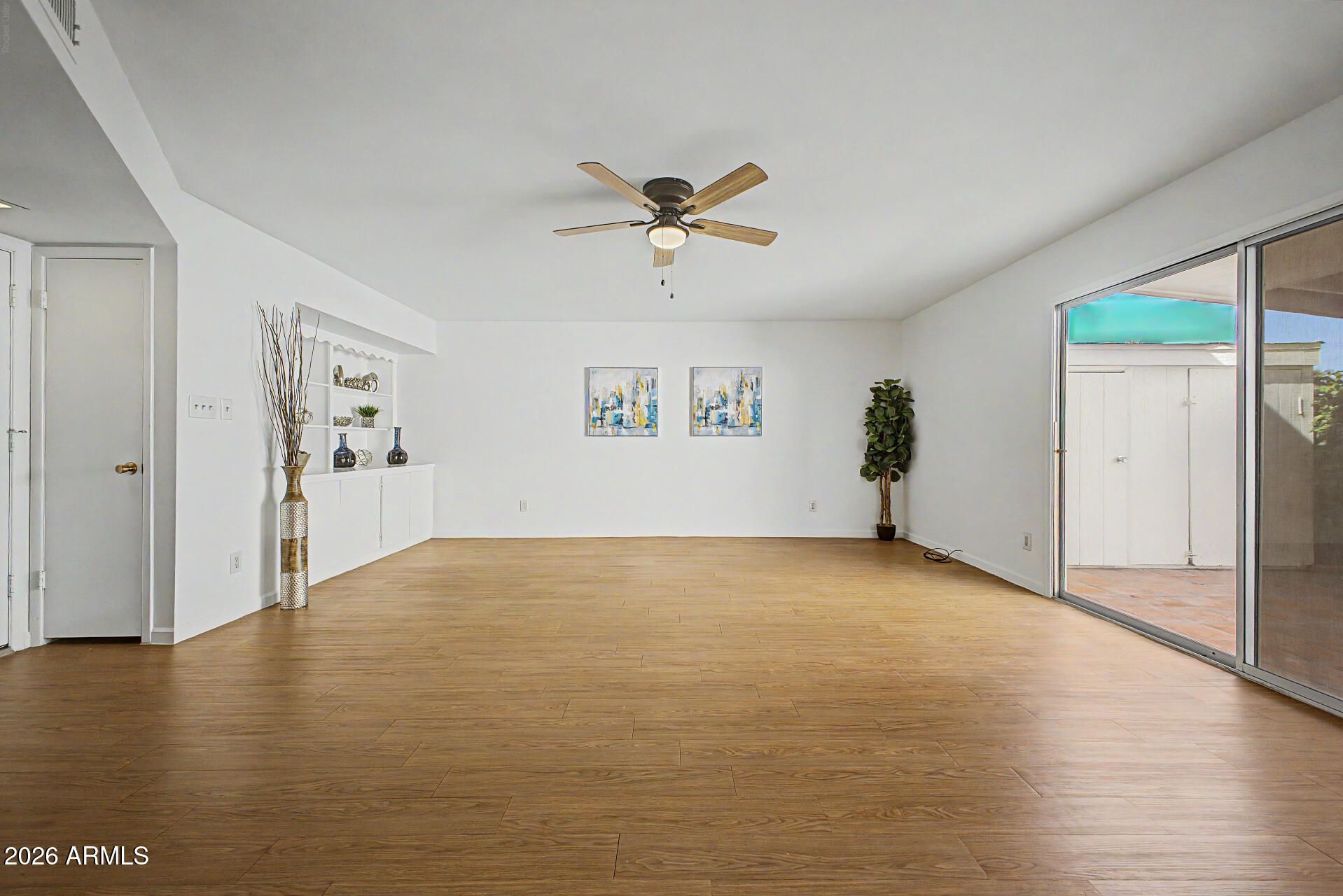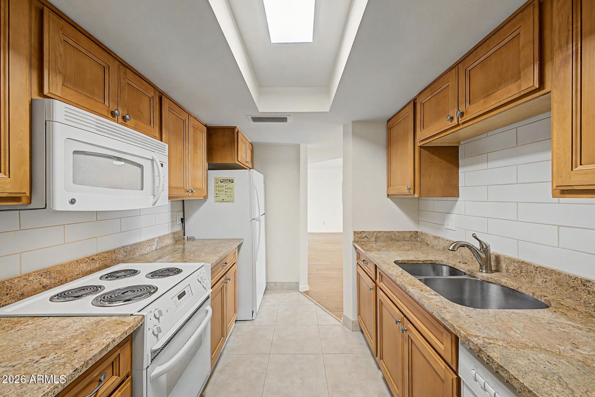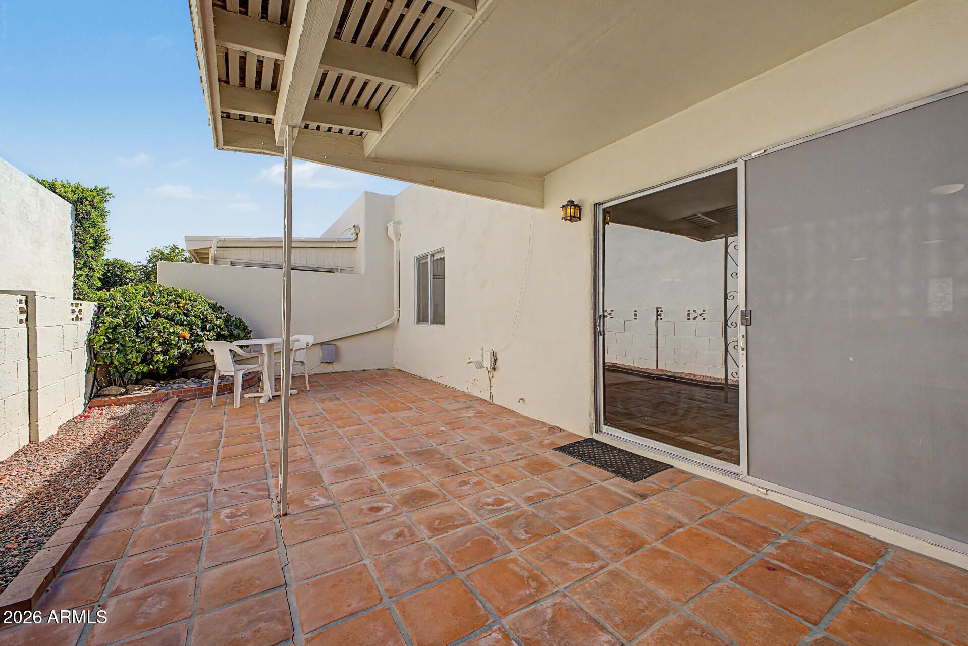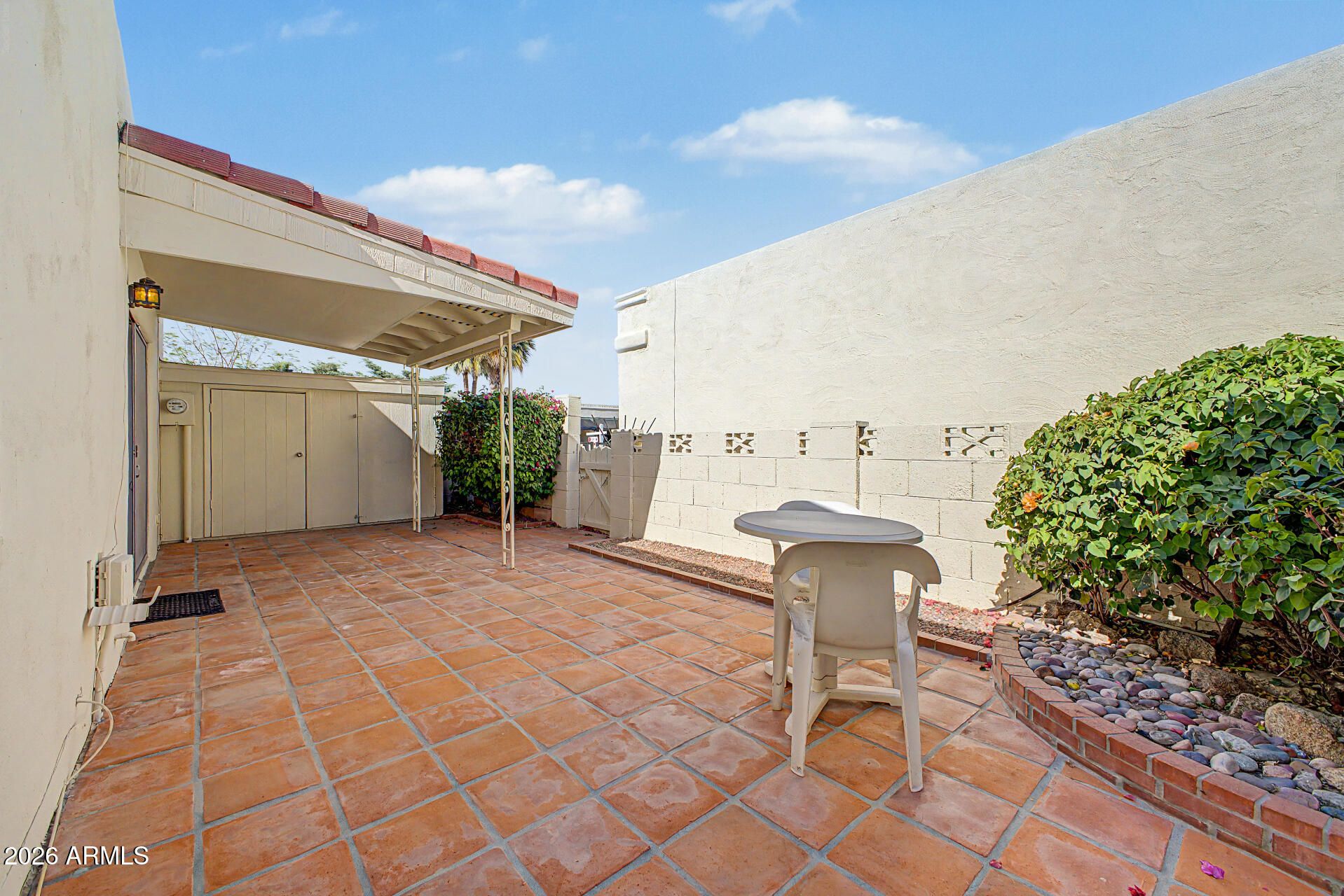 You'll love this delightful end unit townhome, right off of Chaparral & so close to golfing, tennis, spring training baseball, Old Town Scottsdale, museums, great restaurants, shopping and MORE! The open floor plan welcomes you into the spacious great room which overlooks the covered patio. Bonus built-in cabinetry & shelving are ready to showcase your special decor. The owner has done the following updates: Trane HVAC 2024, exterior painted 2024, roof resealed 2024, refrigerator 2024, backsplash, ceiling fans 2026, epoxy paint on carport floor, added front screen door & cabinets in the laundry room. The large primary bedroom has a private bathroom w/granite counter top & tile flooring. The kitchen has beautiful wood cabinetry, granite countertops, white appliances & bright lighting. There is plenty of room on the patio for your outdoor furniture and entertaining. The extra storage is awesome too!! When you want to take a refreshing swim, just exit the back gate, turn to the right and walk down to the community pool for your enjoyment!! All of the perks to staying cool and the HOA takes care of the pool!