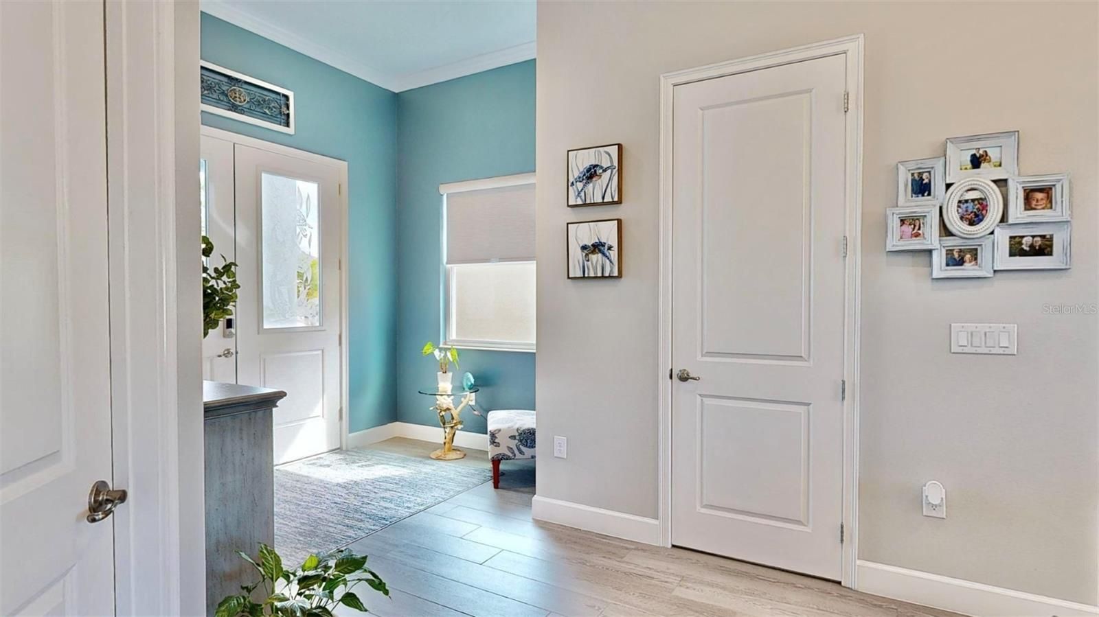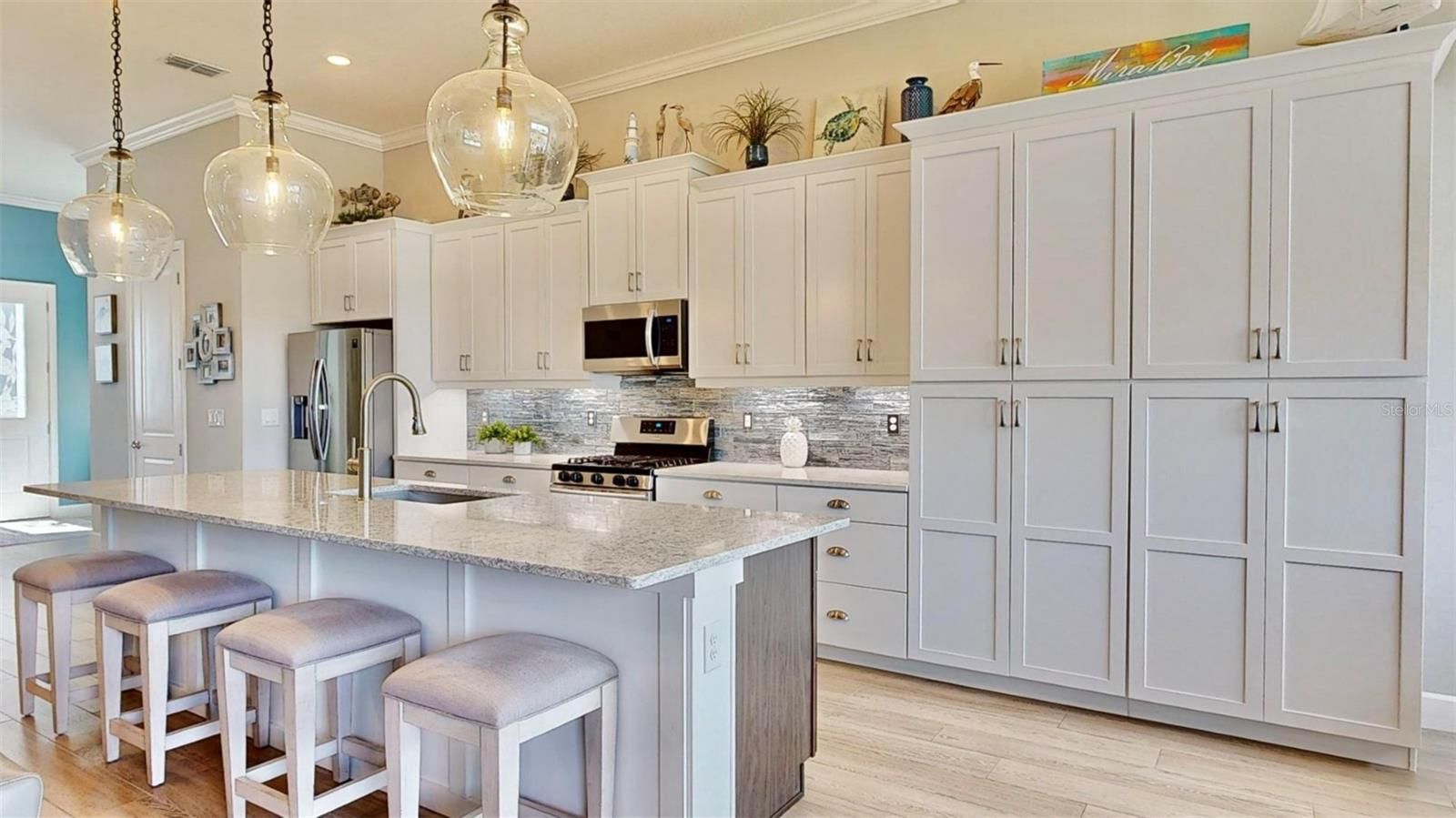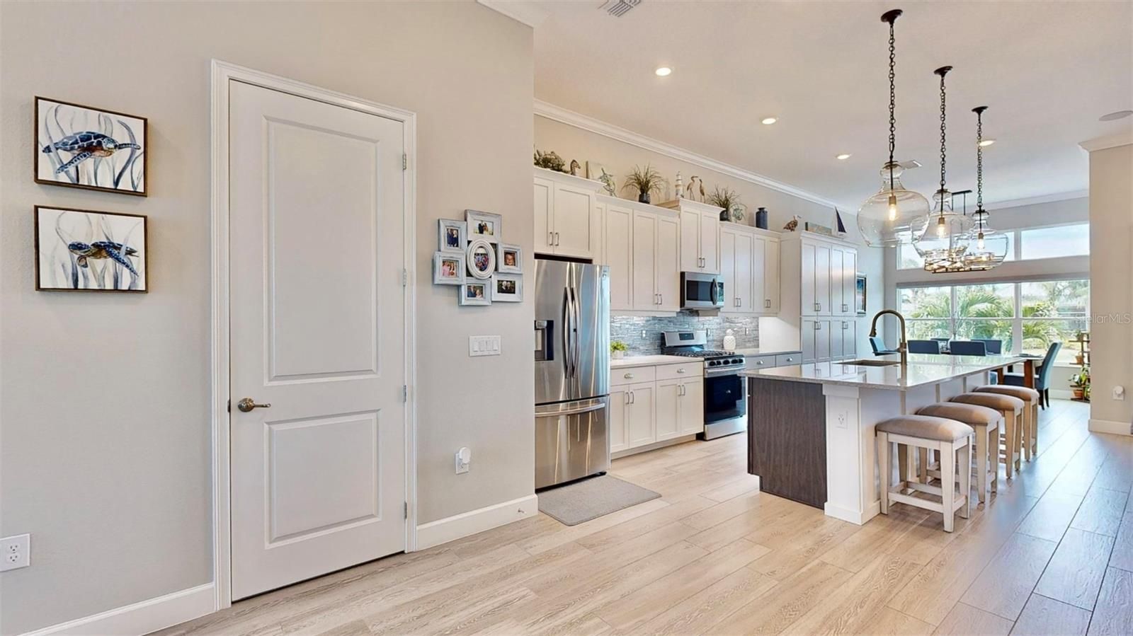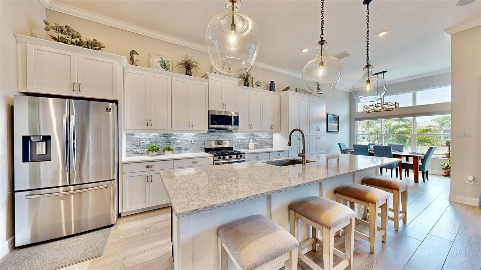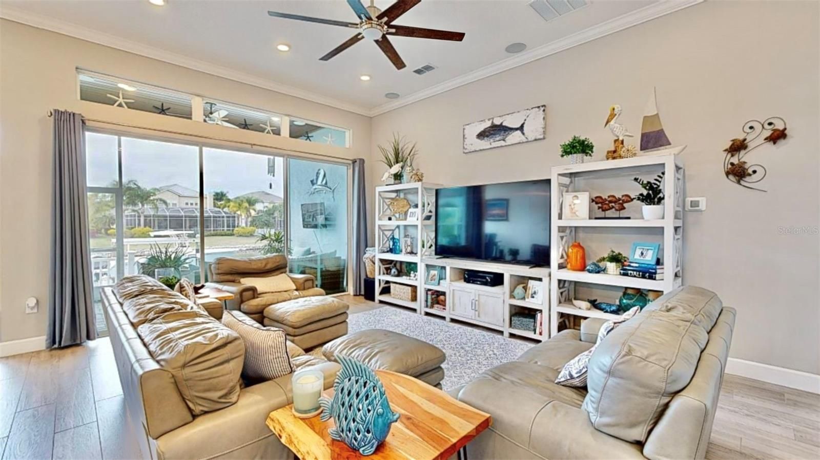 Waterfront living at its Finest! This coastal waterfront paradise boasts a private dock with a 10,000-pound boat lift, perfect for all your aquatic adventures. With 4 bedrooms and 4 baths, including a bonus room, there's ample space for family and guests. The 3 car finished garage offers plenty of room for the extra toys and storage! Step inside this newly built (2021) sanctuary spanning 2,993 square feet, and be greeted by breathtaking water views from every window. Custom touches include the serene sunlit master suite featuring a wet room with freestanding tub and walk in closets w barn doors that add to the coastal vibe. Entertain in style in the gourmet kitchen with quartz countertops, solid wood self-close cabinets, and a built-in wine rack and bar! Host gatherings seamlessly in the open-concept great room, flowing effortlessly onto the screened lanai overlooking the water. Additional luxuries include a stunning metal staircase, ceramic plank and luxury vinyl flooring, high end custom light fixtures, custom double front doors and much more! Nestled in a gated coastal neighborhood, this waterfront haven offers the perfect blend of elegance and relaxation. Residents enjoy the fine neighborhood amenities such as a 10,000 sq ft Clubhouse, Olympic size heated swimming pool, sauna, state of the art gym, cafe, pickleball, basketball and tennis courts! Kayaks, sunfish and paddle boards are available to all residents to enjoy a day on the water! Move in Ready.