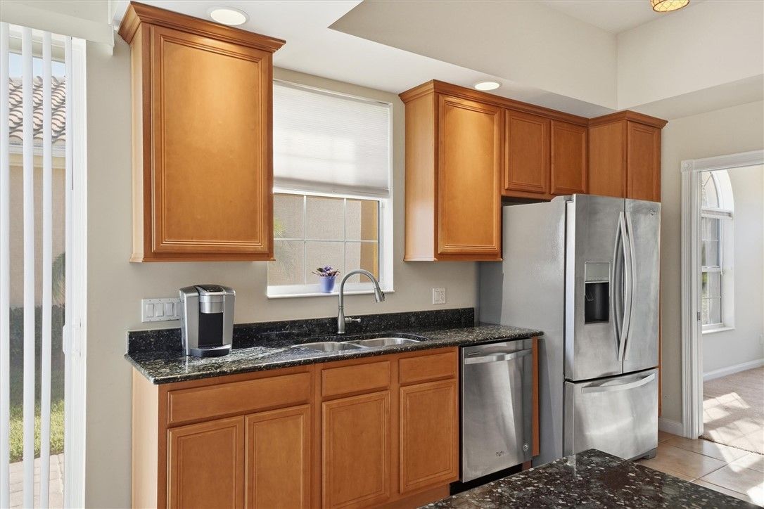 Enjoy the peaceful, private view of a large estuary, nature at its best in your own backyard. Amenity-rich community boasts clubhouse, pool, tennis and pickleball. Popular Oakmont model home creates an easy living interior, generous kitchen area with granite counters, stainless appliances, adjacent to the living and dining area of the open floor plan. Primary suite has two ensuite baths. Impact windows and doors throughout the home. The roof received a good report at recent inspection. Extras: Generac generator, epoxy garage floor and built-in work station, newly screened-in porch.