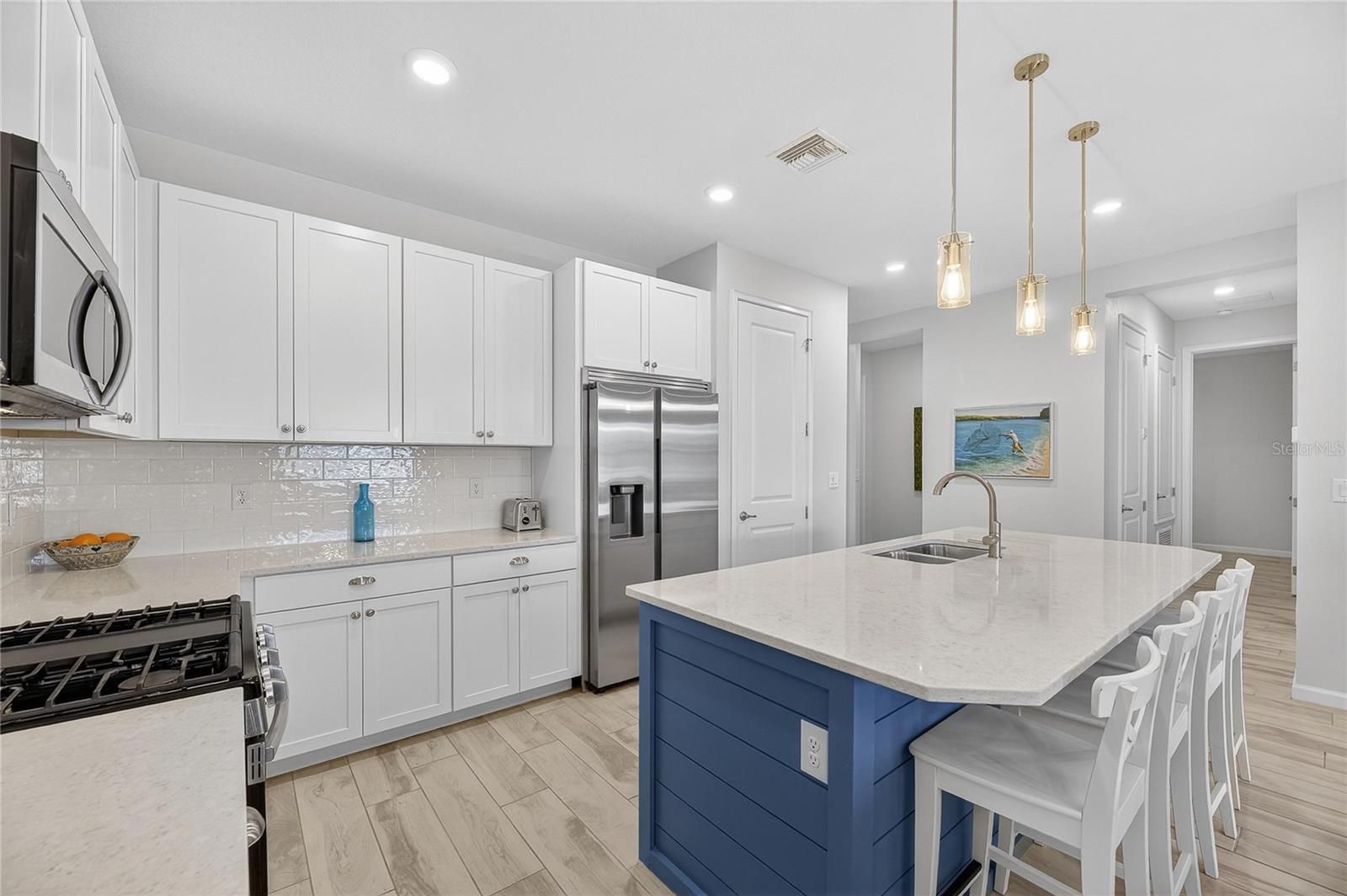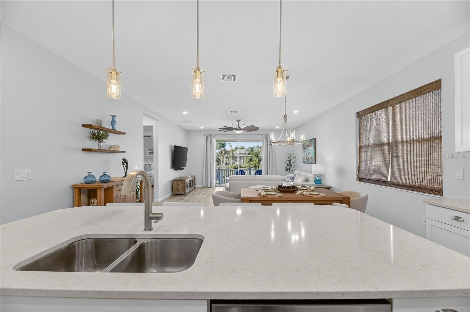 5235 Wishing Arch Dr, Apollo Beach | 3 Bedrooms | 2 Bathrooms | 1,964 Sq Ft | Waterfront | Private Dock & 10,000-lb Boat Lift THE BEST-PRICED WATERFRONT NEWER CONSTRUCTION WITH A DOCK OPPORTUNITY IN APOLLO BEACH This immaculately maintained 3-bedroom, 2-bathroom waterfront home with dedicated office offers 1,964 square feet of modern coastal living at an unbeatable value. As the most affordable newer construction waterfront property with a private dock in Apollo Beach, this move-in-ready gem won't last long! WATERFRONT LIFESTYLE AWAITS: Step outside to your private dock featuring a 10,000-lb boat lift with direct saltwater access to Tampa Bay. Whether you're an avid boater, fisherman, or simply love waterfront views, this is Florida living at its finest. The property's high elevation provides added peace of mind while you enjoy stunning water views from your backyard. THOUGHTFULLY DESIGNED INTERIOR: The perfect split floor plan places the office at the front of the home, ideal for working from home or as a private study. The open-concept living area flows seamlessly toward the water, making it perfect for entertaining family and friends or relaxing while taking in the waterfront scenery. The upgraded kitchen features stainless steel appliances, beautiful quartz countertops, custom backsplash, and a large island with seating for casual dining and conversation. The primary suite includes two walk-in closets, providing exceptional storage space. The well-cared-for home features contemporary finishes throughout and includes a spacious 2-car garage for convenience and storage. RESORT-STYLE LIVING IN MIRABAY: Located in the highly sought-after gated community of MiraBay, you'll enjoy amenities that rival a five-star resort. The community features two heated pools open year-round plus a thrilling waterslide for endless family fun. Stay active at the 24-hour fitness center, tennis courts, pickleball courts, and basketball courts. Explore miles of scenic walking and biking trails winding throughout the neighborhood, or cruise the golf cart-friendly streets to the clubhouse, café, or waterfront activities. Water enthusiasts will love the community kayaking and paddleboarding opportunities. The community clubhouse offers a comfortable lounge and café for socializing, and a full-time activities coordinator plans year-round events and programs for residents. Families will appreciate the well-maintained parks and playgrounds scattered throughout MiraBay. PRIME LOCATION: Positioned in the highly desirable MiraBay Community, you're just minutes from excellent shopping, dining, and entertainment options while enjoying the tranquility of waterfront living. THIS IS YOUR MOMENT: Newer construction waterfront homes with private docks are rare finds, and at this price point, they're virtually unheard of. This well-loved property is priced to sell and ready for its next chapter. Don't miss this exceptional opportunity to own your piece of paradise in one of Tampa Bay's most sought-after communities. Schedule your private showing today and start living the waterfront lifestyle you've always dreamed of!