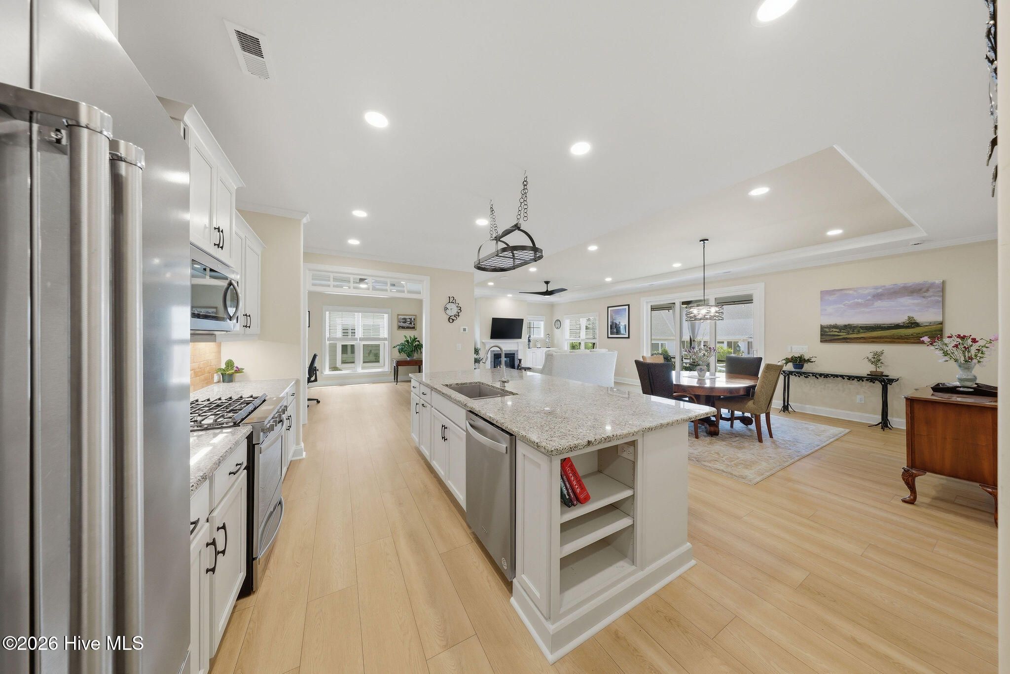 - Master Downstairs, Walk-in Closet(s), Tray Ceiling(s), High Ceilings, Solid Surface, Kitchen Island, Ceiling Fan(s), Pantry, Walk-in Shower