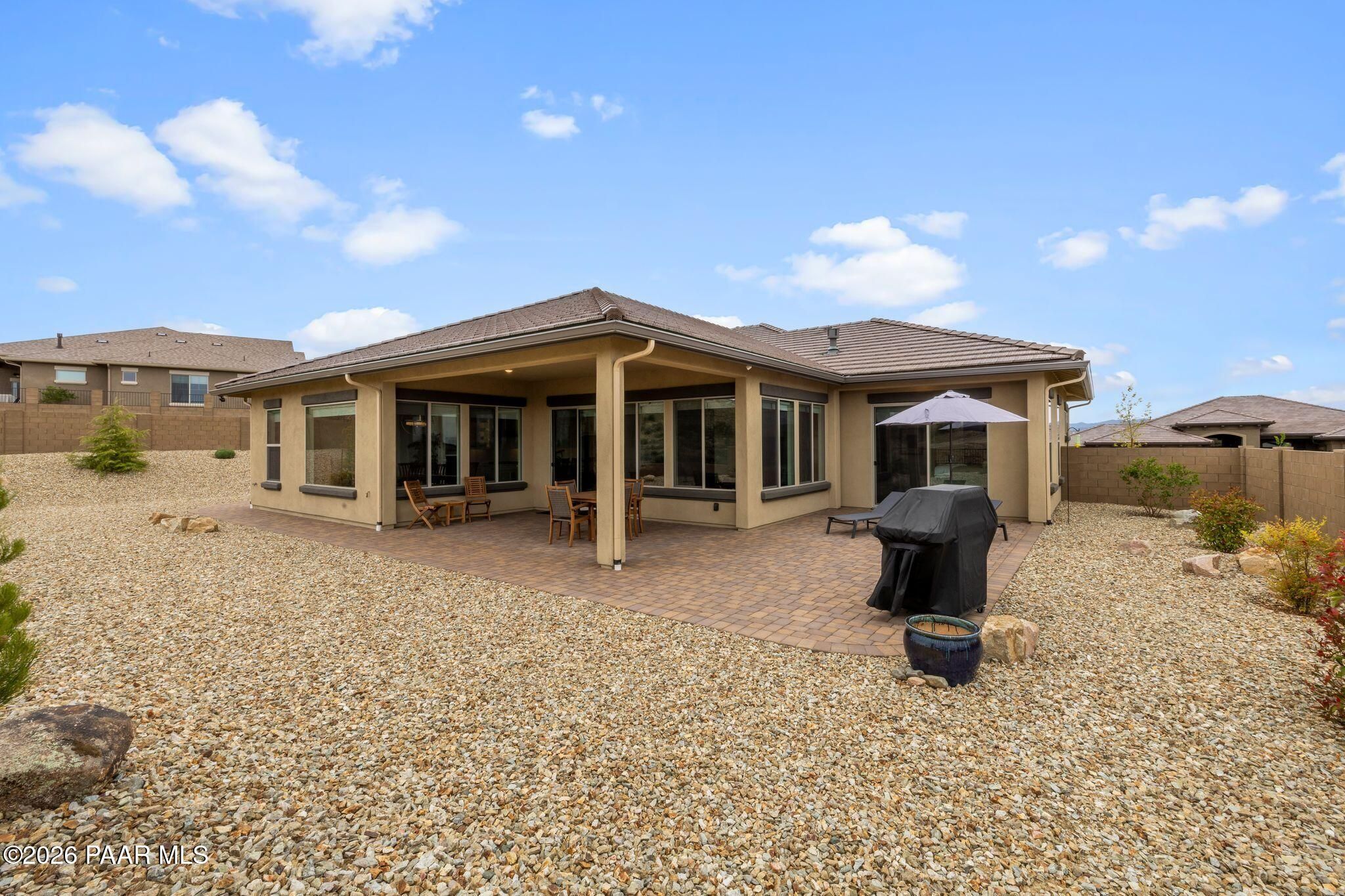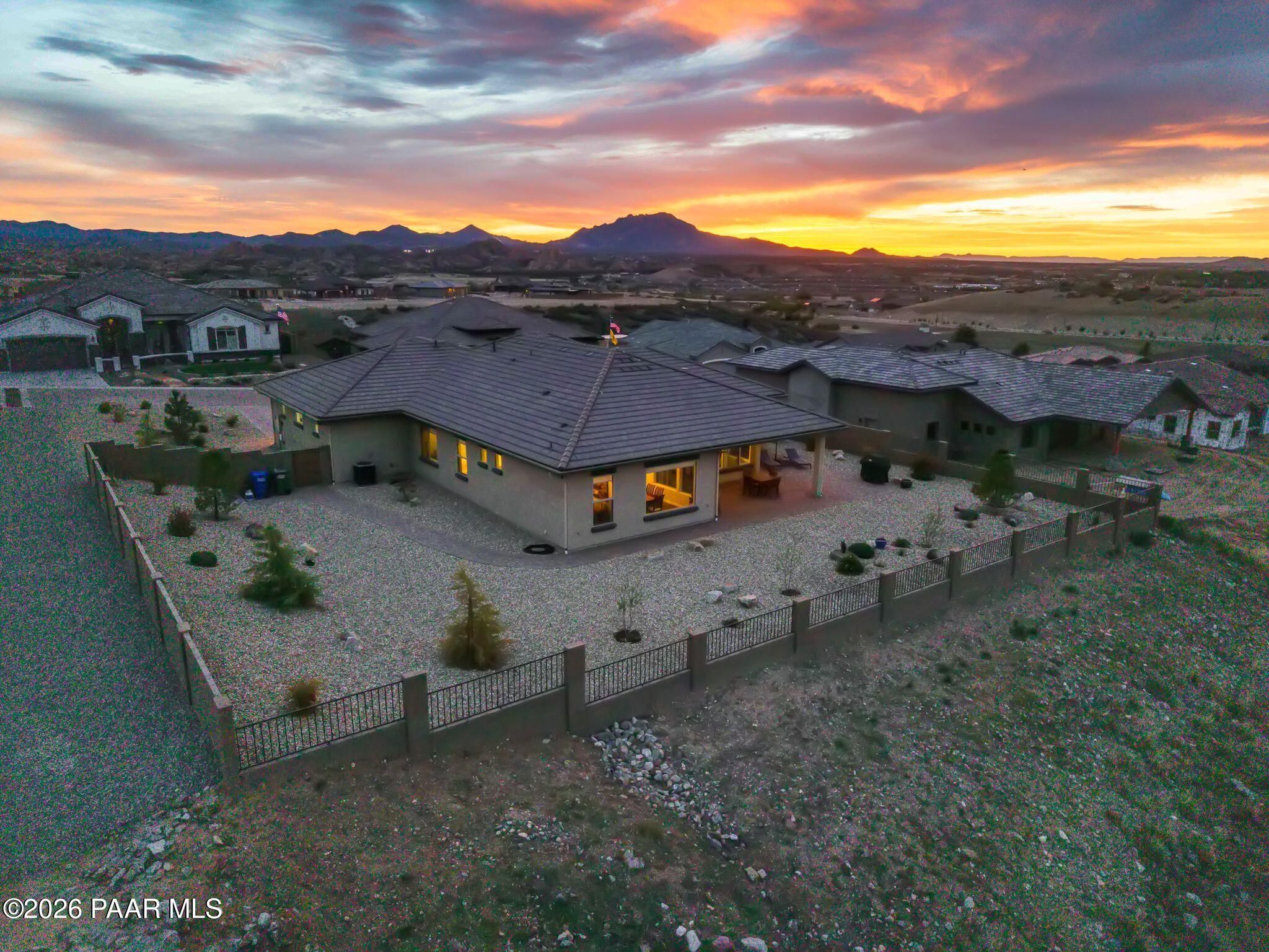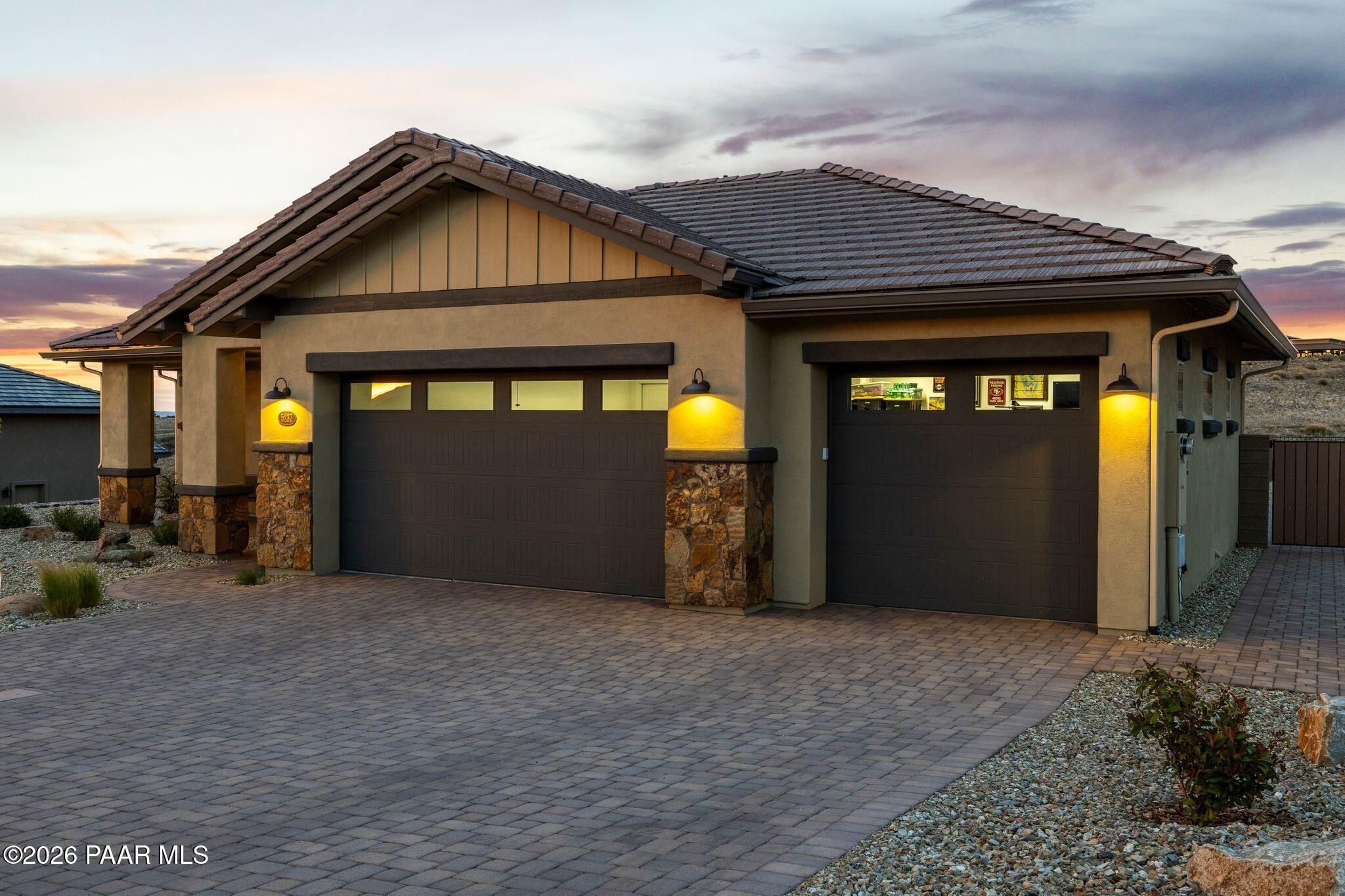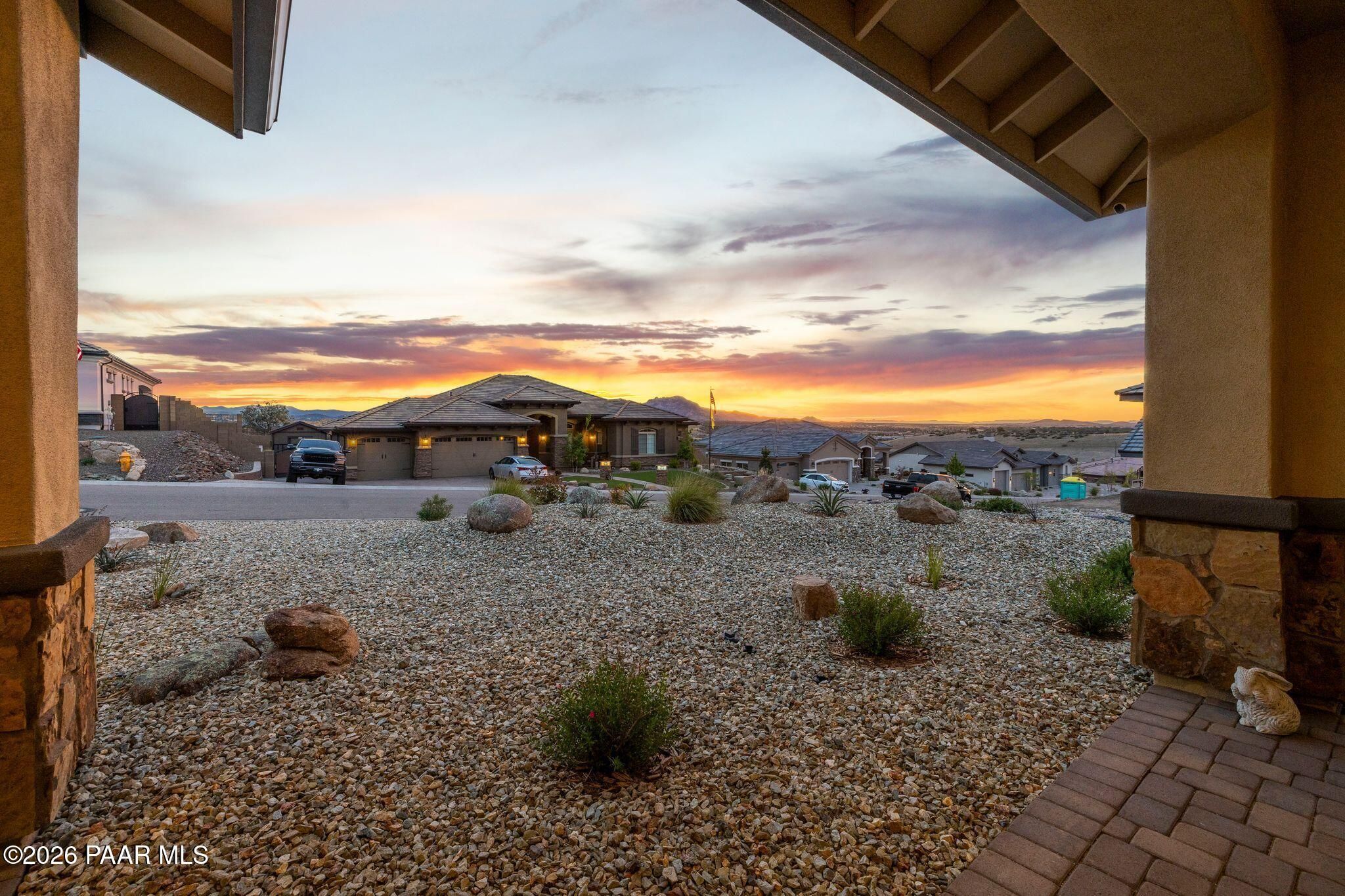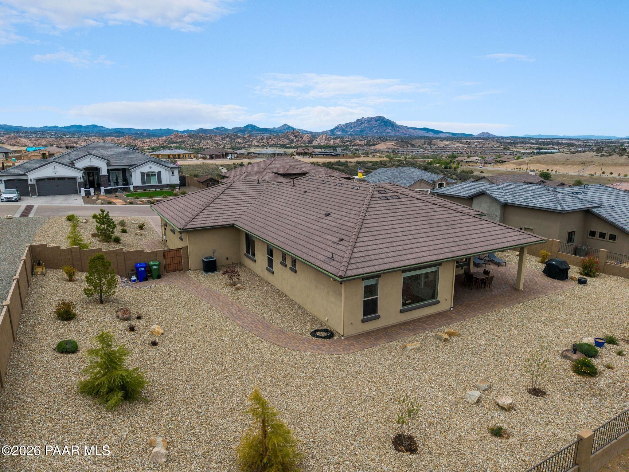 Discover the pinnacle of luxury living in the highly coveted, prestigious, and secure gated community of Granite Dells Estates. This stunning custom-built residence, meticulously crafted by the renowned Stoddard Lifestyle Homes, offers an unparalleled, absolutely turnkey experience, ready for immediate occupancy. Spanning 2,322 square feet of thoughtfully designed interior space, this home exudes pure elegance and functionality. The layout features three spacious bedrooms and three full bathrooms, including two luxurious ensuites, providing comfort and privacy for residents and guests alike. The heart of the home is an expansive, open-concept great room, perfect for entertaining or relaxing. Anchored by a cozy gas fireplace, this grand space flows seamlessly into the gourmet chef's kitchen. The state-of-the-art kitchen is a culinary enthusiast's dream. It boasts a spacious dining area and a massive center island, which is not only a functional workspace but also a stylish focal point, featuring a durable, low-maintenance granite composite sink. Premium features include a convenient wine refrigerator, elegant glass door display cabinets, and top-of-the-line stainless steel appliances. Just off the kitchen, a versatile butler's pantry or dedicated hobby room provides invaluable additional flexible and functional living space, perfect for extra storage, prep work, or pursuing creative projects. No detail has been overlooked in the selection of high-end finishes. The home showcases stunning, smooth quartz countertops, elegant white custom cabinetry complemented by sleek stainless steel hardware, and sophisticated under cabinet lighting to create a warm ambiance. The main living areas feature exquisite, durable planked tile floors that offer both beauty and ease of maintenance. Perhaps the most captivating feature is the home's connection to nature. Massive picture windows span the entire back of the residence, framing and offering breathtaking, unobstructed, and protected open space views that create a serene and private backdrop for everyday living. Capping off this exquisite property is a truly exceptional amenity: an oversized, five-car garage. Spanning over 1,000 square feet, this substantial space provides ample room for multiple vehicles, storage, a workshop, and all your recreational equipment, appealing to collectors and hobbyists alike. This Granite Dells Estates home is a masterpiece of custom construction, blending luxurious finishes, modern functionality, and unparalleled views into a perfect residential retreat.