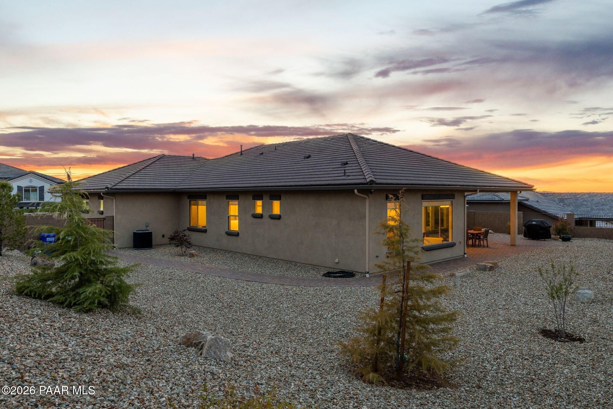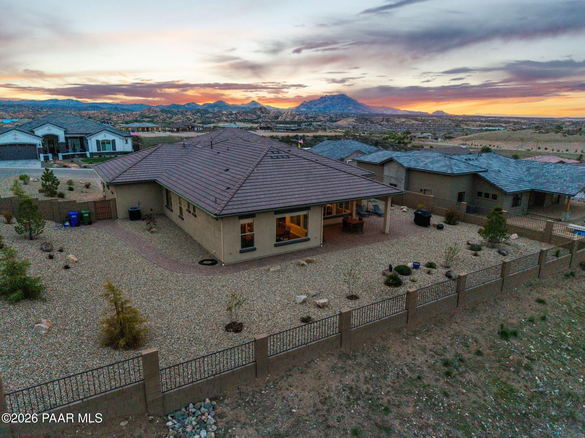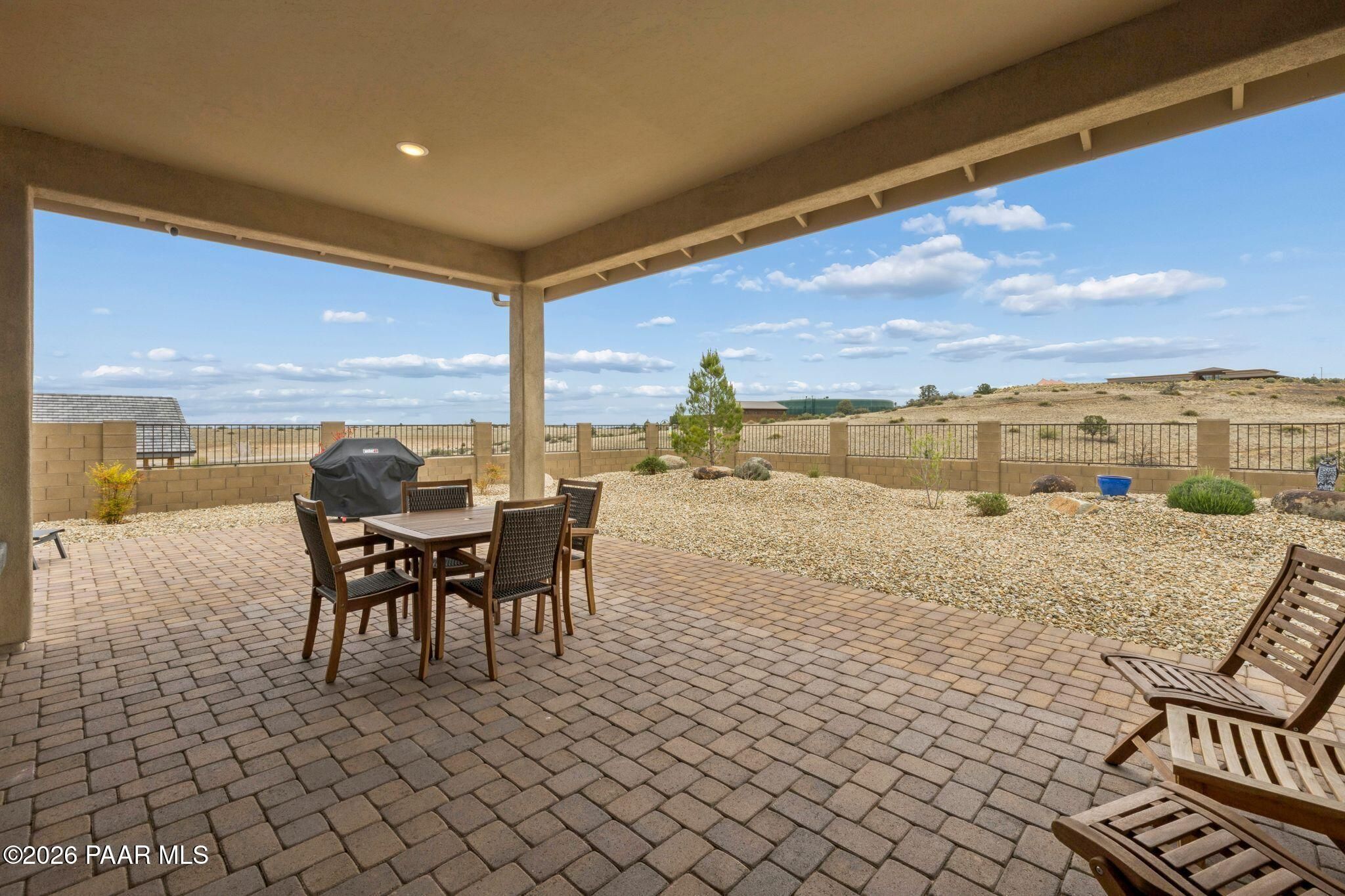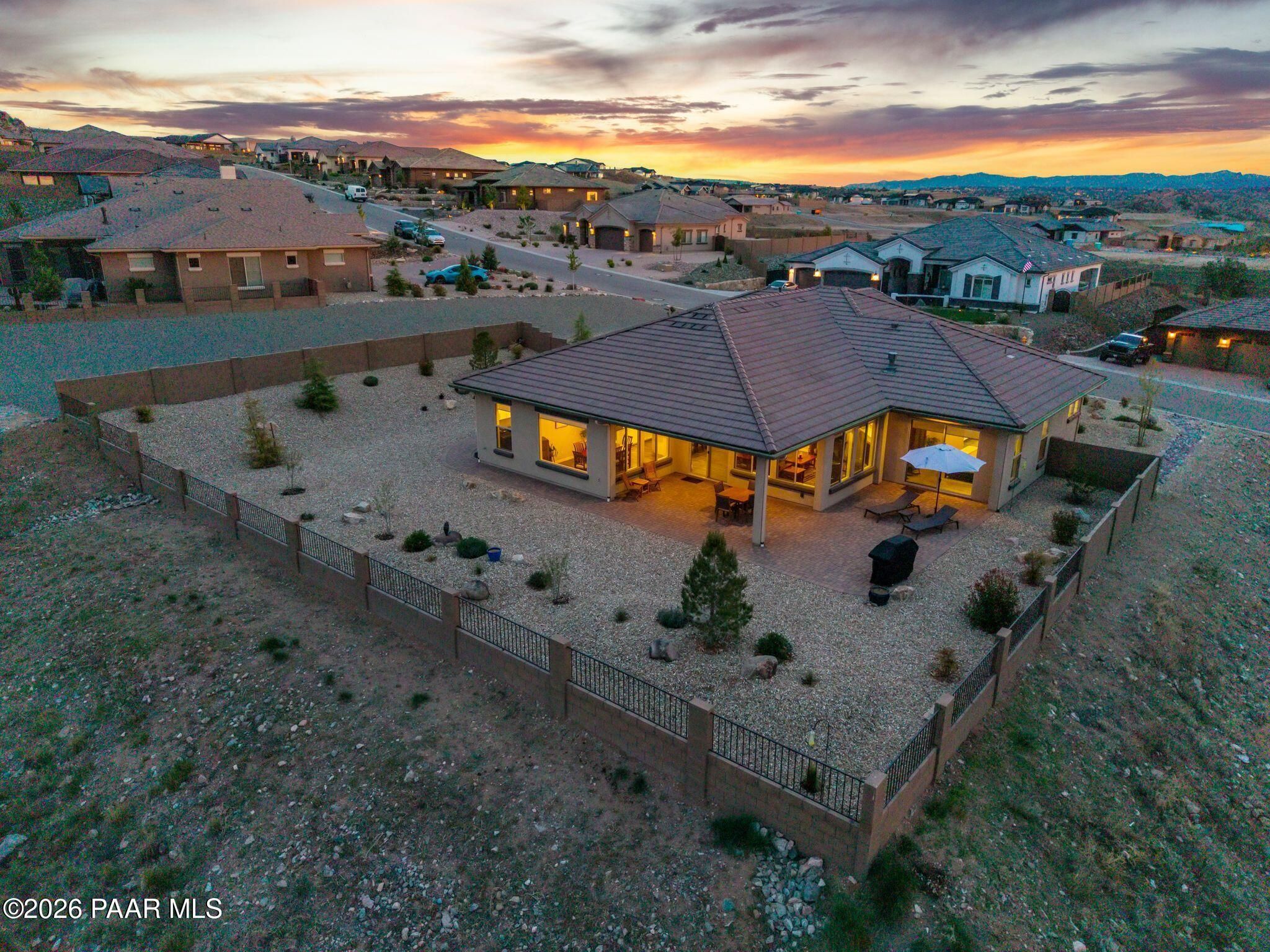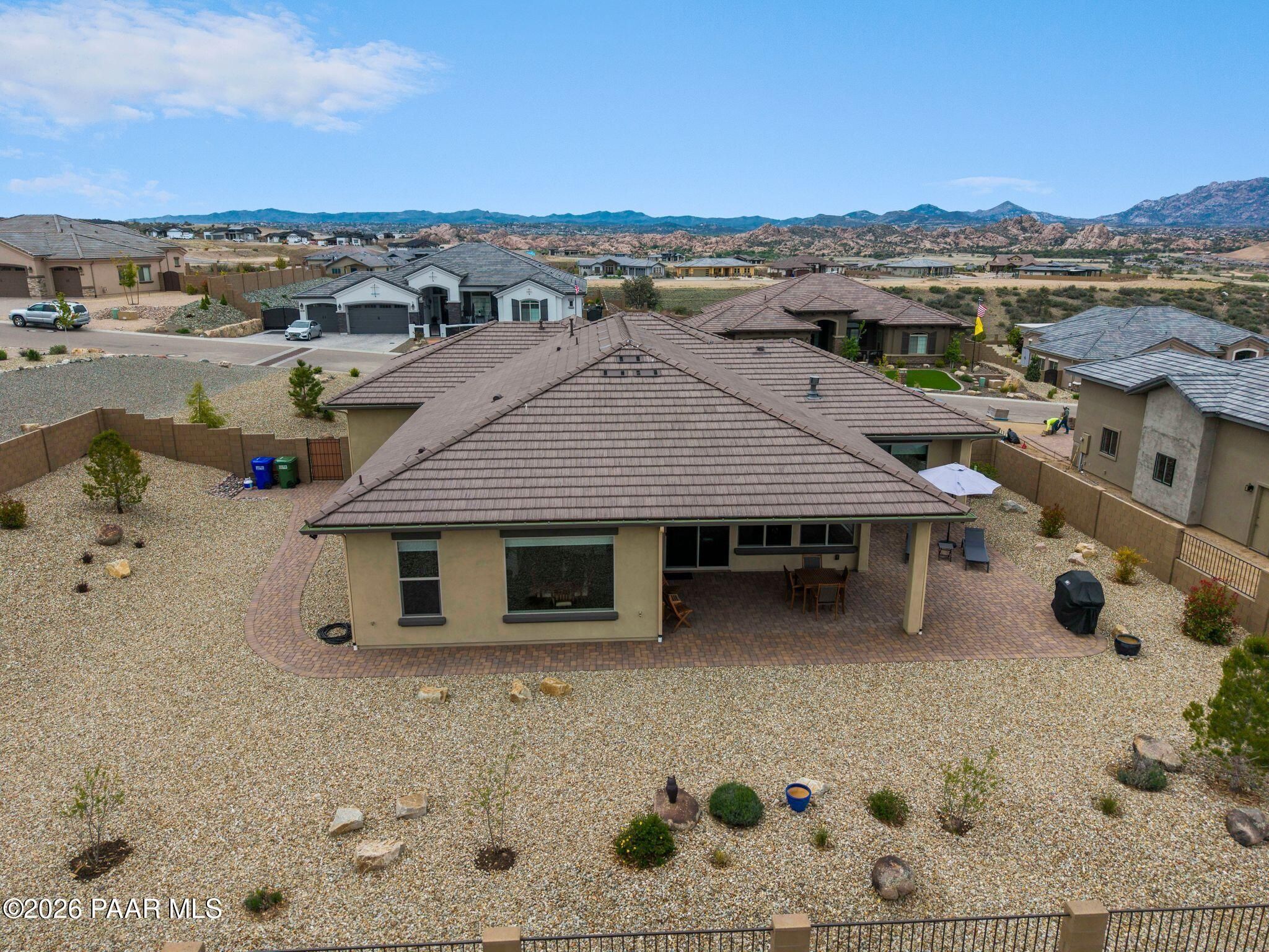Discover the pinnacle of luxury living in the highly coveted, prestigious, and secure gated community of Granite Dells Estates. This stunning custom-built residence, meticulously crafted by the renowned Stoddard Lifestyle Homes, offers an unparalleled, absolutely turnkey experience, ready for immediate occupancy. Spanning 2,322 square feet of thoughtfully designed interior space, this home exudes pure elegance and functionality. The layout features three spacious bedrooms and three full bathrooms, including two luxurious ensuites, providing comfort and privacy for residents and guests alike. The heart of the home is an expansive, open-concept great room, perfect for entertaining or relaxing. Anchored by a cozy gas fireplace, this grand space flows seamlessly into the gourmet chef's kitchen. The state-of-the-art kitchen is a culinary enthusiast's dream. It boasts a spacious dining area and a massive center island, which is not only a functional workspace but also a stylish focal point, featuring a durable, low-maintenance granite composite sink. Premium features include a convenient wine refrigerator, elegant glass door display cabinets, and top-of-the-line stainless steel appliances. Just off the kitchen, a versatile butler's pantry or dedicated hobby room provides invaluable additional flexible and functional living space, perfect for extra storage, prep work, or pursuing creative projects. No detail has been overlooked in the selection of high-end finishes. The home showcases stunning, smooth quartz countertops, elegant white custom cabinetry complemented by sleek stainless steel hardware, and sophisticated under cabinet lighting to create a warm ambiance. The main living areas feature exquisite, durable planked tile floors that offer both beauty and ease of maintenance. Perhaps the most captivating feature is the home's connection to nature. Massive picture windows span the entire back of the residence, framing and offering breathtaking, unobstructed, and protected open space views that create a serene and private backdrop for everyday living. Capping off this exquisite property is a truly exceptional amenity: an oversized, five-car garage. Spanning over 1,000 square feet, this substantial space provides ample room for multiple vehicles, storage, a workshop, and all your recreational equipment, appealing to collectors and hobbyists alike. This Granite Dells Estates home is a masterpiece of custom construction, blending luxurious finishes, modern functionality, and unparalleled views into a perfect residential retreat.