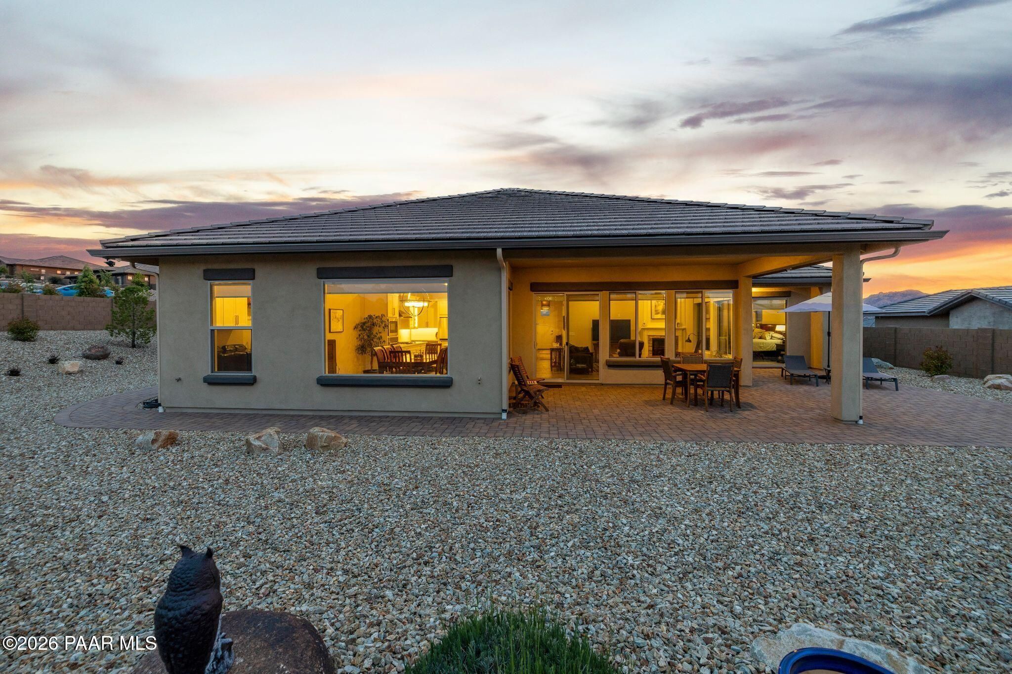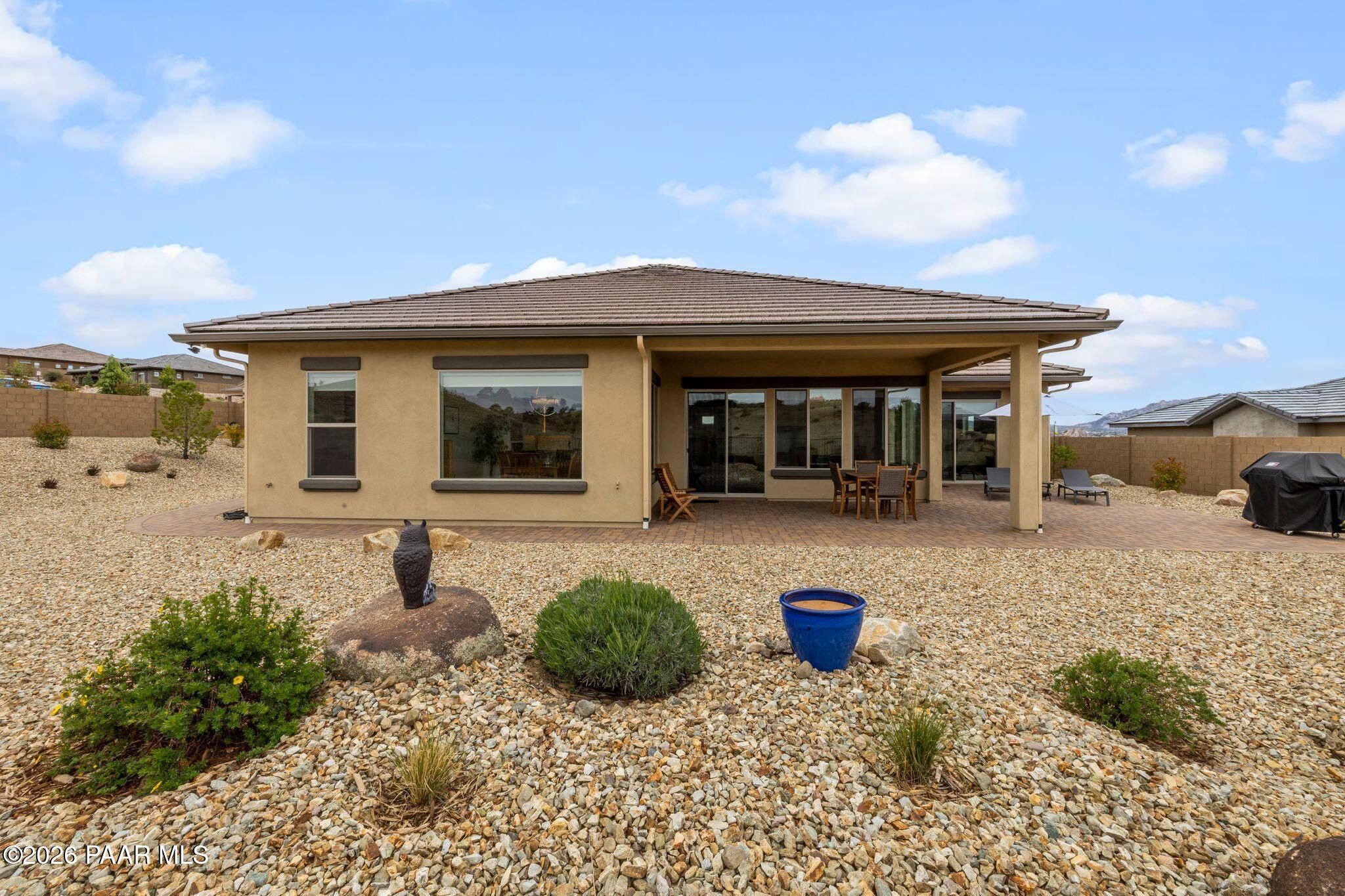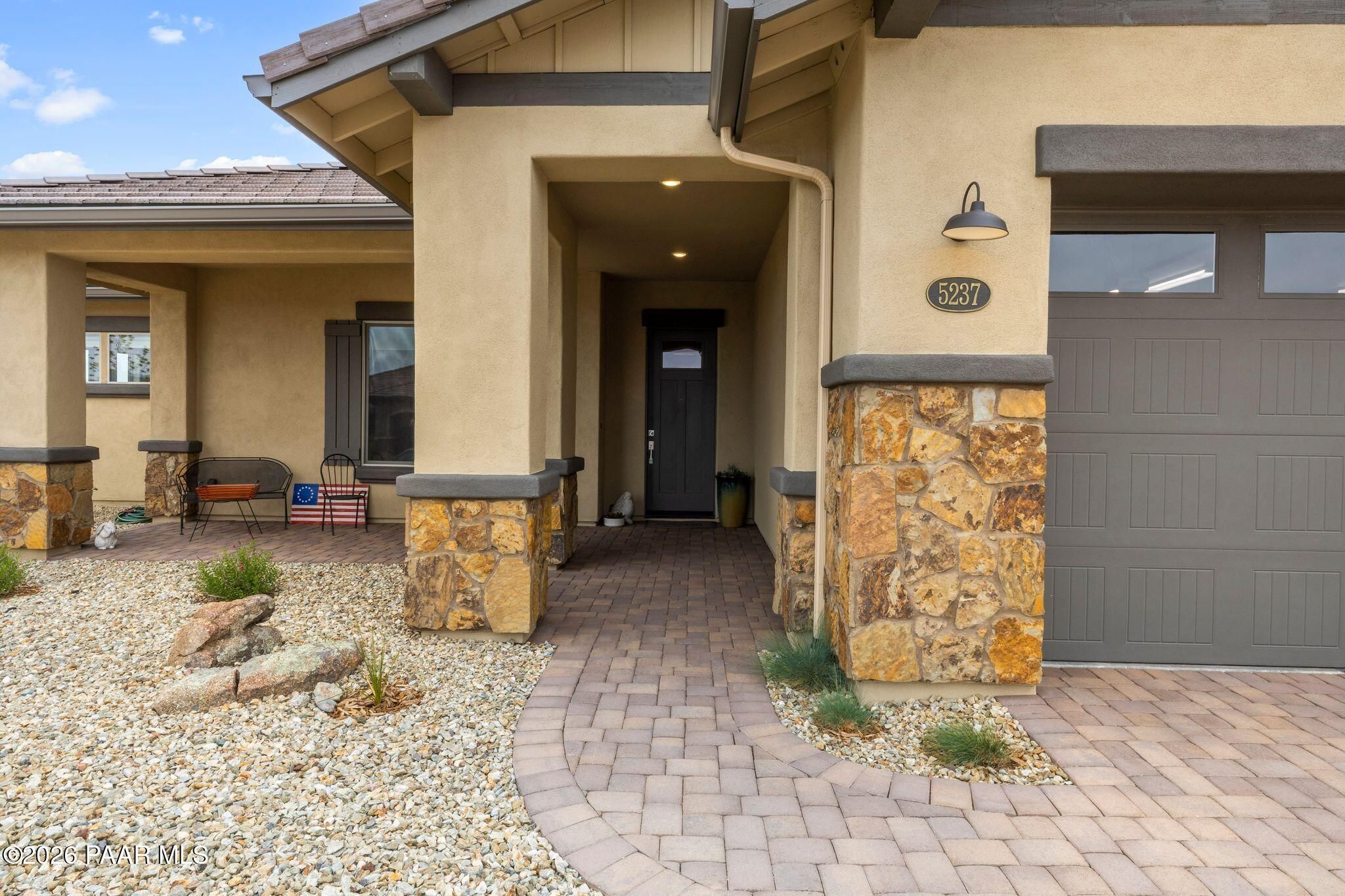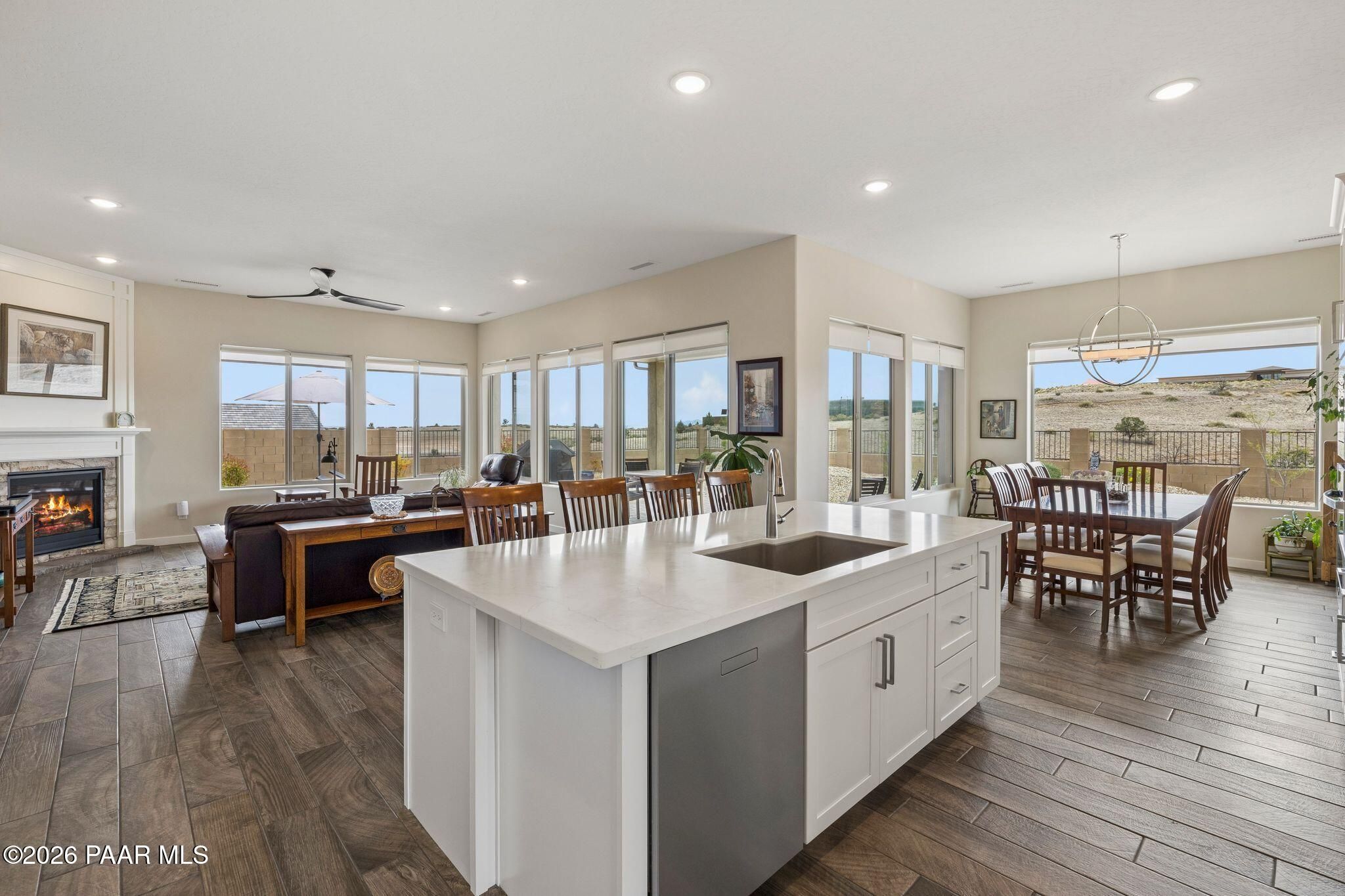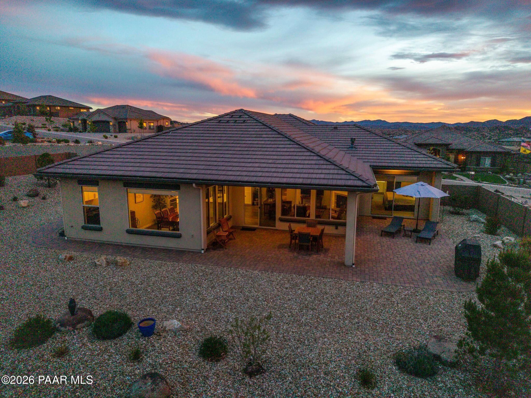 Discover the pinnacle of luxury living in the highly coveted, prestigious, and secure gated community of Granite Dells Estates. This stunning custom-built residence, meticulously crafted by the renowned Stoddard Lifestyle Homes, offers an unparalleled, absolutely turnkey experience, ready for immediate occupancy. Spanning 2,322 square feet of thoughtfully designed interior space, this home exudes pure elegance and functionality. The layout features three spacious bedrooms and three full bathrooms, including two luxurious ensuites, providing comfort and privacy for residents and guests alike. The heart of the home is an expansive, open-concept great room, perfect for entertaining or relaxing. Anchored by a cozy gas fireplace, this grand space flows seamlessly into the gourmet chef's kitchen. The state-of-the-art kitchen is a culinary enthusiast's dream. It boasts a spacious dining area and a massive center island, which is not only a functional workspace but also a stylish focal point, featuring a durable, low-maintenance granite composite sink. Premium features include a convenient wine refrigerator, elegant glass door display cabinets, and top-of-the-line stainless steel appliances. Just off the kitchen, a versatile butler's pantry or dedicated hobby room provides invaluable additional flexible and functional living space, perfect for extra storage, prep work, or pursuing creative projects. No detail has been overlooked in the selection of high-end finishes. The home showcases stunning, smooth quartz countertops, elegant white custom cabinetry complemented by sleek stainless steel hardware, and sophisticated under cabinet lighting to create a warm ambiance. The main living areas feature exquisite, durable planked tile floors that offer both beauty and ease of maintenance. Perhaps the most captivating feature is the home's connection to nature. Massive picture windows span the entire back of the residence, framing and offering breathtaking, unobstructed, and protected open space views that create a serene and private backdrop for everyday living. Capping off this exquisite property is a truly exceptional amenity: an oversized, five-car garage. Spanning over 1,000 square feet, this substantial space provides ample room for multiple vehicles, storage, a workshop, and all your recreational equipment, appealing to collectors and hobbyists alike. This Granite Dells Estates home is a masterpiece of custom construction, blending luxurious finishes, modern functionality, and unparalleled views into a perfect residential retreat.