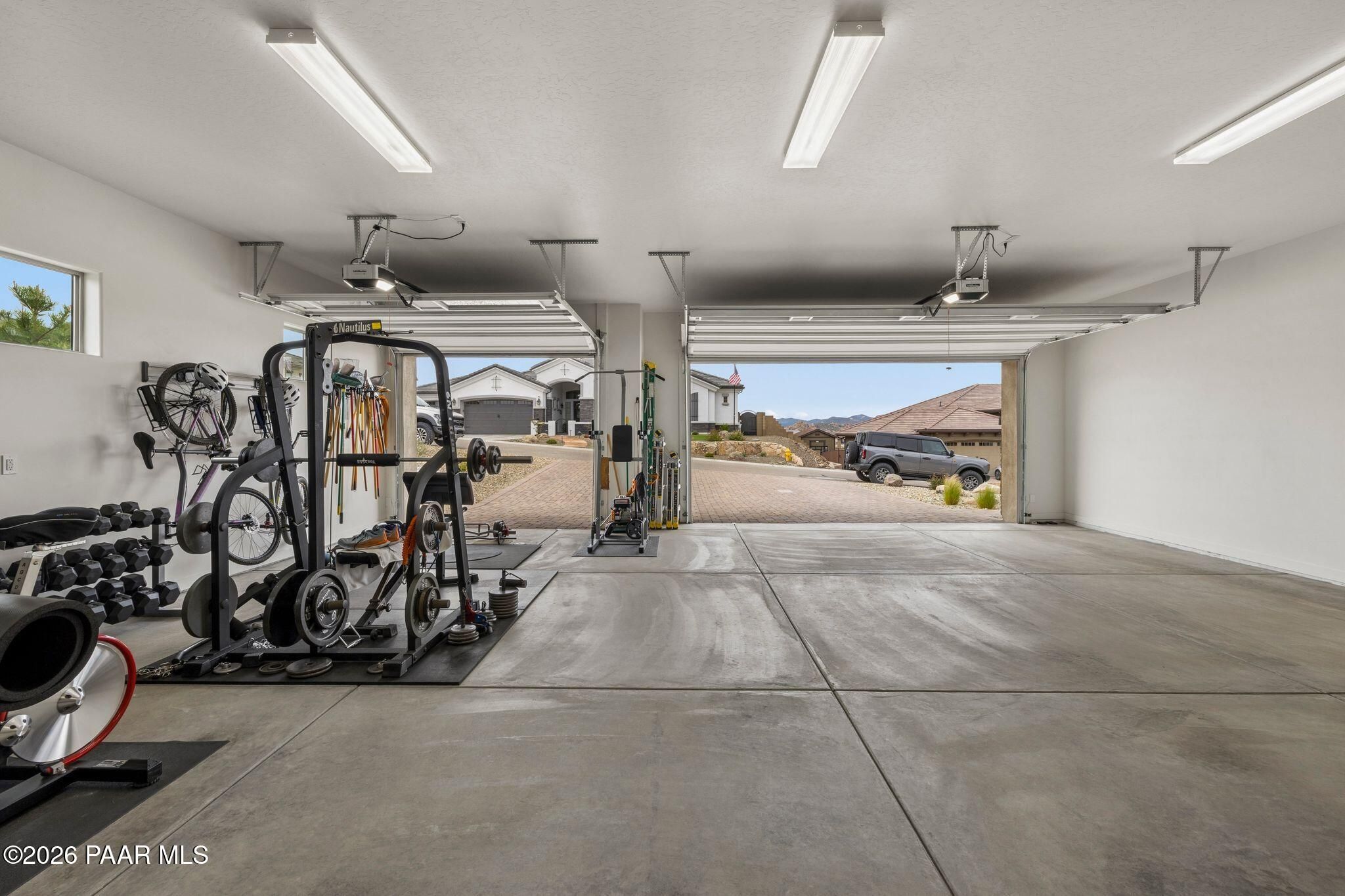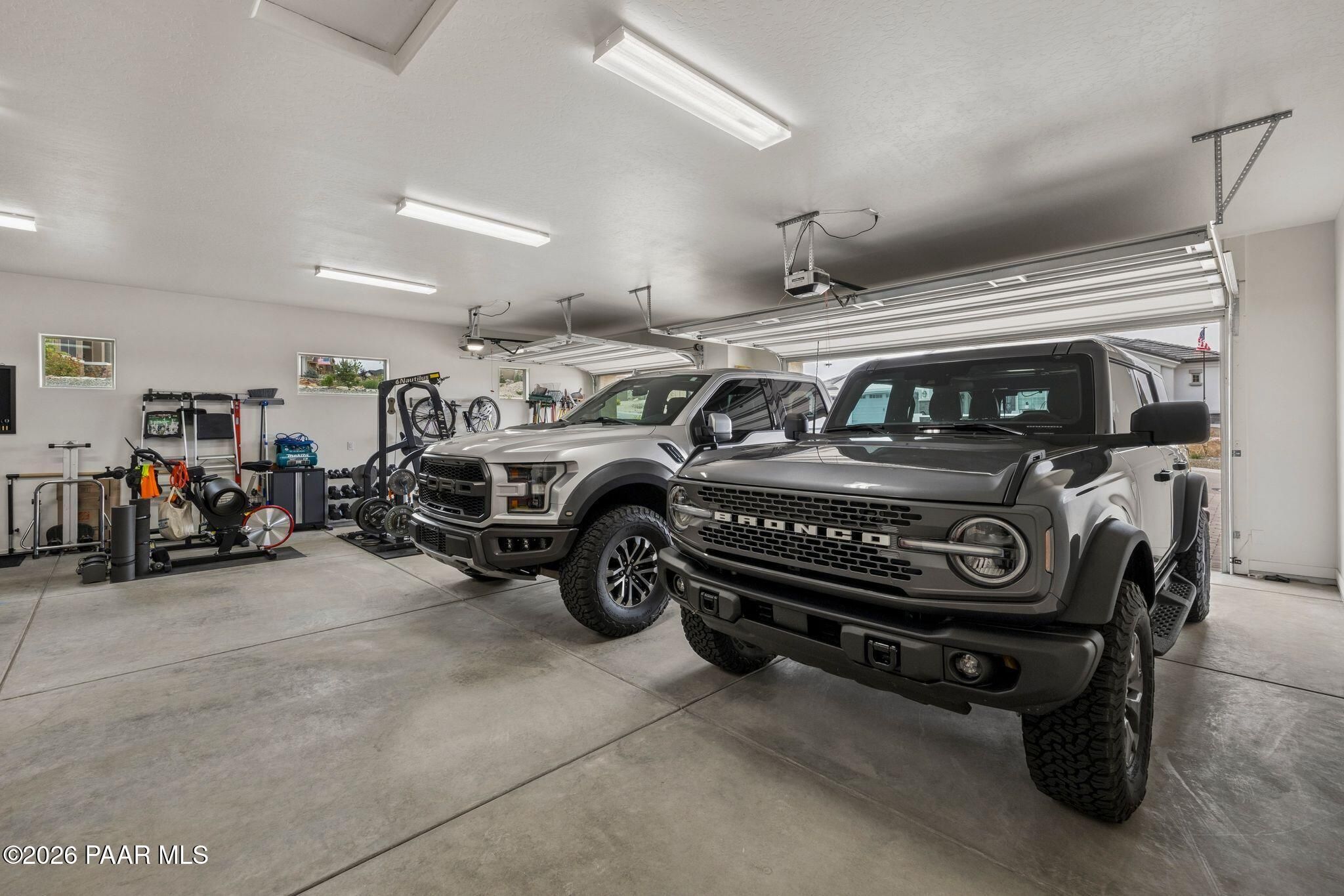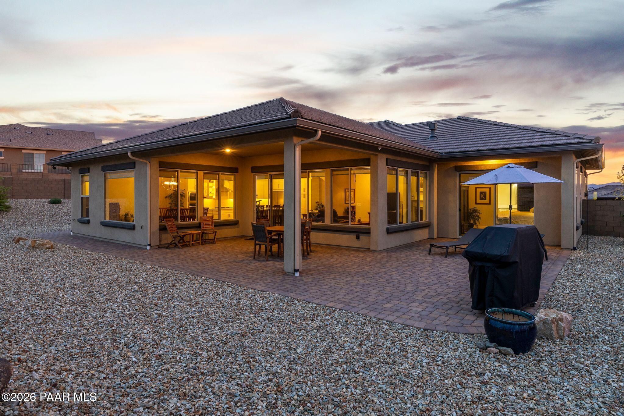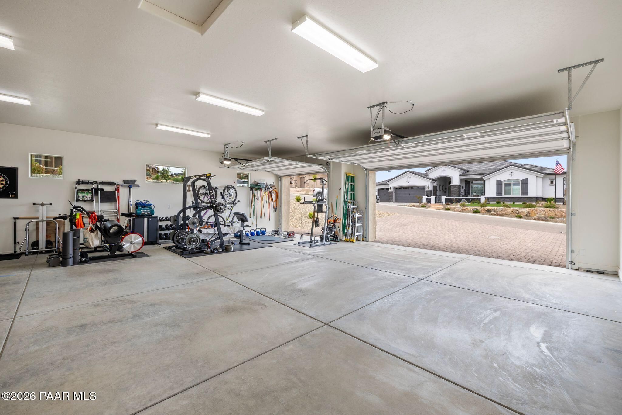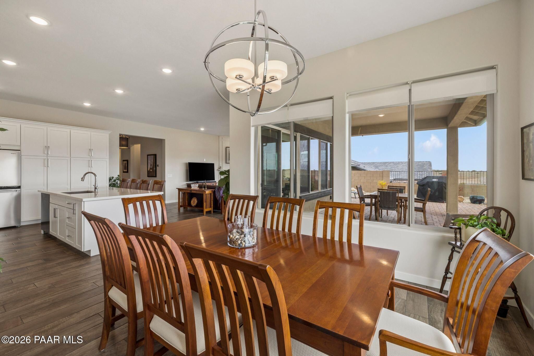 Discover the pinnacle of luxury living in the highly coveted, prestigious, and secure gated community of Granite Dells Estates. This stunning custom-built residence, meticulously crafted by the renowned Stoddard Lifestyle Homes, offers an unparalleled, absolutely turnkey experience, ready for immediate occupancy. Spanning 2,322 square feet of thoughtfully designed interior space, this home exudes pure elegance and functionality. The layout features three spacious bedrooms and three full bathrooms, including two luxurious ensuites, providing comfort and privacy for residents and guests alike. The heart of the home is an expansive, open-concept great room, perfect for entertaining or relaxing. Anchored by a cozy gas fireplace, this grand space flows seamlessly into the gourmet chef's kitchen. The state-of-the-art kitchen is a culinary enthusiast's dream. It boasts a spacious dining area and a massive center island, which is not only a functional workspace but also a stylish focal point, featuring a durable, low-maintenance granite composite sink. Premium features include a convenient wine refrigerator, elegant glass door display cabinets, and top-of-the-line stainless steel appliances. Just off the kitchen, a versatile butler's pantry or dedicated hobby room provides invaluable additional flexible and functional living space, perfect for extra storage, prep work, or pursuing creative projects. No detail has been overlooked in the selection of high-end finishes. The home showcases stunning, smooth quartz countertops, elegant white custom cabinetry complemented by sleek stainless steel hardware, and sophisticated under cabinet lighting to create a warm ambiance. The main living areas feature exquisite, durable planked tile floors that offer both beauty and ease of maintenance. Perhaps the most captivating feature is the home's connection to nature. Massive picture windows span the entire back of the residence, framing and offering breathtaking, unobstructed, and protected open space views that create a serene and private backdrop for everyday living. Capping off this exquisite property is a truly exceptional amenity: an oversized, five-car garage. Spanning over 1,000 square feet, this substantial space provides ample room for multiple vehicles, storage, a workshop, and all your recreational equipment, appealing to collectors and hobbyists alike. This Granite Dells Estates home is a masterpiece of custom construction, blending luxurious finishes, modern functionality, and unparalleled views into a perfect residential retreat.