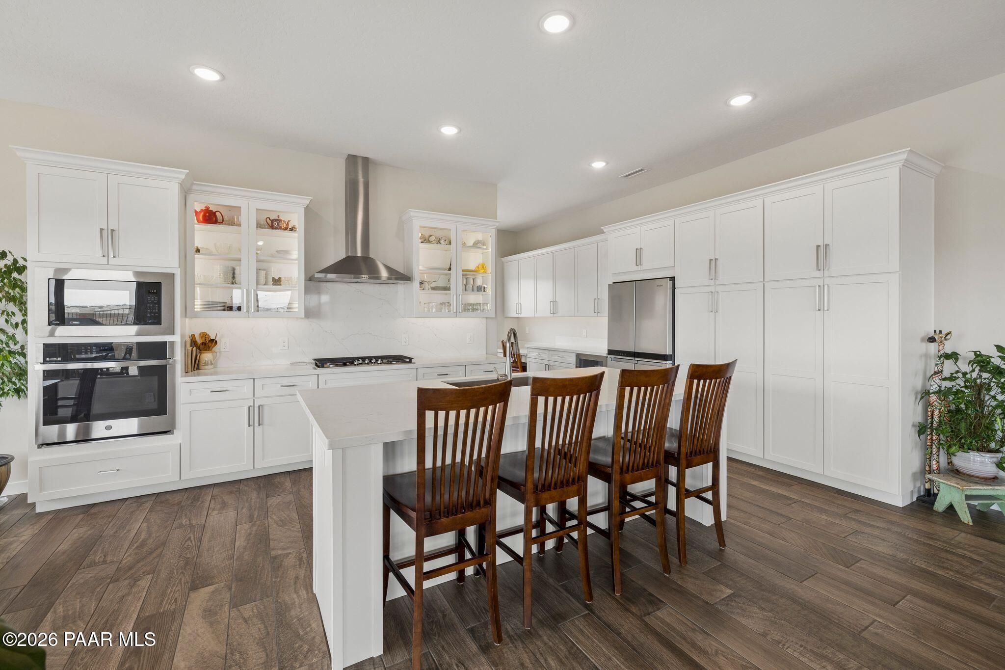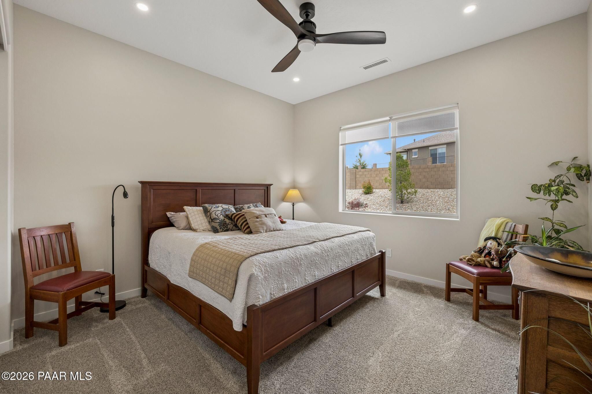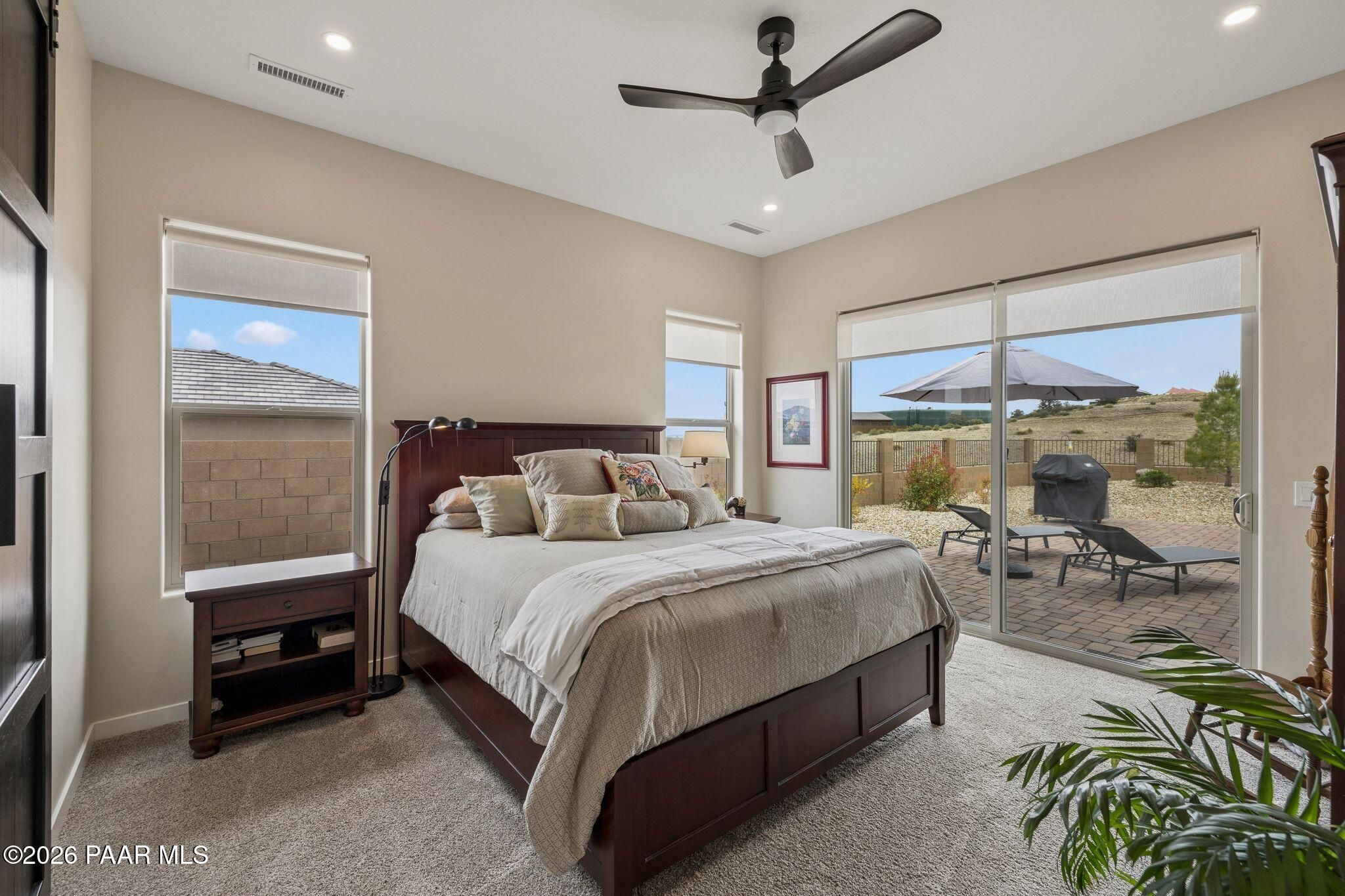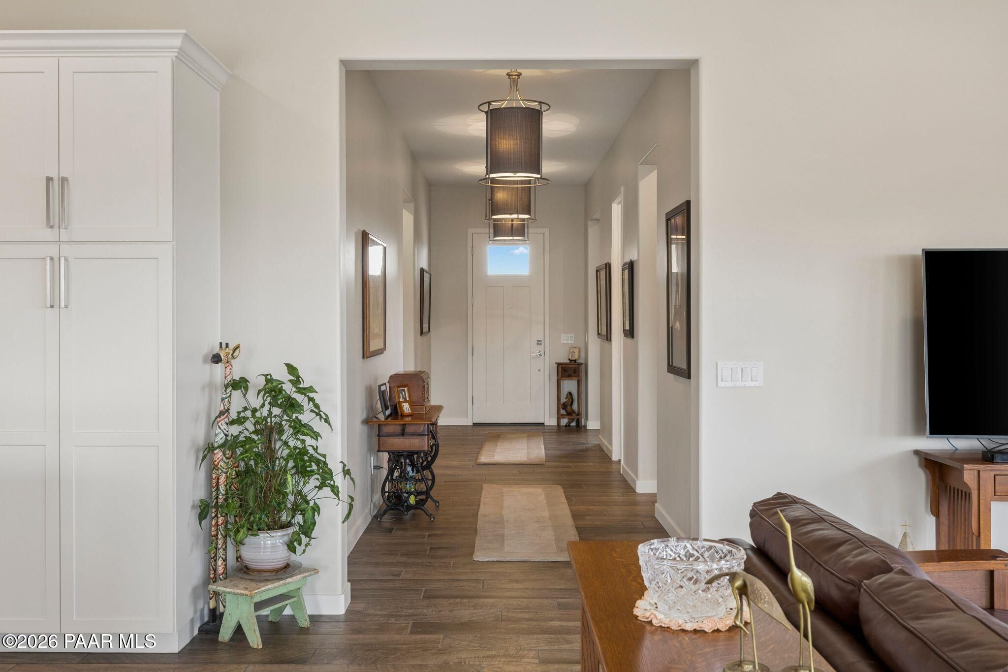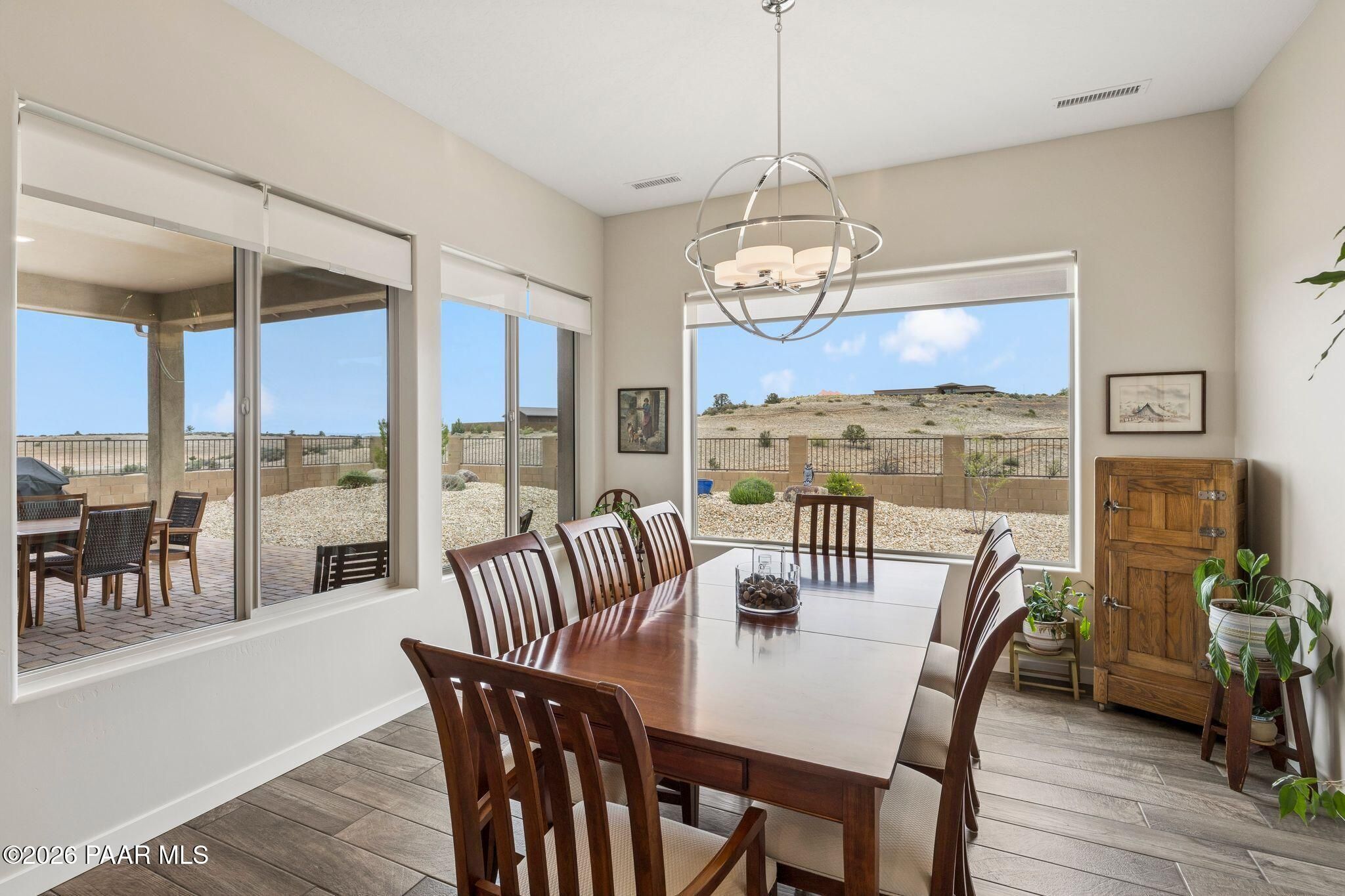 Discover the pinnacle of luxury living in the highly coveted, prestigious, and secure gated community of Granite Dells Estates. This stunning custom-built residence, meticulously crafted by the renowned Stoddard Lifestyle Homes, offers an unparalleled, absolutely turnkey experience, ready for immediate occupancy. Spanning 2,322 square feet of thoughtfully designed interior space, this home exudes pure elegance and functionality. The layout features three spacious bedrooms and three full bathrooms, including two luxurious ensuites, providing comfort and privacy for residents and guests alike. The heart of the home is an expansive, open-concept great room, perfect for entertaining or relaxing. Anchored by a cozy gas fireplace, this grand space flows seamlessly into the gourmet chef's kitchen. The state-of-the-art kitchen is a culinary enthusiast's dream. It boasts a spacious dining area and a massive center island, which is not only a functional workspace but also a stylish focal point, featuring a durable, low-maintenance granite composite sink. Premium features include a convenient wine refrigerator, elegant glass door display cabinets, and top-of-the-line stainless steel appliances. Just off the kitchen, a versatile butler's pantry or dedicated hobby room provides invaluable additional flexible and functional living space, perfect for extra storage, prep work, or pursuing creative projects. No detail has been overlooked in the selection of high-end finishes. The home showcases stunning, smooth quartz countertops, elegant white custom cabinetry complemented by sleek stainless steel hardware, and sophisticated under cabinet lighting to create a warm ambiance. The main living areas feature exquisite, durable planked tile floors that offer both beauty and ease of maintenance. Perhaps the most captivating feature is the home's connection to nature. Massive picture windows span the entire back of the residence, framing and offering breathtaking, unobstructed, and protected open space views that create a serene and private backdrop for everyday living. Capping off this exquisite property is a truly exceptional amenity: an oversized, five-car garage. Spanning over 1,000 square feet, this substantial space provides ample room for multiple vehicles, storage, a workshop, and all your recreational equipment, appealing to collectors and hobbyists alike. This Granite Dells Estates home is a masterpiece of custom construction, blending luxurious finishes, modern functionality, and unparalleled views into a perfect residential retreat.