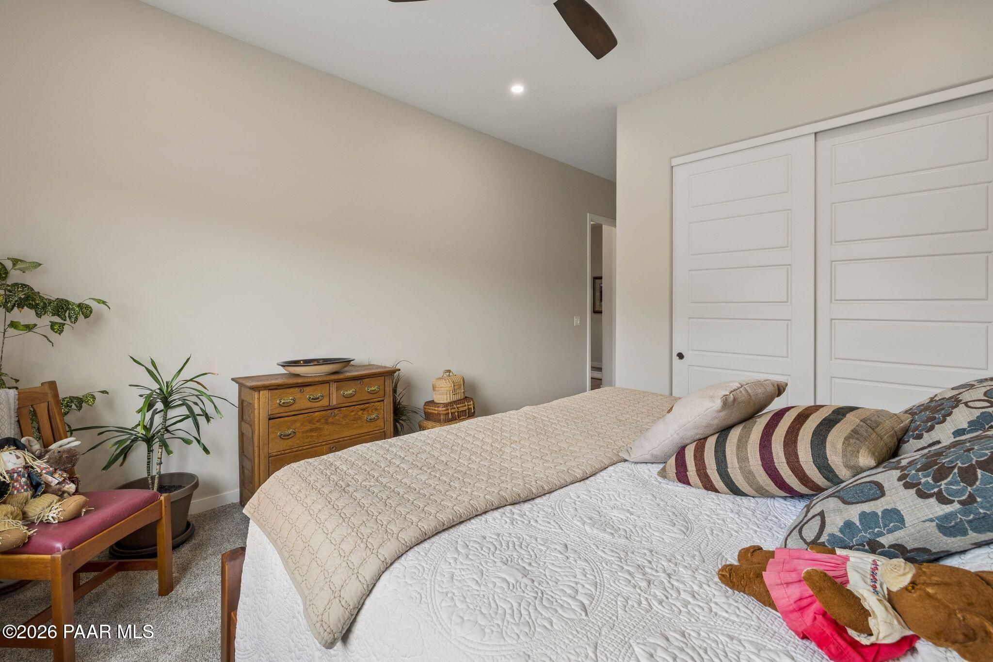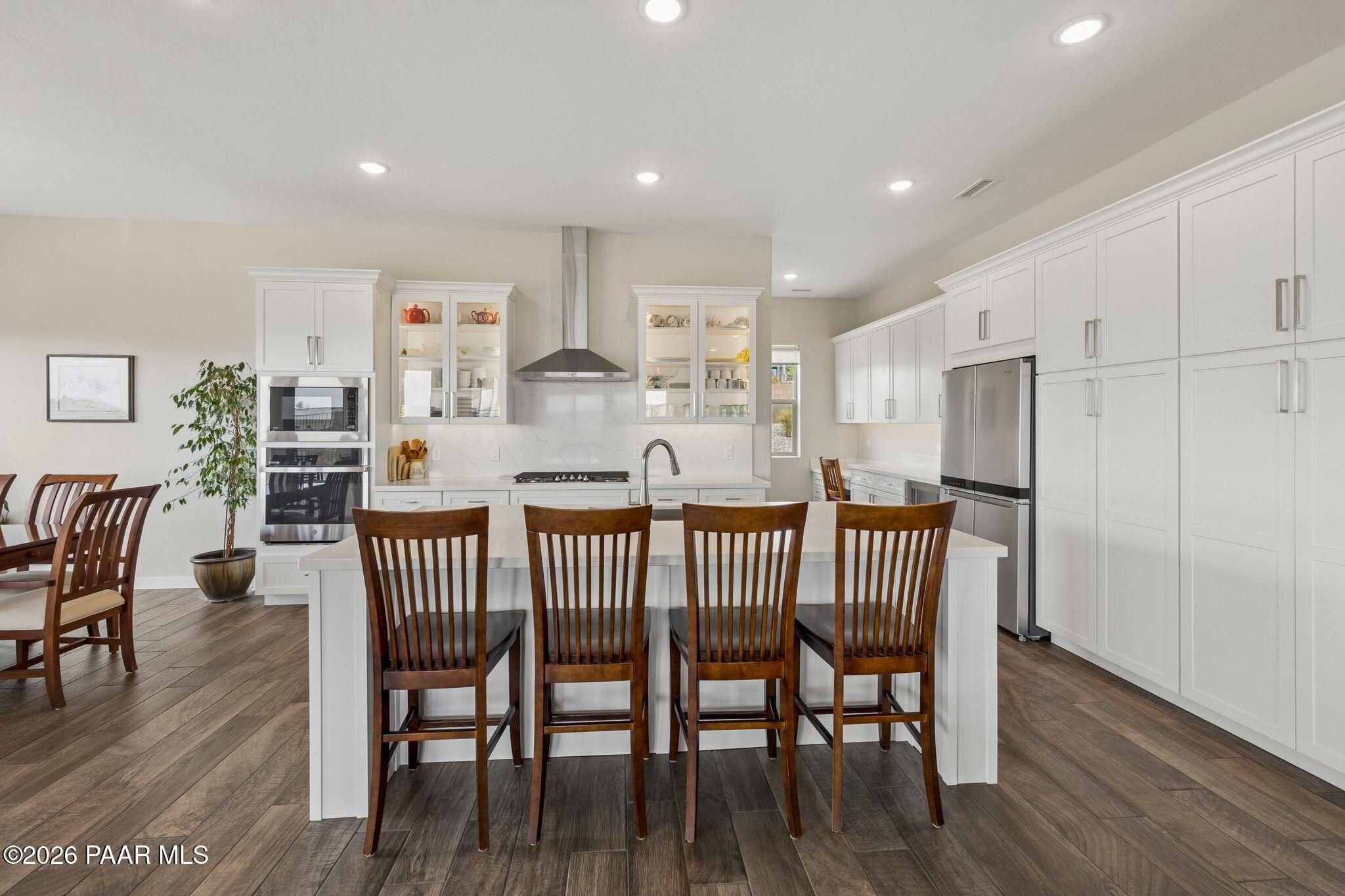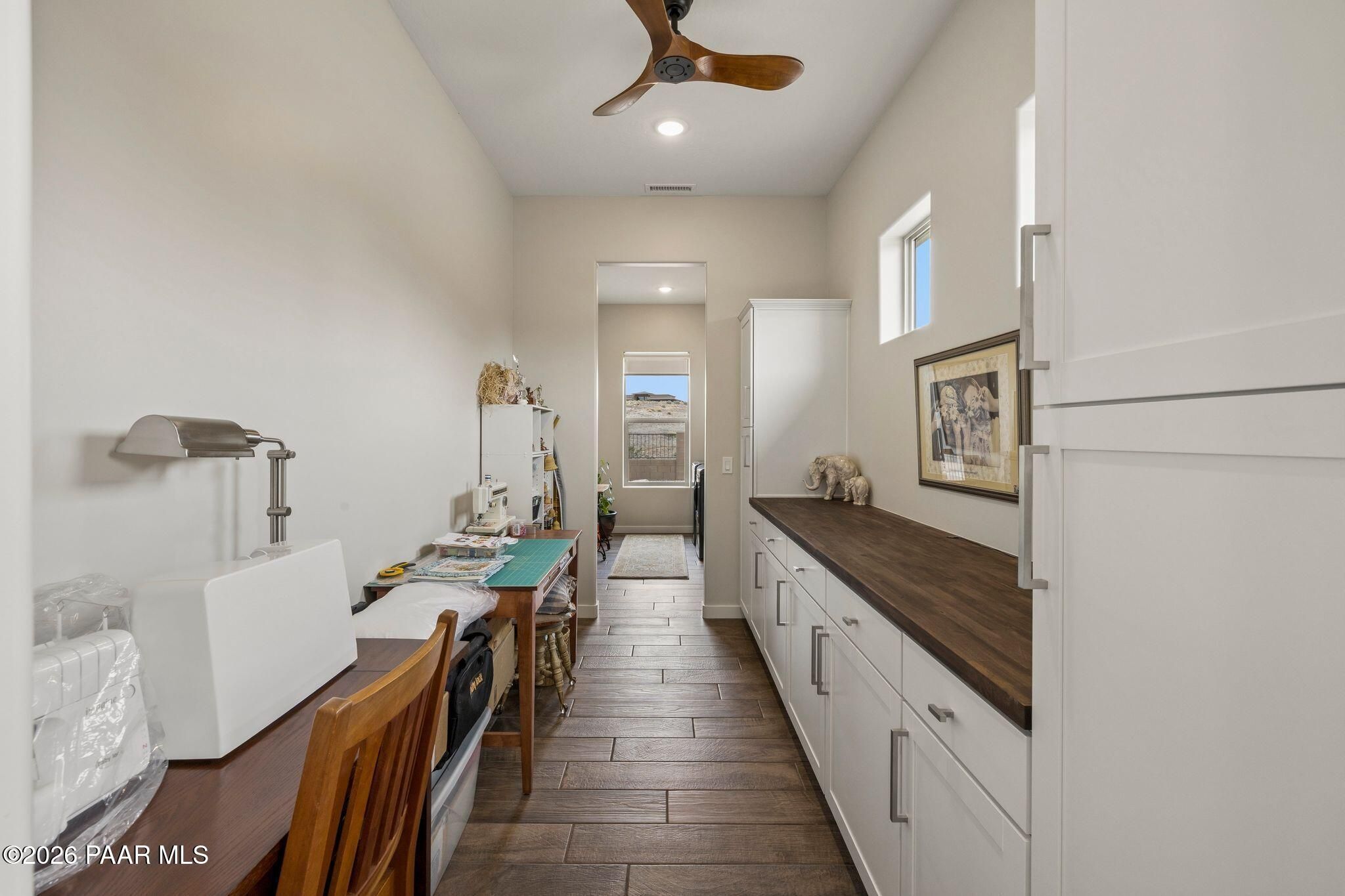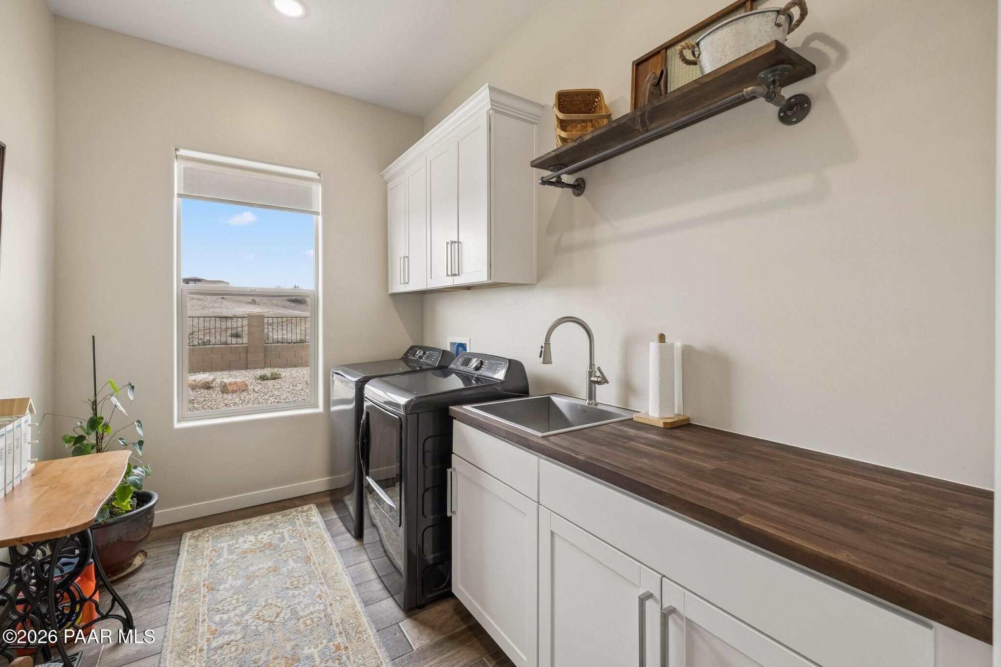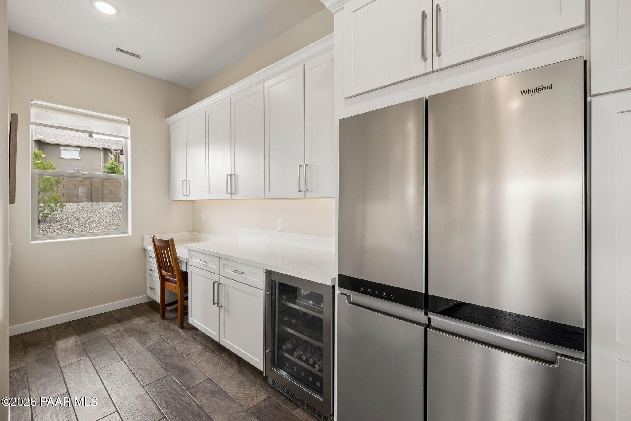 Discover the pinnacle of luxury living in the highly coveted, prestigious, and secure gated community of Granite Dells Estates. This stunning custom-built residence, meticulously crafted by the renowned Stoddard Lifestyle Homes, offers an unparalleled, absolutely turnkey experience, ready for immediate occupancy. Spanning 2,322 square feet of thoughtfully designed interior space, this home exudes pure elegance and functionality. The layout features three spacious bedrooms and three full bathrooms, including two luxurious ensuites, providing comfort and privacy for residents and guests alike. The heart of the home is an expansive, open-concept great room, perfect for entertaining or relaxing. Anchored by a cozy gas fireplace, this grand space flows seamlessly into the gourmet chef's kitchen. The state-of-the-art kitchen is a culinary enthusiast's dream. It boasts a spacious dining area and a massive center island, which is not only a functional workspace but also a stylish focal point, featuring a durable, low-maintenance granite composite sink. Premium features include a convenient wine refrigerator, elegant glass door display cabinets, and top-of-the-line stainless steel appliances. Just off the kitchen, a versatile butler's pantry or dedicated hobby room provides invaluable additional flexible and functional living space, perfect for extra storage, prep work, or pursuing creative projects. No detail has been overlooked in the selection of high-end finishes. The home showcases stunning, smooth quartz countertops, elegant white custom cabinetry complemented by sleek stainless steel hardware, and sophisticated under cabinet lighting to create a warm ambiance. The main living areas feature exquisite, durable planked tile floors that offer both beauty and ease of maintenance. Perhaps the most captivating feature is the home's connection to nature. Massive picture windows span the entire back of the residence, framing and offering breathtaking, unobstructed, and protected open space views that create a serene and private backdrop for everyday living. Capping off this exquisite property is a truly exceptional amenity: an oversized, five-car garage. Spanning over 1,000 square feet, this substantial space provides ample room for multiple vehicles, storage, a workshop, and all your recreational equipment, appealing to collectors and hobbyists alike. This Granite Dells Estates home is a masterpiece of custom construction, blending luxurious finishes, modern functionality, and unparalleled views into a perfect residential retreat.