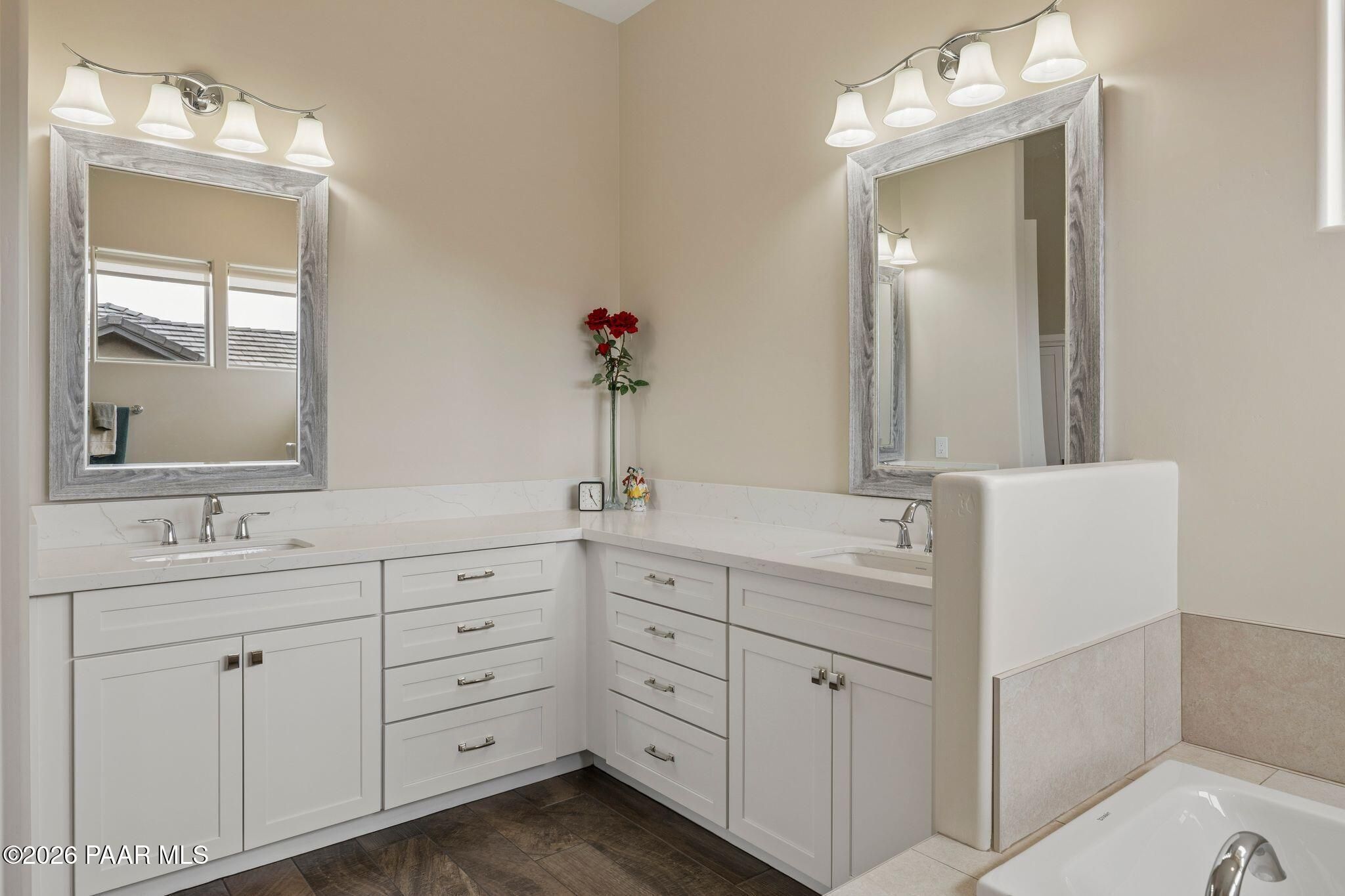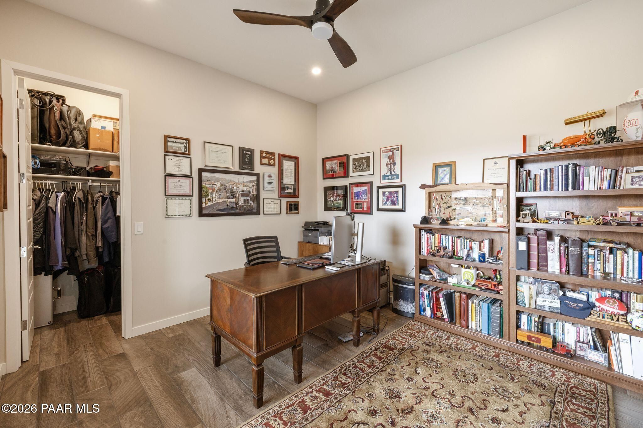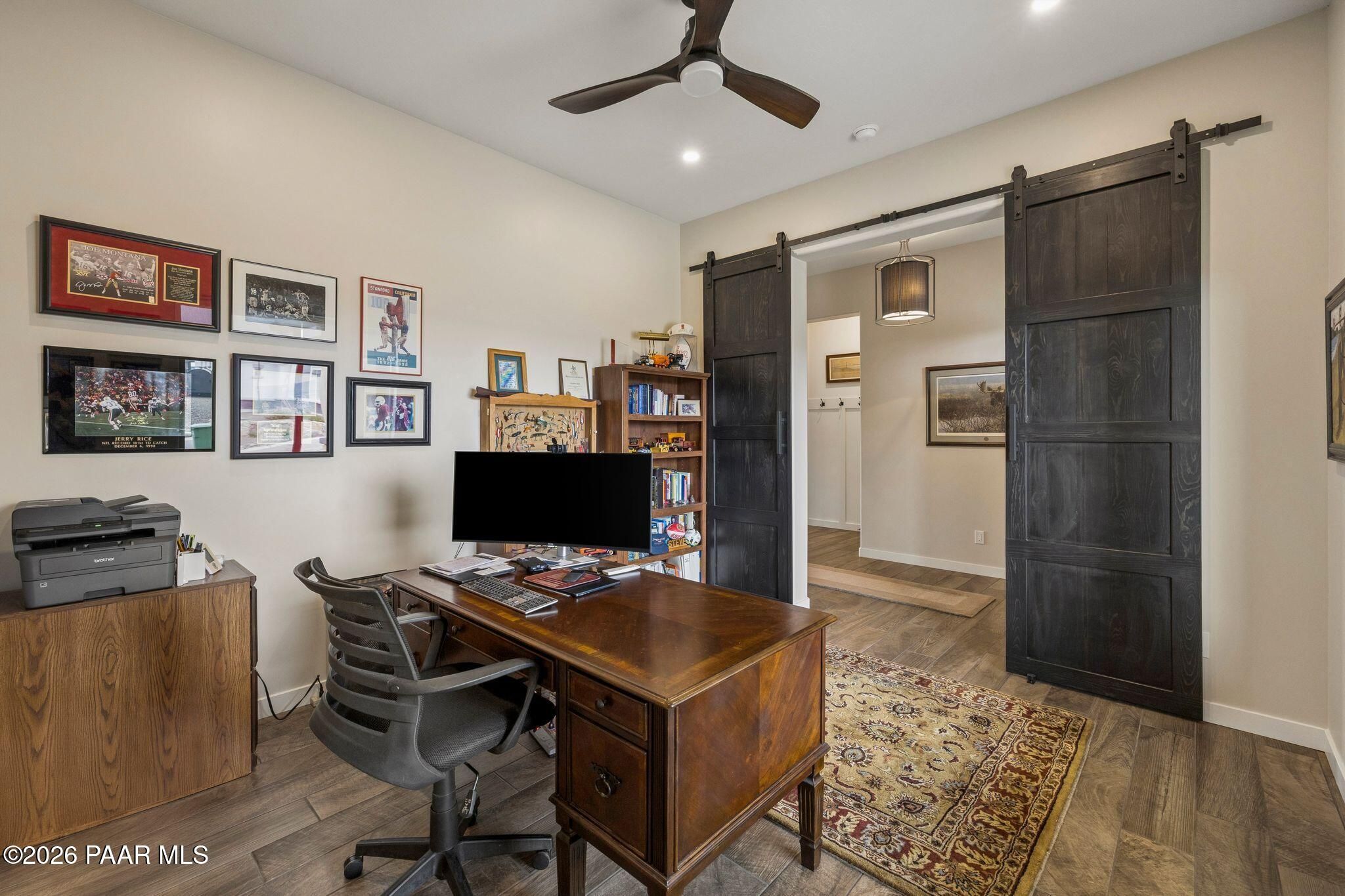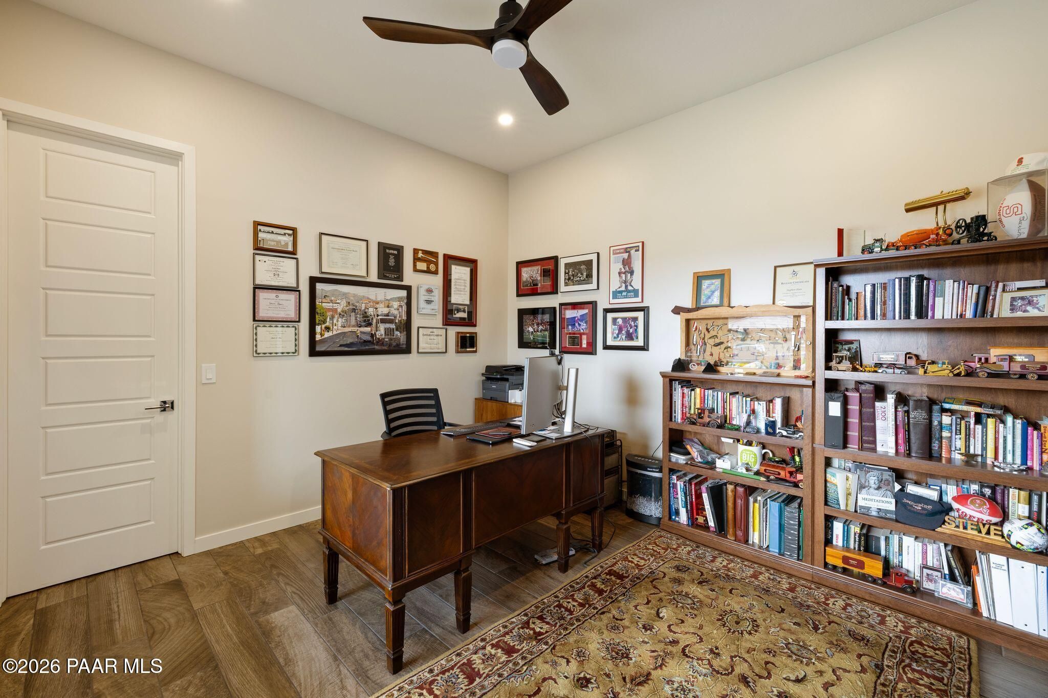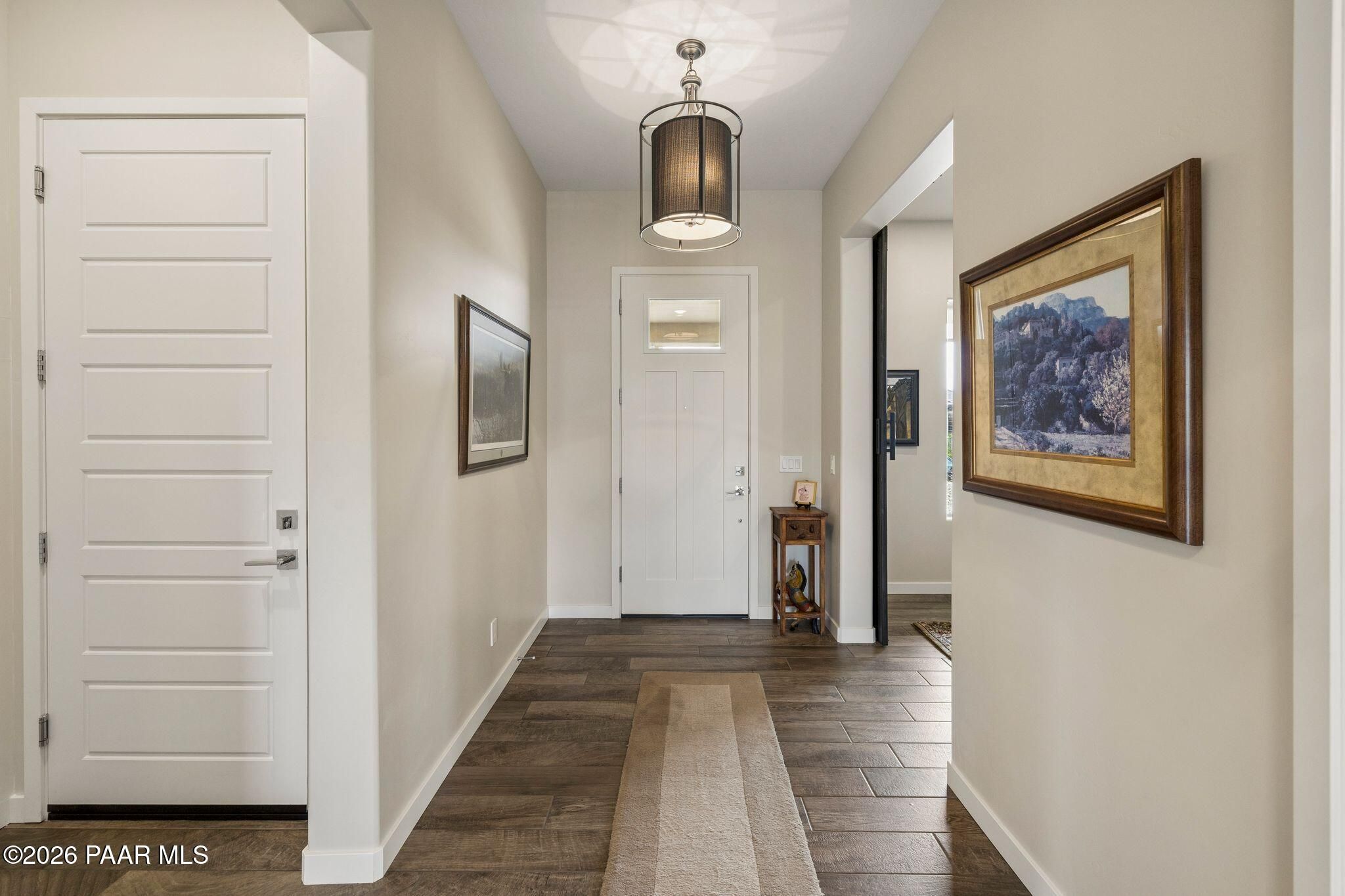 Discover the pinnacle of luxury living in the highly coveted, prestigious, and secure gated community of Granite Dells Estates. This stunning custom-built residence, meticulously crafted by the renowned Stoddard Lifestyle Homes, offers an unparalleled, absolutely turnkey experience, ready for immediate occupancy. Spanning 2,322 square feet of thoughtfully designed interior space, this home exudes pure elegance and functionality. The layout features three spacious bedrooms and three full bathrooms, including two luxurious ensuites, providing comfort and privacy for residents and guests alike. The heart of the home is an expansive, open-concept great room, perfect for entertaining or relaxing. Anchored by a cozy gas fireplace, this grand space flows seamlessly into the gourmet chef's kitchen. The state-of-the-art kitchen is a culinary enthusiast's dream. It boasts a spacious dining area and a massive center island, which is not only a functional workspace but also a stylish focal point, featuring a durable, low-maintenance granite composite sink. Premium features include a convenient wine refrigerator, elegant glass door display cabinets, and top-of-the-line stainless steel appliances. Just off the kitchen, a versatile butler's pantry or dedicated hobby room provides invaluable additional flexible and functional living space, perfect for extra storage, prep work, or pursuing creative projects. No detail has been overlooked in the selection of high-end finishes. The home showcases stunning, smooth quartz countertops, elegant white custom cabinetry complemented by sleek stainless steel hardware, and sophisticated under cabinet lighting to create a warm ambiance. The main living areas feature exquisite, durable planked tile floors that offer both beauty and ease of maintenance. Perhaps the most captivating feature is the home's connection to nature. Massive picture windows span the entire back of the residence, framing and offering breathtaking, unobstructed, and protected open space views that create a serene and private backdrop for everyday living. Capping off this exquisite property is a truly exceptional amenity: an oversized, five-car garage. Spanning over 1,000 square feet, this substantial space provides ample room for multiple vehicles, storage, a workshop, and all your recreational equipment, appealing to collectors and hobbyists alike. This Granite Dells Estates home is a masterpiece of custom construction, blending luxurious finishes, modern functionality, and unparalleled views into a perfect residential retreat.