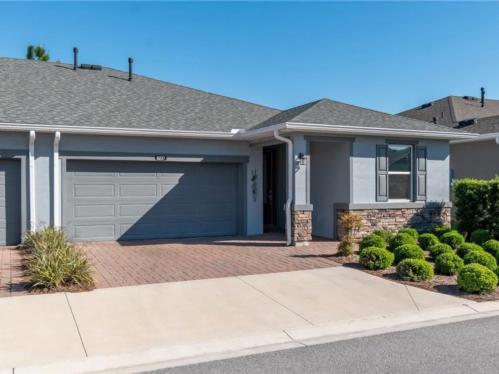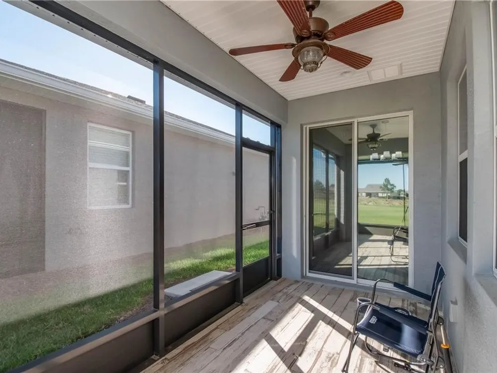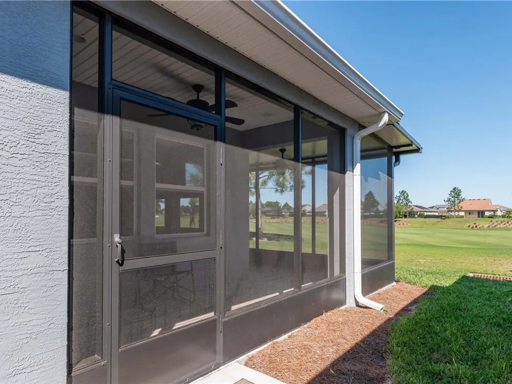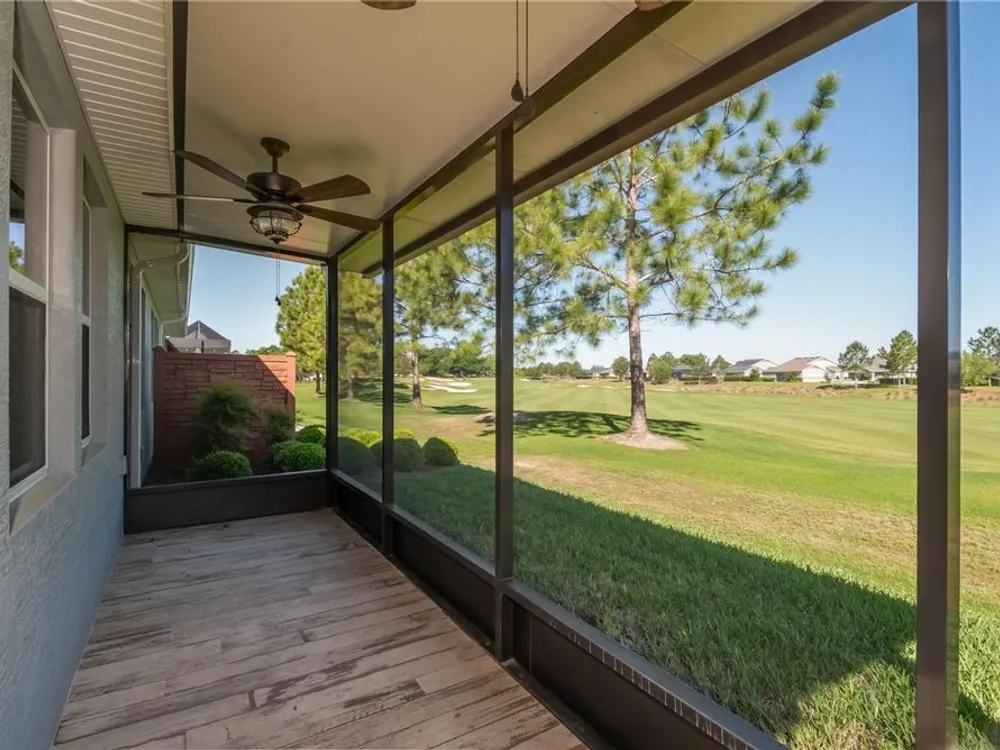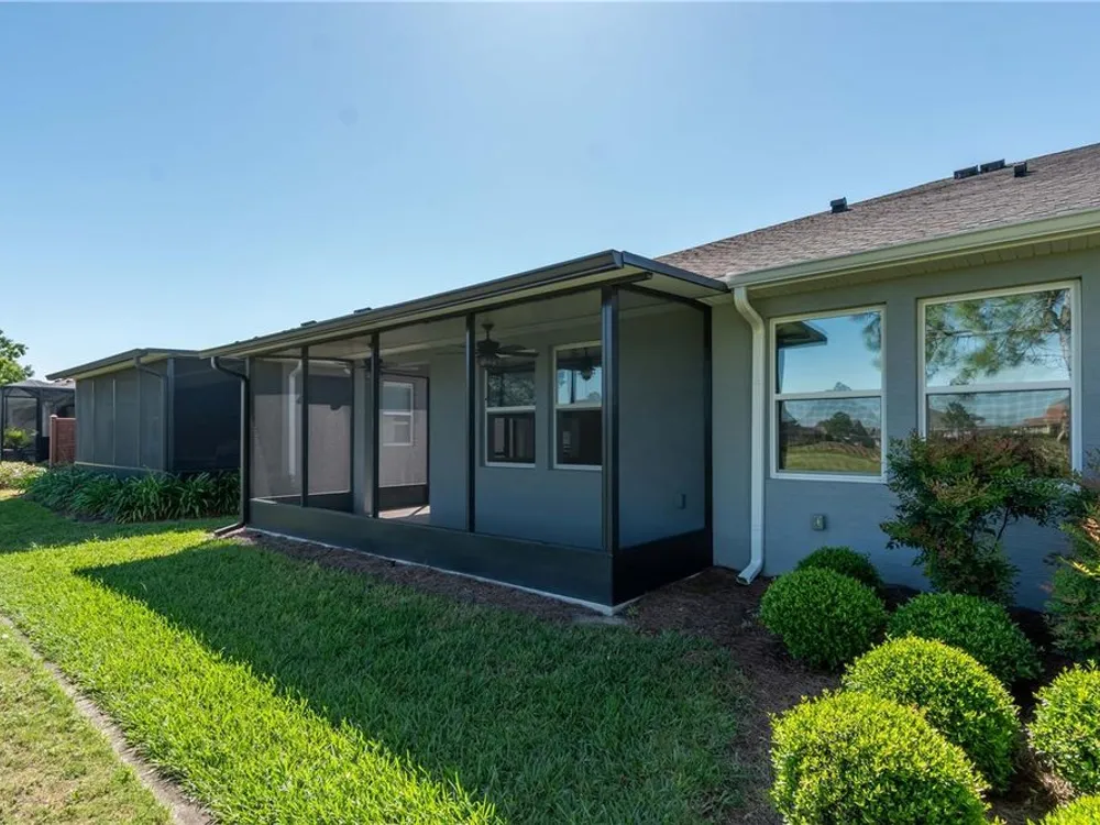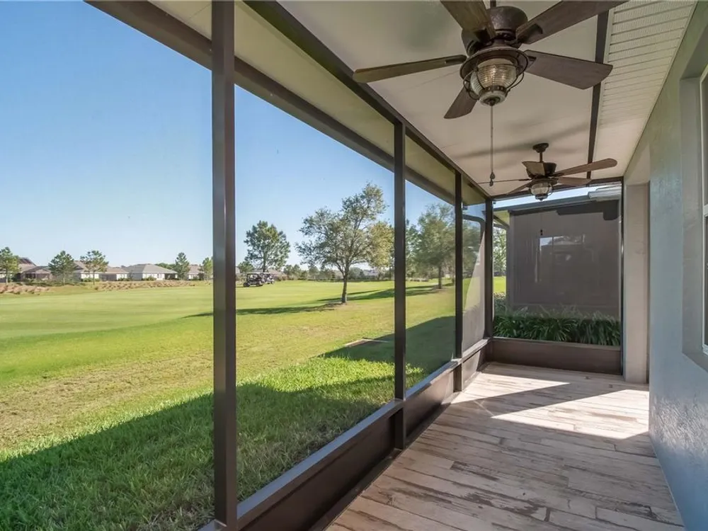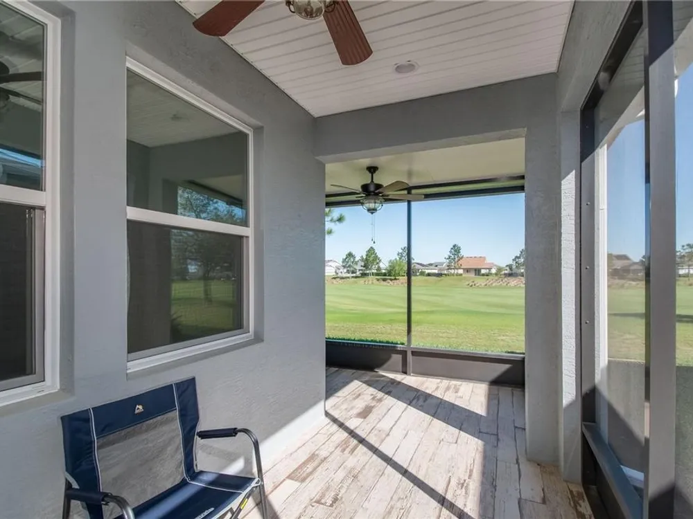 Experience Golf Course living with the lowest priced Villa along the golf course– This move-in ready villa is a stunning Muros Model built by Shea Homes that shouldn’t be missed. With mature landscaping, a brick-paver drive and walkway, and a covered entryway, this property has plenty of curb appeal right from the very beginning. Light and welcoming, the home offers a total of 2-bedrooms and 2-baths with an open, split-bedroom floor plan and thoughtful finishes throughout. The main spaces are incredibly open, allowing for flowing conversation throughout the home. A cozy office nook is a great option for those who work from home or could easily be used as a space for bookshelves to show off your collection as desired. The kitchen features lots of cabinet storage, granite countertops, stainless steel appliances, and a large island with breakfast bar. Adjacent to the kitchen is a large dining area which opens directly to the spacious living room, complete with large tinted windows that overlooks the back patio and the golf course beyond. Both bedrooms are spacious and inviting, though the master suite is a true gem with its own views of the golf course, a large walk-in closet, and a private en-suite bathroom with dual vanities and a huge glass door shower. Wood-look tile runs throughout the main spaces with wood-look laminate in the bedrooms for easy clean-up and a sophisticated finish. To the back of the home is a large wrap-around patio that is fully screen enclosed, providing a great opportunity to enjoy a morning coffee while watching the golf course beyond. Conceptualized by golf course designer Tripp Davis and PGA star Tom Lehman, Ocala Preserve’s golf course offers a full-sized course with multiple configurations to play. Ocala Preserve provides a variety of resort-style amenities with HOA fee, including clubhouse, fitness center, community pool, recreational courts and facilities, gated entry with security, fiber optic high speed internet, and maintenance to lawn, landscaping, and exterior. This particular home is situated within the 55+ portion of Ocala Preserve, and provides easy access to miles of trails that run throughout the community. Just minutes away from Ocala Preserve is a variety of additional amenities and attractions to enjoy while taking in the year-round sunshine, including the World Equestrian Center’s year-round events and plenty of shopping and dining options!