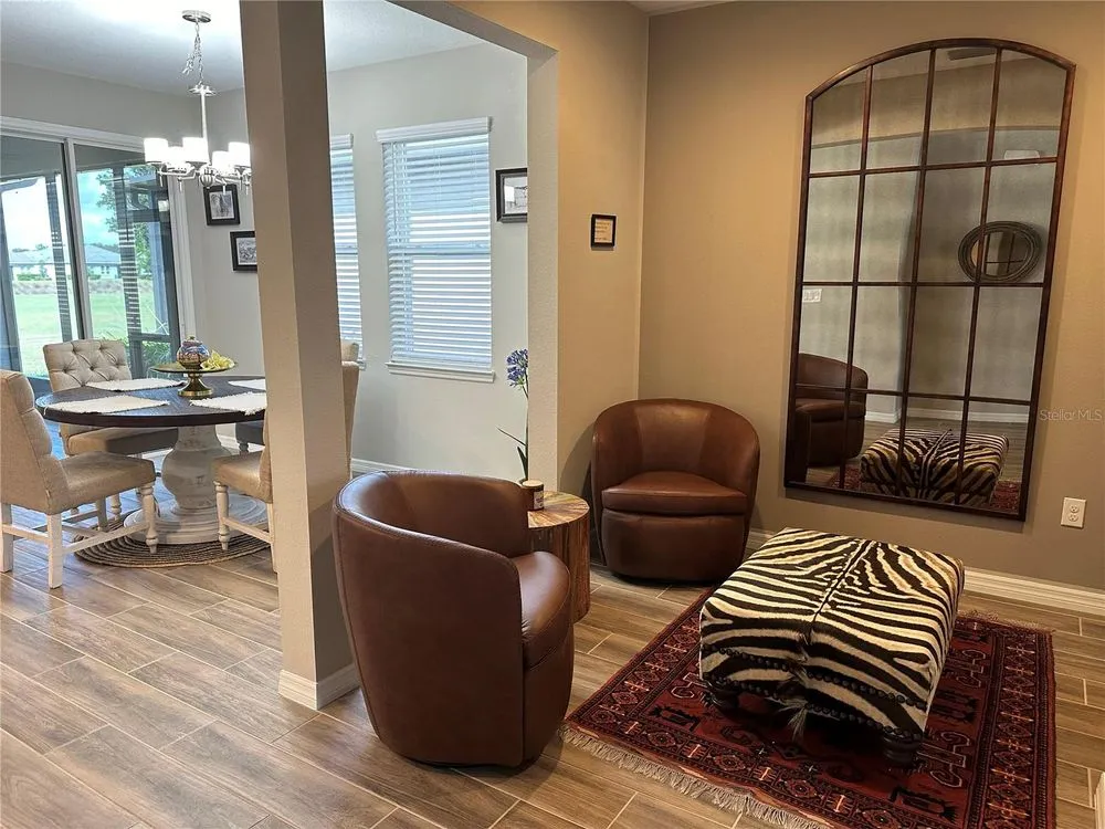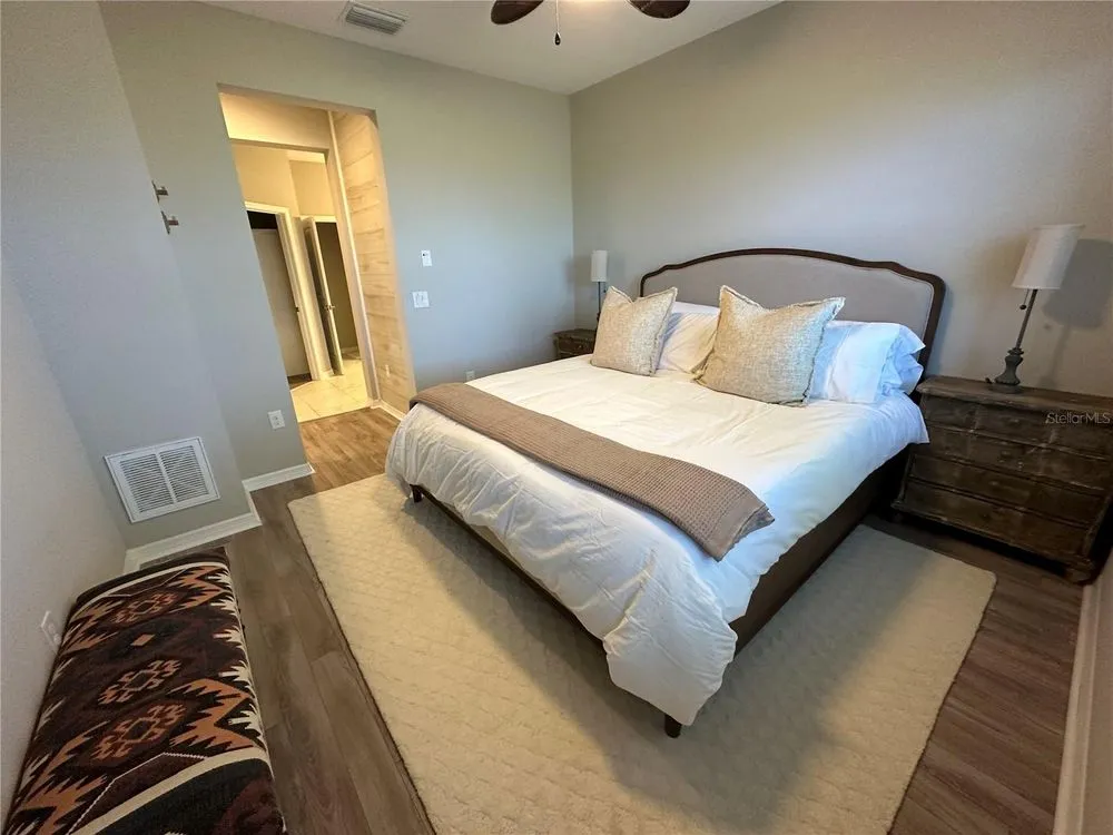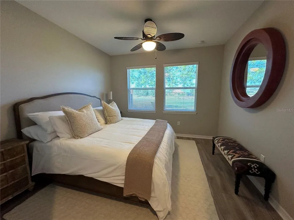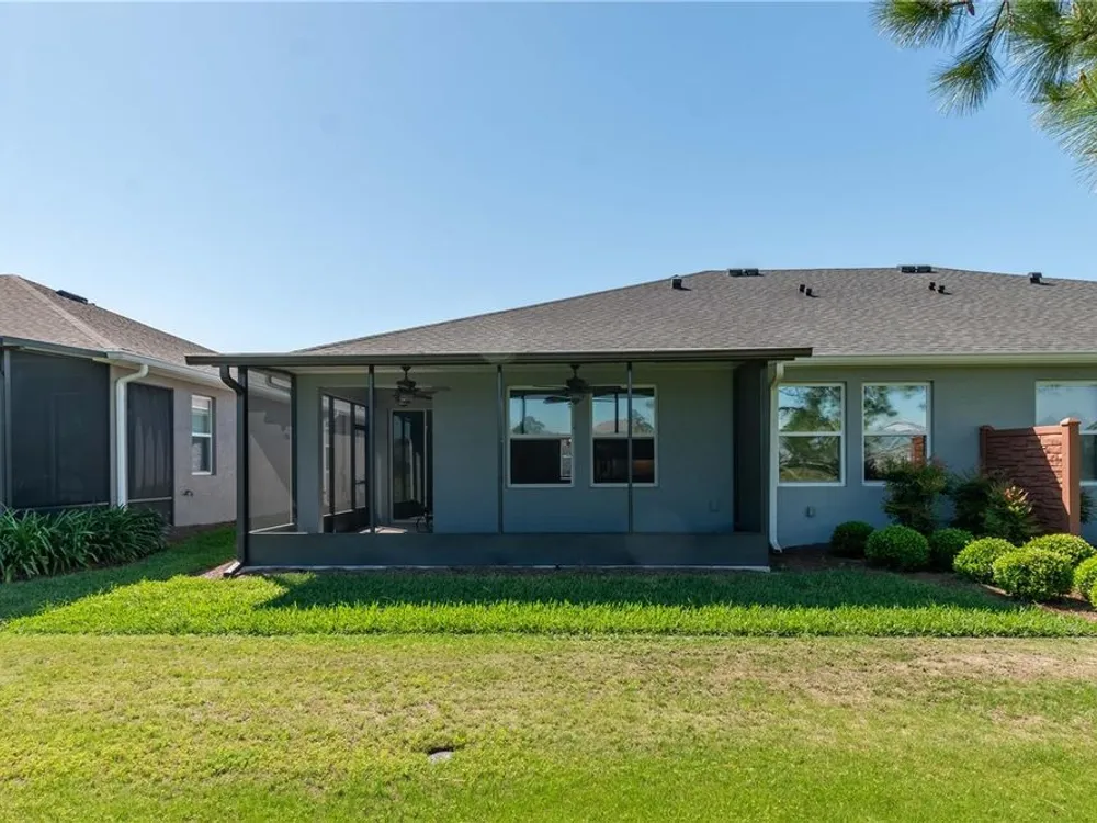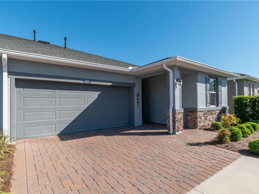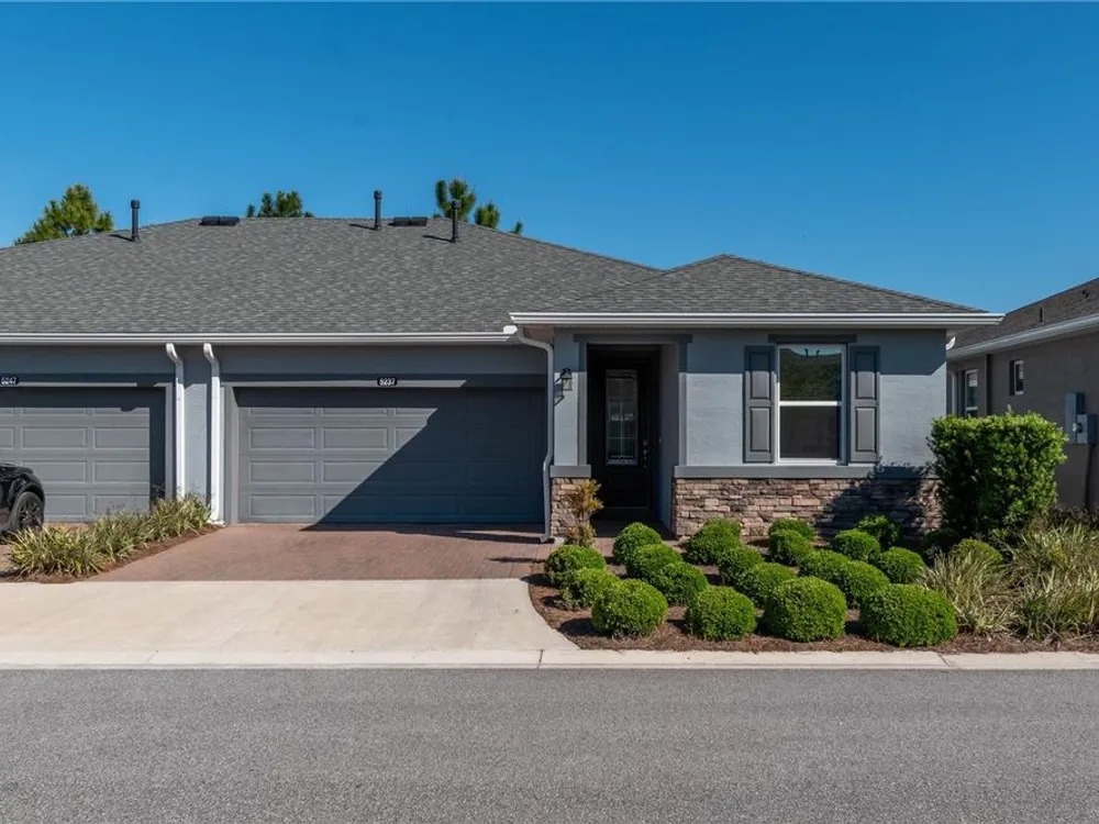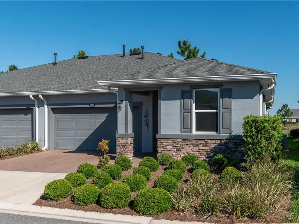Experience Golf Course living with the lowest priced Villa along the golf course– This move-in ready villa is a stunning Muros Model built by Shea Homes that shouldn’t be missed. With mature landscaping, a brick-paver drive and walkway, and a covered entryway, this property has plenty of curb appeal right from the very beginning. Light and welcoming, the home offers a total of 2-bedrooms and 2-baths with an open, split-bedroom floor plan and thoughtful finishes throughout. The main spaces are incredibly open, allowing for flowing conversation throughout the home. A cozy office nook is a great option for those who work from home or could easily be used as a space for bookshelves to show off your collection as desired. The kitchen features lots of cabinet storage, granite countertops, stainless steel appliances, and a large island with breakfast bar. Adjacent to the kitchen is a large dining area which opens directly to the spacious living room, complete with large tinted windows that overlooks the back patio and the golf course beyond. Both bedrooms are spacious and inviting, though the master suite is a true gem with its own views of the golf course, a large walk-in closet, and a private en-suite bathroom with dual vanities and a huge glass door shower. Wood-look tile runs throughout the main spaces with wood-look laminate in the bedrooms for easy clean-up and a sophisticated finish. To the back of the home is a large wrap-around patio that is fully screen enclosed, providing a great opportunity to enjoy a morning coffee while watching the golf course beyond. Conceptualized by golf course designer Tripp Davis and PGA star Tom Lehman, Ocala Preserve’s golf course offers a full-sized course with multiple configurations to play. Ocala Preserve provides a variety of resort-style amenities with HOA fee, including clubhouse, fitness center, community pool, recreational courts and facilities, gated entry with security, fiber optic high speed internet, and maintenance to lawn, landscaping, and exterior. This particular home is situated within the 55+ portion of Ocala Preserve, and provides easy access to miles of trails that run throughout the community. Just minutes away from Ocala Preserve is a variety of additional amenities and attractions to enjoy while taking in the year-round sunshine, including the World Equestrian Center’s year-round events and plenty of shopping and dining options!