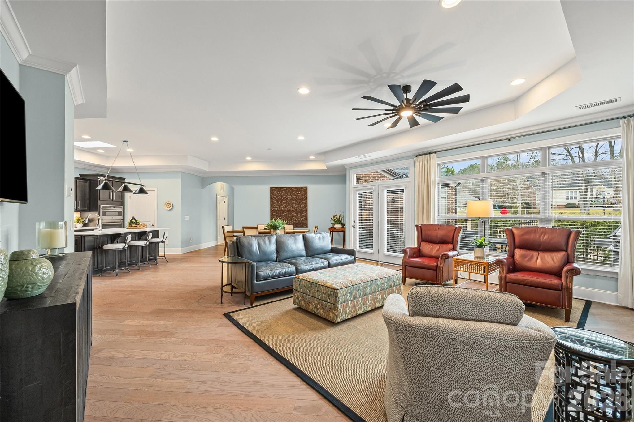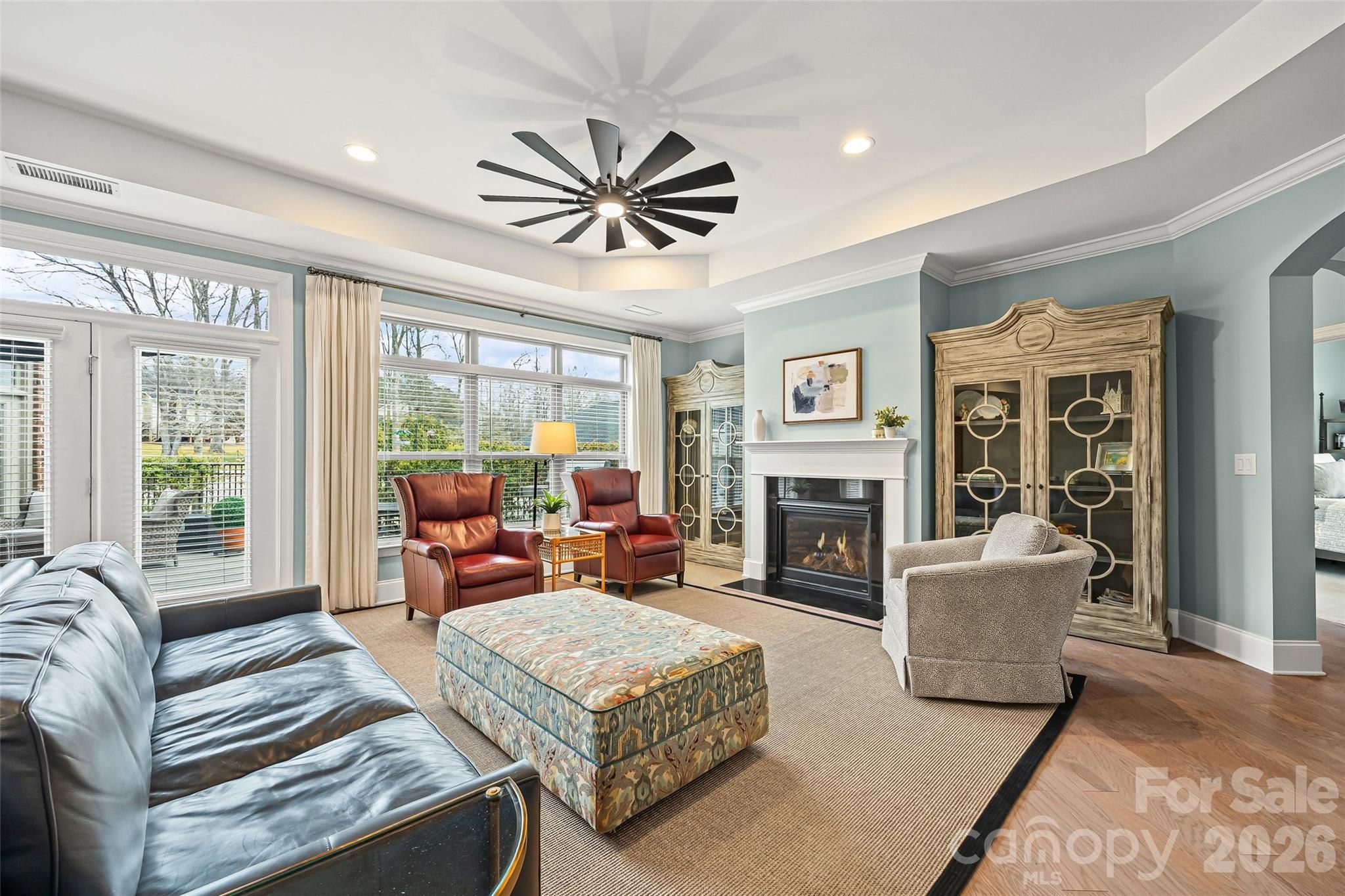 Low maintenance meets luxury in the desirable 55+ community of The Courtyards at Cramerton—just minutes from the quaint downtown areas of both Belmont and Cramerton. This stunning full-brick, single-family home offers true one-level living with exceptional design and thoughtful upgrades throughout. A color-drenched foyer welcomes you inside, complemented by designer lighting, gorgeous hardwood floors, and soaring 9+ foot ceilings throughout. The open-concept layout is ideal for both everyday living and entertaining, featuring a generous living area with a gas log fireplace focal point, a spacious dining area, and a gourmet kitchen—all enhanced by a striking trey ceiling. The chef’s kitchen is a showstopper, complete with a gas cooktop, decorative vent hood, wall oven and microwave, ebony cabinetry, quartz countertops, a stunning tile backsplash, under-cabinet lighting, and an incredible walk-in pantry with custom shelving. Just off the main living space, step out to your private courtyard patio—fully fenced for both relaxation and privacy—creating the perfect indoor-outdoor entertaining flow. The primary suite is a true retreat with a trey ceiling, spacious walk-in closet, and a separate sitting area overlooking—and offering direct access to—the courtyard. The spa-inspired primary bath features a zero-entry tile shower, dual sink vanity, and private water closet. Two secondary bedrooms provide flexibility for guests or a home office, accompanied by a beautifully appointed guest bath with tiled shower. A spacious laundry room offers room for a home command center, while a mudroom, generous walk-in storage closet, and multiple linen closets ensure exceptional organization. Complete with a two-car garage, fenced backyard, and an unbeatable layout, this home delivers upscale, low-maintenance living in one of the area’s most coveted active adult communities.
