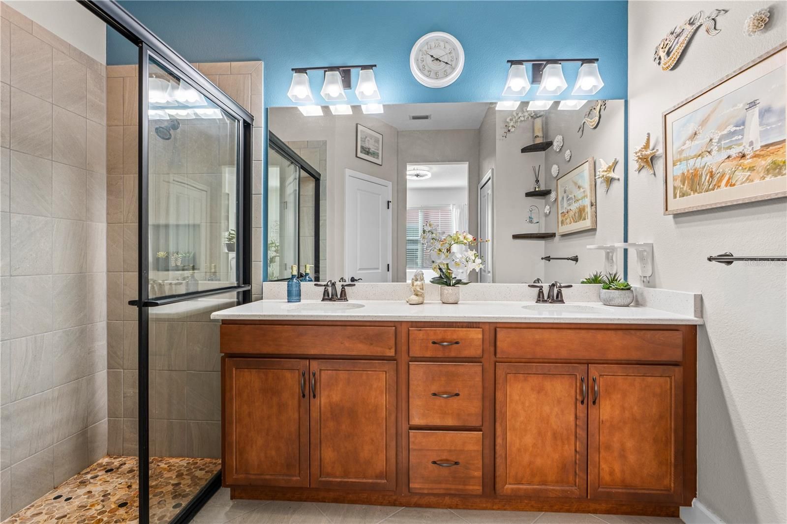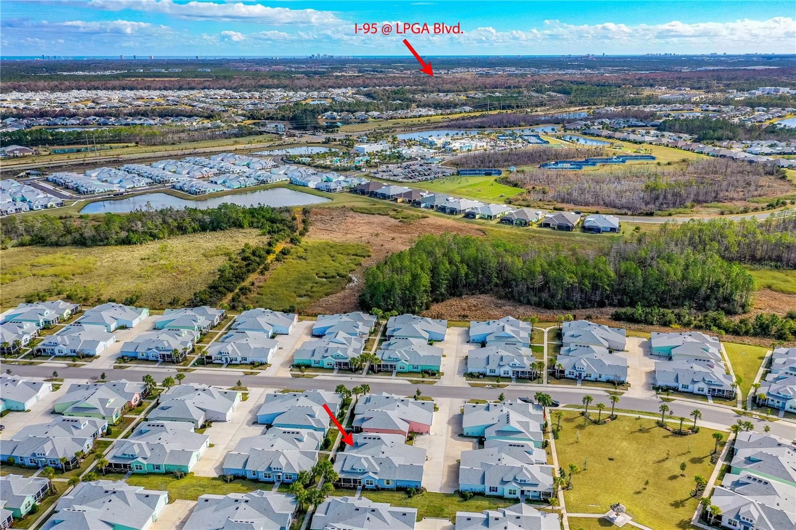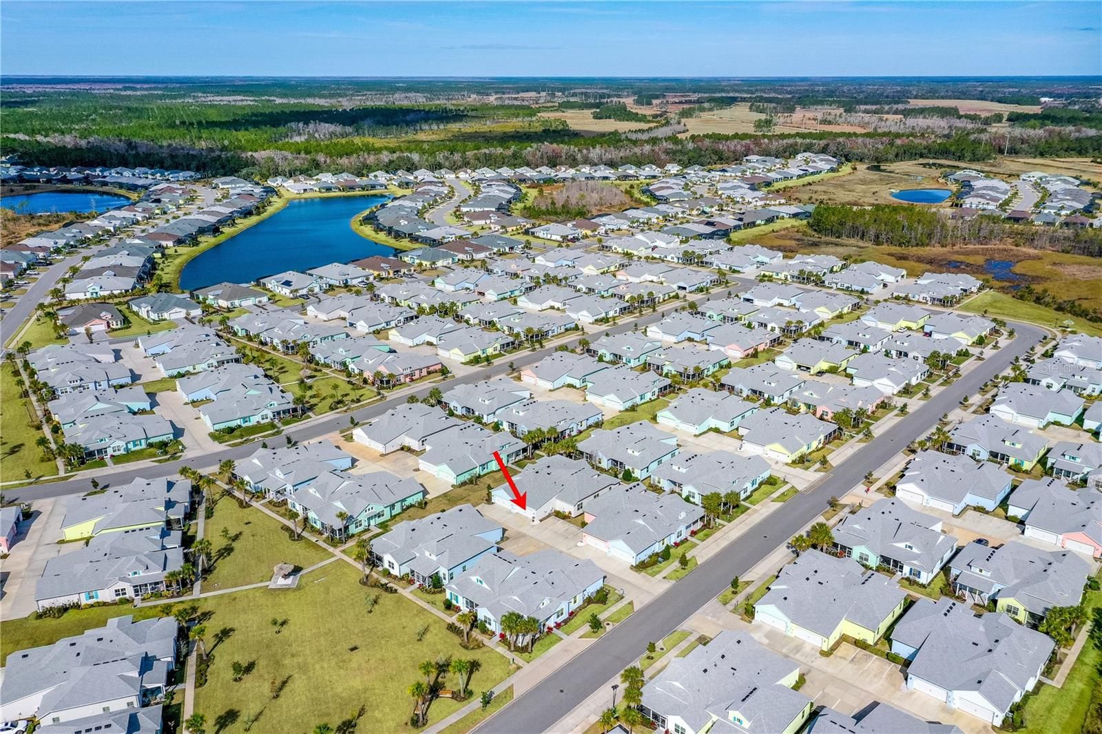 Warm and inviting Camellia Cottage with upgrades and lush landscaping in the highly sought-after Latitude Margaritaville Daytona Beach. Tucked away from road noise, this home offers a peaceful setting with relaxed coastal charm—ideal for full-time living or investment. Vaulted ceilings and tile flooring throughout create an open, airy great room. The light-filled interior features 8-foot doors and tasteful, high-end finishes. The open kitchen is designed for both everyday living and entertaining, showcasing designer-style cabinetry, quartz countertops, an extended island, custom backsplash, stainless steel appliances, gas range, pendant and under-cabinet lighting, soft-close doors, and double-stack pull-out drawers. A flexible dining room or den adds versatile living space. The primary suite offers a private retreat with a large walk-in closet, dual vanities, and a pebble-finished shower floor. Enjoy relaxing mornings and evenings on the front screened porch with micro-screening and a WiFi network extender. The laundry room includes upper cabinets for additional storage. Additional highlights include a 2-car garage (441 sq ft) with attic stairs, ceiling-mounted storage racks, and upgraded lighting fixtures throughout. Latitude Margaritaville is a premier 55+ private, gated community featuring three heated pools, a private beach club with oceanfront pool and coastal views, live music at the Bar & Chill Restaurant, poolside sandbar, Fins Up Fitness Center, Mango Theater, pickleball and tennis courts, dog park, and more where every day feels like a vacation.