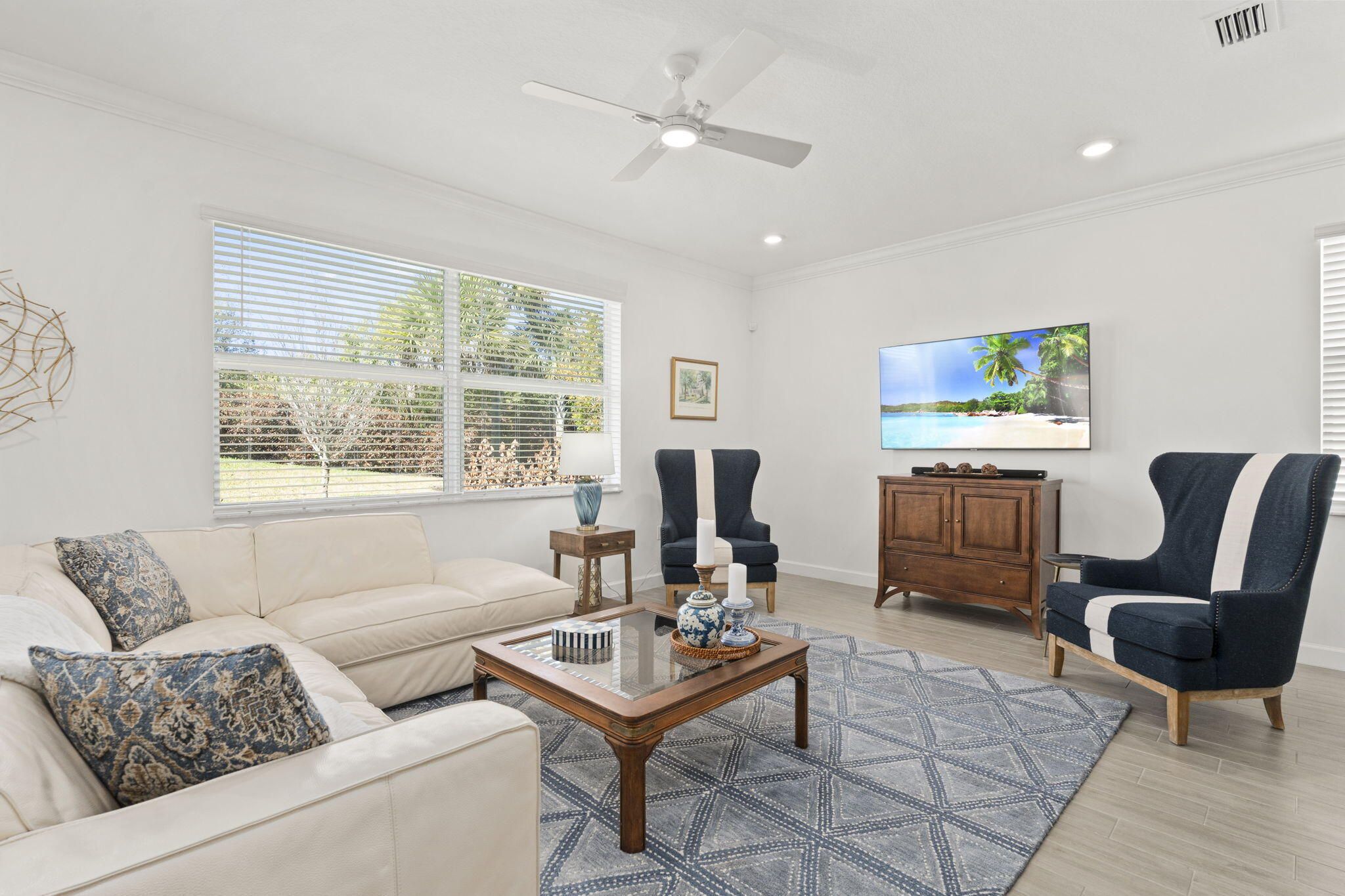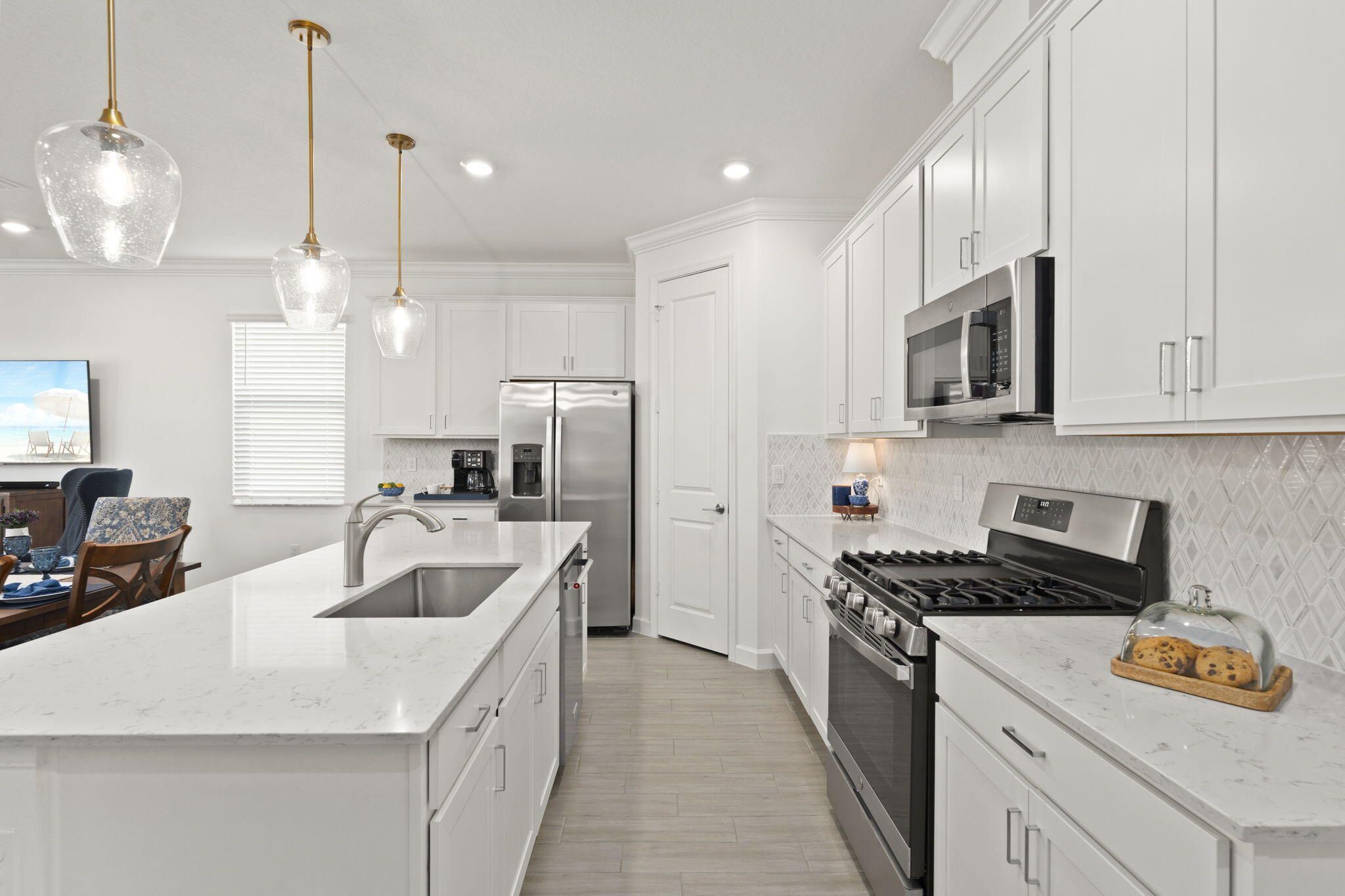 Welcome to Veranda Preserve, a gated 55+ community. This beautifully appointed Magnolia model delivers the resort lifestyle you've been waiting for. With 3 bedrooms, 2 bathrooms, and 1,693 square feet of move-in ready living space, every detail has been thoughtfully considered. The open-concept interior impresses from the moment you walk in. Tile flooring extends throughout the home with no carpet, and the kitchen serves as the focal point with a center island, quartz countertops, 42 inch cabinetry, marble backsplash, crown molding, and a spacious walk-in pantry. Stainless-steel appliances, new dishwasher, and an upgraded washer and dryer are included, making this home truly turnkey. The primary suite is a private retreat, complete with double vanities, a walk-in shower, and a spacious walk-in closet. Additional highlights include natural gas service, hurricane impact windows and doors throughout, and an epoxy-finished garage with ceiling-mounted storage. Step out back and enjoy a covered screened patio and unobstructed views of a private nature preserve with no rear neighbors. The HOA takes care of lawn maintenance, landscaping, and irrigation, leaving you free to enjoy everything Veranda Preserve has to offer. The resort-style clubhouse is the true heart of the community, featuring a concierge, daily organized activities, pickleball, tennis, bocce ball, a fitness center, yoga studio, card room, movie theater, café, BBQ area, and an expansive resort-style pool. Everyday conveniences are just minutes away, including shopping, grocery stores, and easy access to Florida's Turnpike and Palm Beach International Airport just 45 miles away.
