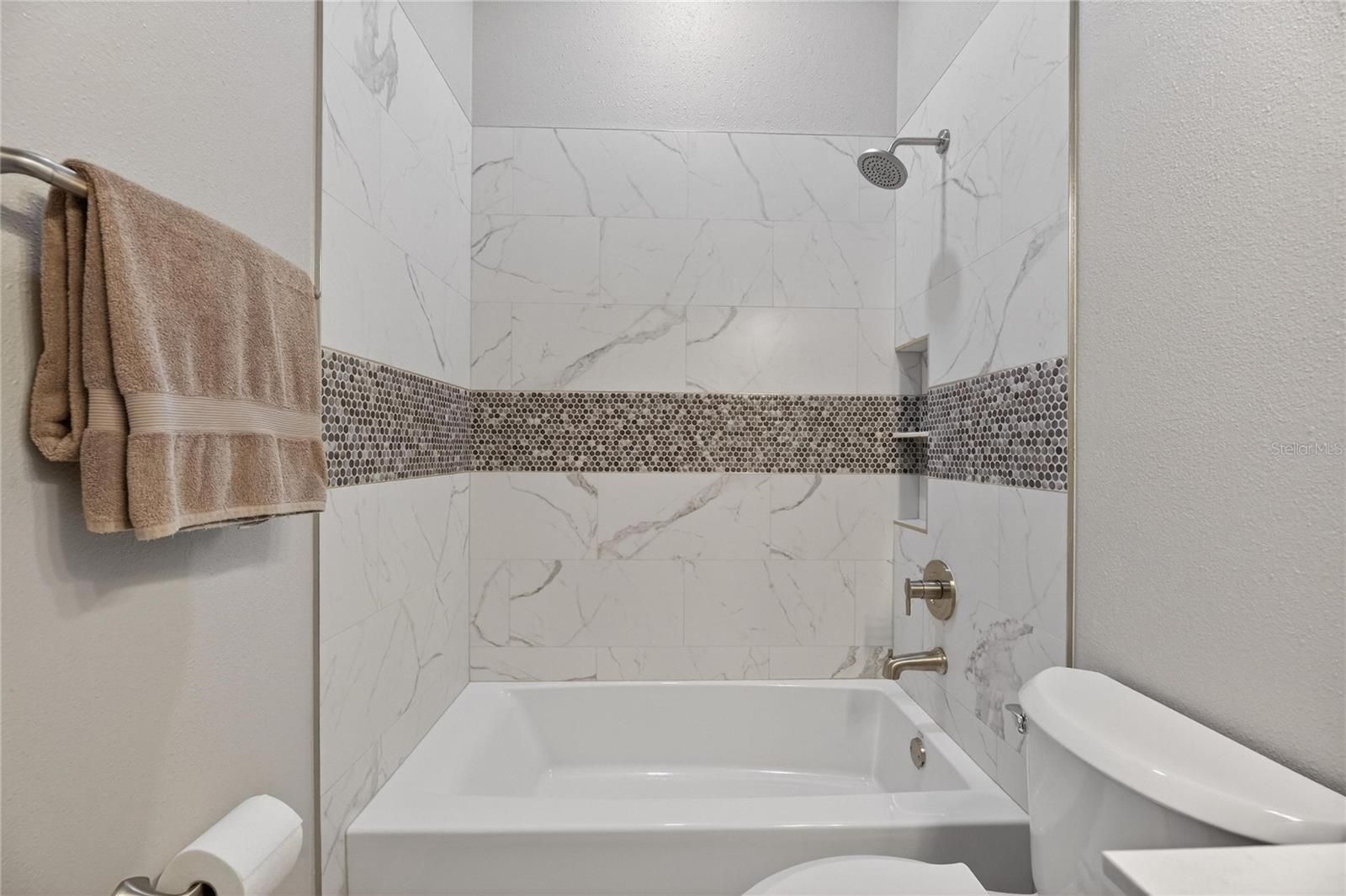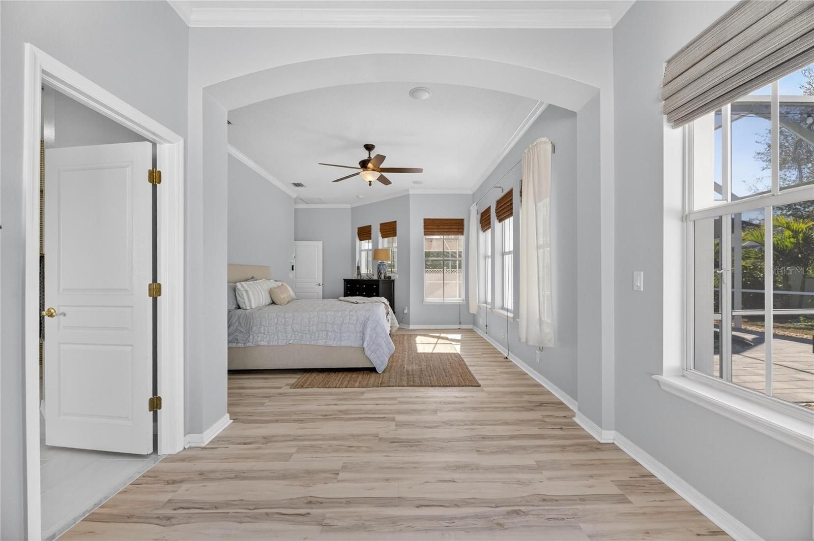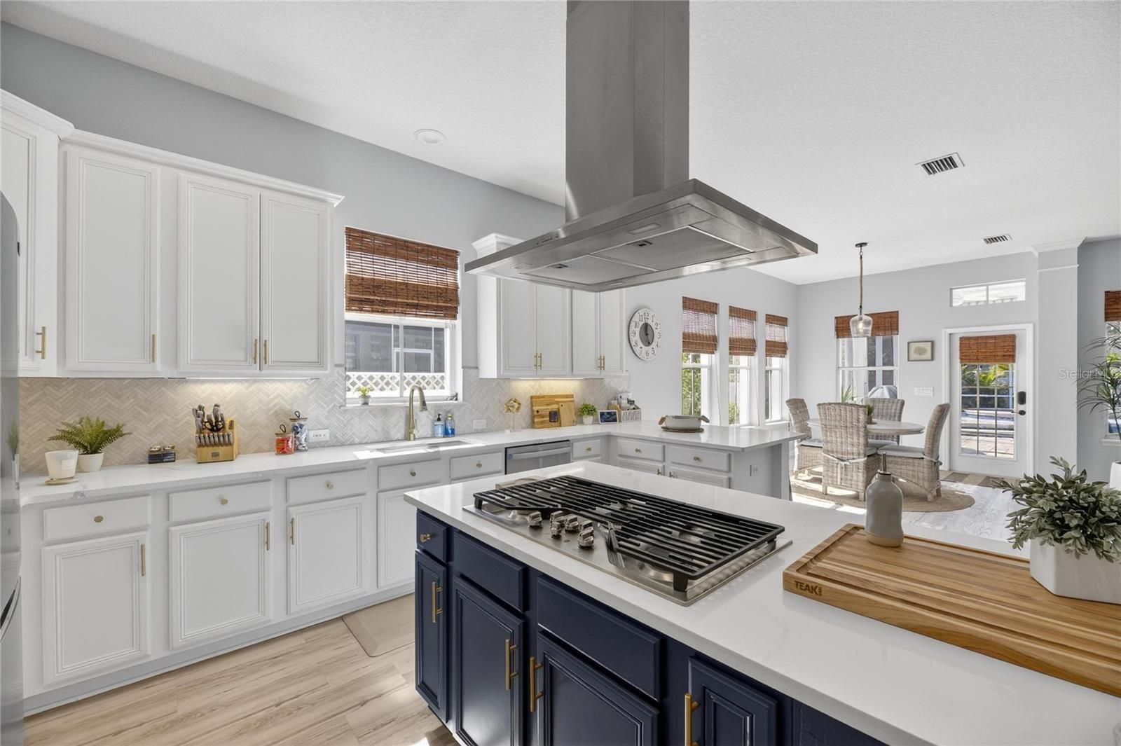 5240 Brighton Shore Drive, Apollo Beach, FL | 4 Bedrooms | 3 Bathrooms | 3,049 Sq Ft | Single-Story | Pool & Spa | Gated MiraBay 5240 Brighton Shore Drive is a single-story, four-bedroom, three-bathroom pool home offering 3,049 square feet of living space, located in the gated waterfront community of MiraBay in Apollo Beach. The home includes a fenced backyard, a two-car garage, and a functional floorplan designed for everyday living and entertaining. Inside luxury vinyl flooring runs throughout complimented by crown molding, tray ceilings, recessed lighting, arched doorways, and custom art niches. The home features a natural gas fireplace, built-in mudroom, ceiling fans, a neutral finishes, attic flooring for added storage, and a whole home water softener and filtration system. The kitchen is a standout featuring quartz countertops, 42-inch upper cabinets with crown molding, new stainless steel appliances, a built-in oven and microwave, natural gas cooktop, wine refrigerator, French-door refrigerator, herringbone backsplash, large basin sink, and a center island with breakfast bar seating. The kitchen opens to the main living areas. Smart-home features include keypad entry, a WiFi-enabled garage door opener, WifFi-enabled thermostat with multi-zone HVAC, Ring doorbell, WiFi irrigation system, and integrated interior and exterior speakers. The primary suite offers a private retreat with a walk-in closet, dual split-sink vanities, a freestanding soaking tub, and a frameless glass shower with a rain shower head and full tile surround. Outdoor living is highlighted by a covered and screened patio with ceiling fans and space for a mounted television, overlooking a pavered pool and heated spa. The pool equipment was fully replaced and the pool was resurfaced in December 2024. The backyard is fully fenced, and additional exterior features include outdoor lighting and hurricane shutters. Major system updates include a roof replacement in August 2023 and replacement of both HVAC units in July 2024. MiraBay offers gated access and amenities including two heated community pools, a two-story 24-hour fitness center, clubhouse, tennis and pickleball courts, walking and biking trails, and golf-cart access to MiraBay Village shopping and dining.