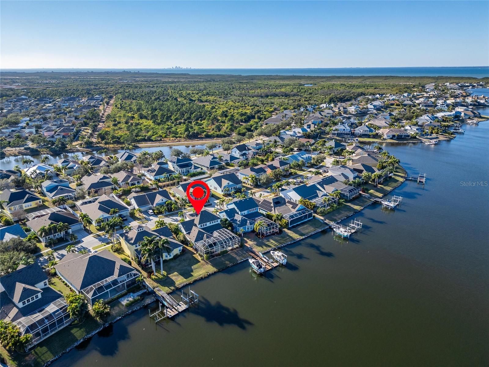 Centrally located in one of Apollo Beach’s most sought-after waterfront communities, MiraBay, this stunning custom home offers the perfect blend of luxury, comfort, and coastal living. Welcome to your own private oasis featuring 4 bedrooms and 3.5 bathrooms with breathtaking lagoon views throughout. Set directly on MiraBay’s 142-acre lagoon, this home includes a private boat dock with boat lift of 12,000 lbs with easy access to the open waters of Tampa Bay, making it ideal for boating and waterfront enthusiasts. Inside, you’ll find an impressive list of upgrades including plantation shutters, custom cabinetry, a grand staircase, new luxury vinyl flooring throughout the entire home and new roof in 2023 and newer air conditioners. Designed for both everyday living and entertaining, the home welcomes you with a formal living room or office just off the entry, while a spacious dining room flows seamlessly into the open-concept kitchen and family room—perfectly positioned to showcase serene water views and open directly to the screened patio. The first-floor primary suite is a true retreat, offering tranquil water views, a spacious ensuite bath with dual vanities, soaking tub, and walk-in closet. Upstairs, you’ll find the additional bedrooms along with a versatile bonus room featuring a built-in desk, ideal for a home office, study space, or homework station. This exceptional waterfront home delivers the MiraBay lifestyle—boating, beauty, and elegance—all in one remarkable setting. Located in the gated waterfront enclave of MiraBay, residents enjoy golf-cart-friendly access to resort-style amenities including a clubhouse, café, 24-hour fitness center, pools, courts, parks, walking trails, and year-round community events. Homes offering this combination of expansive waterfront lot, resort-style pool and spa, dock with boat lift, Tampa Bay access, and generator-backed reliability are extremely limited.