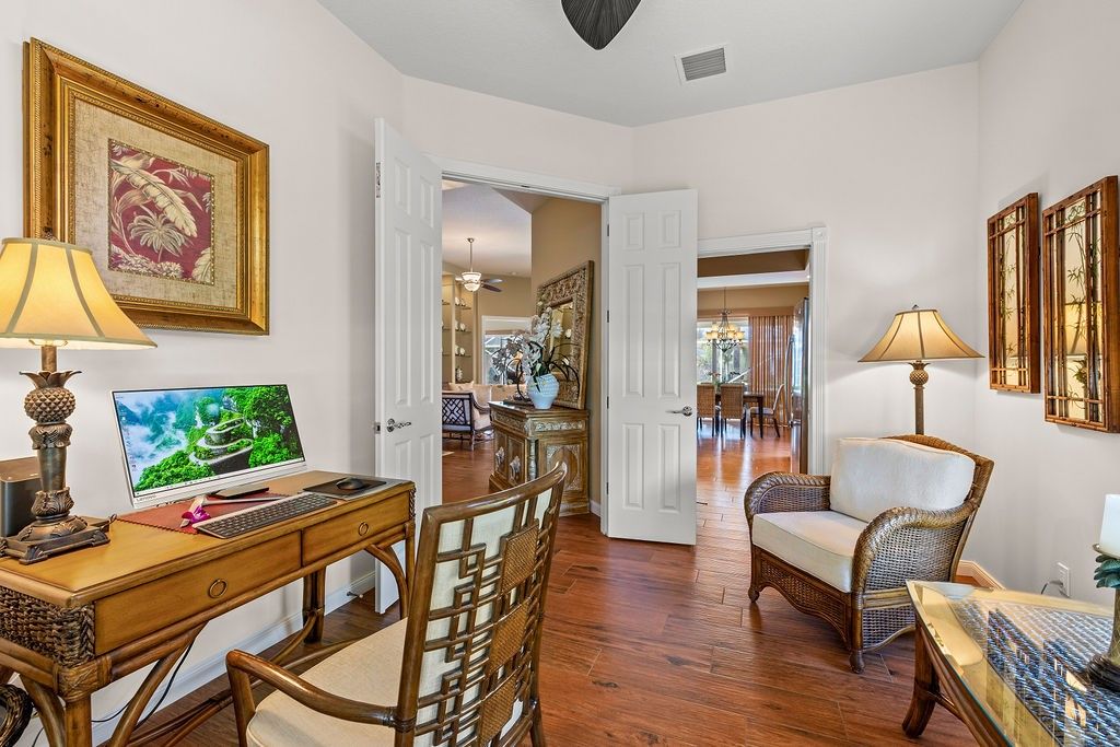 Peaceful views greet your from the front door and the back door of this impeccably maintained home on oversized lot in Isles of Waterway. Open flow for entertaining, impact windows and doors, porch featuring an extended lanai with lake view and lovely park preserve, no homes out your front door, only nature!! Fabulous built ins adorn the living room, perfect for collections or TV. This home is ready for you!