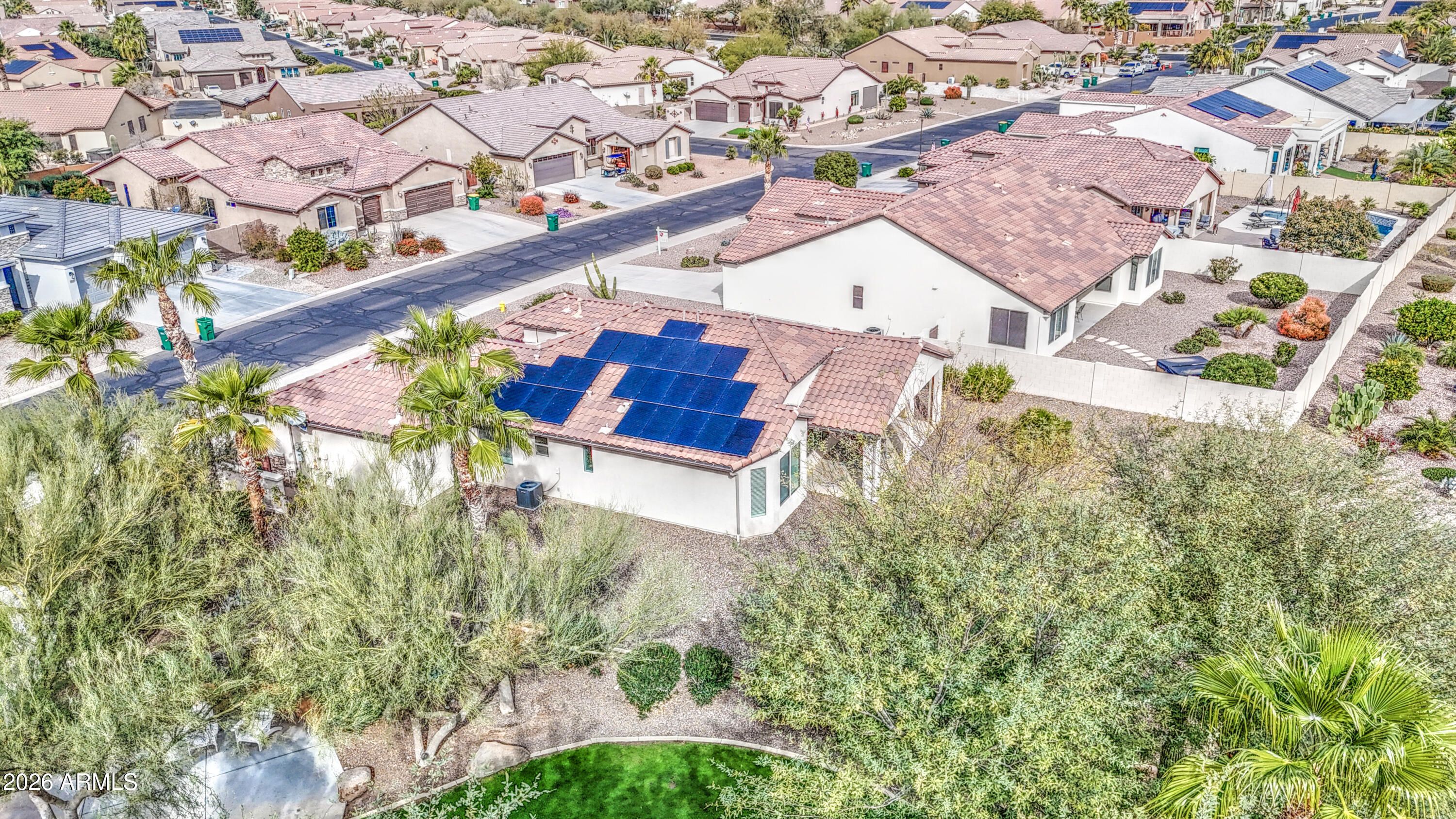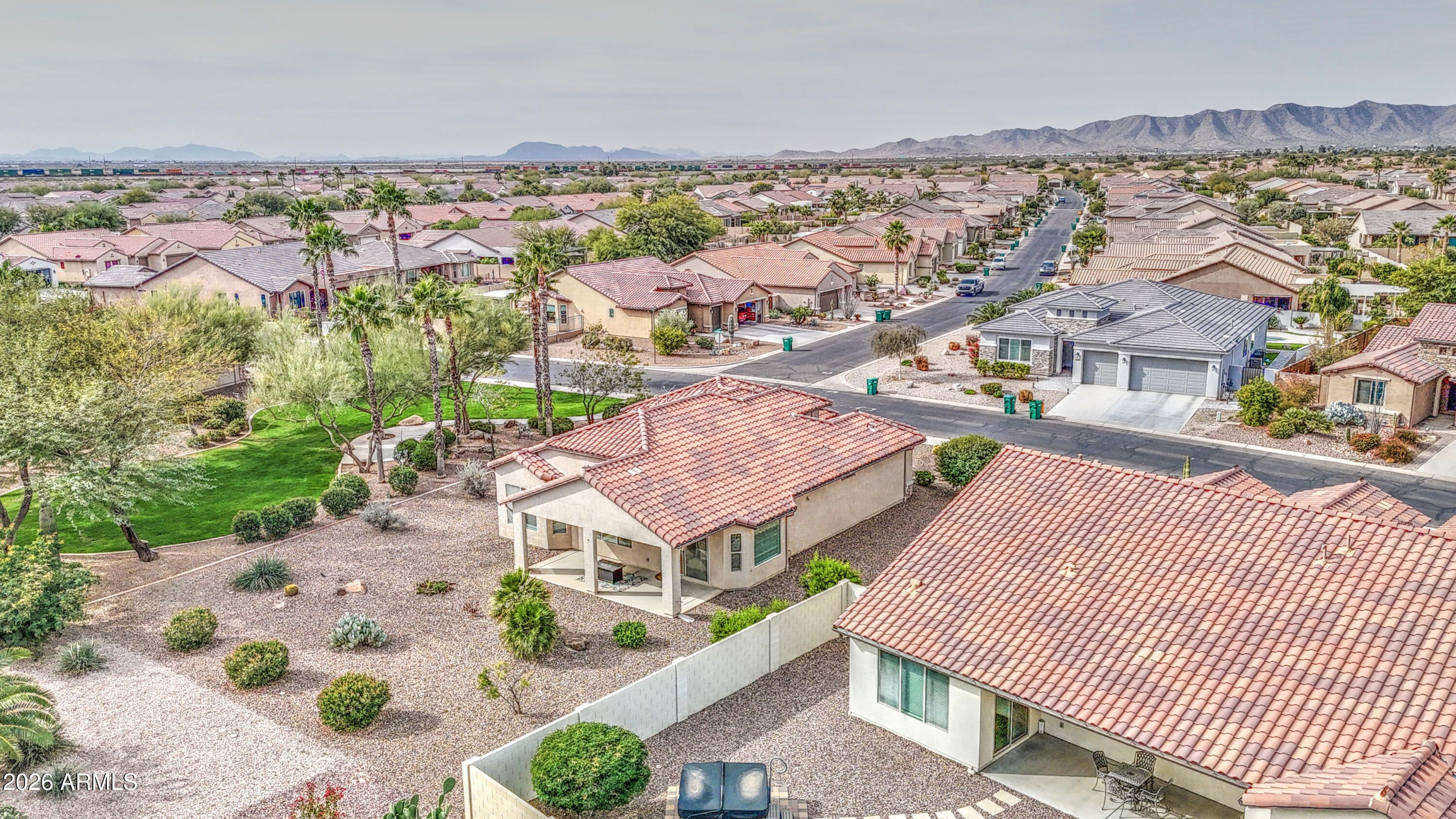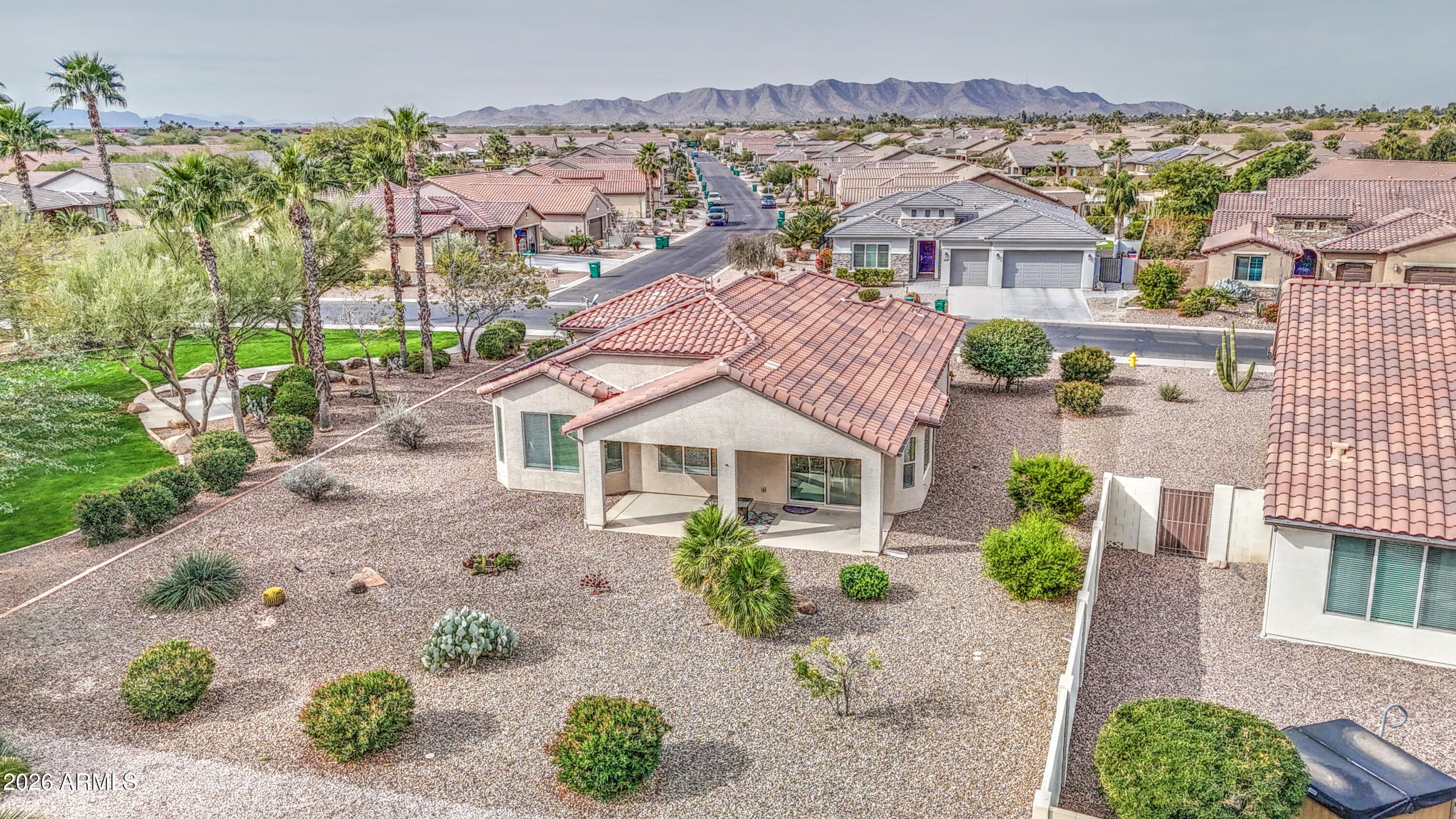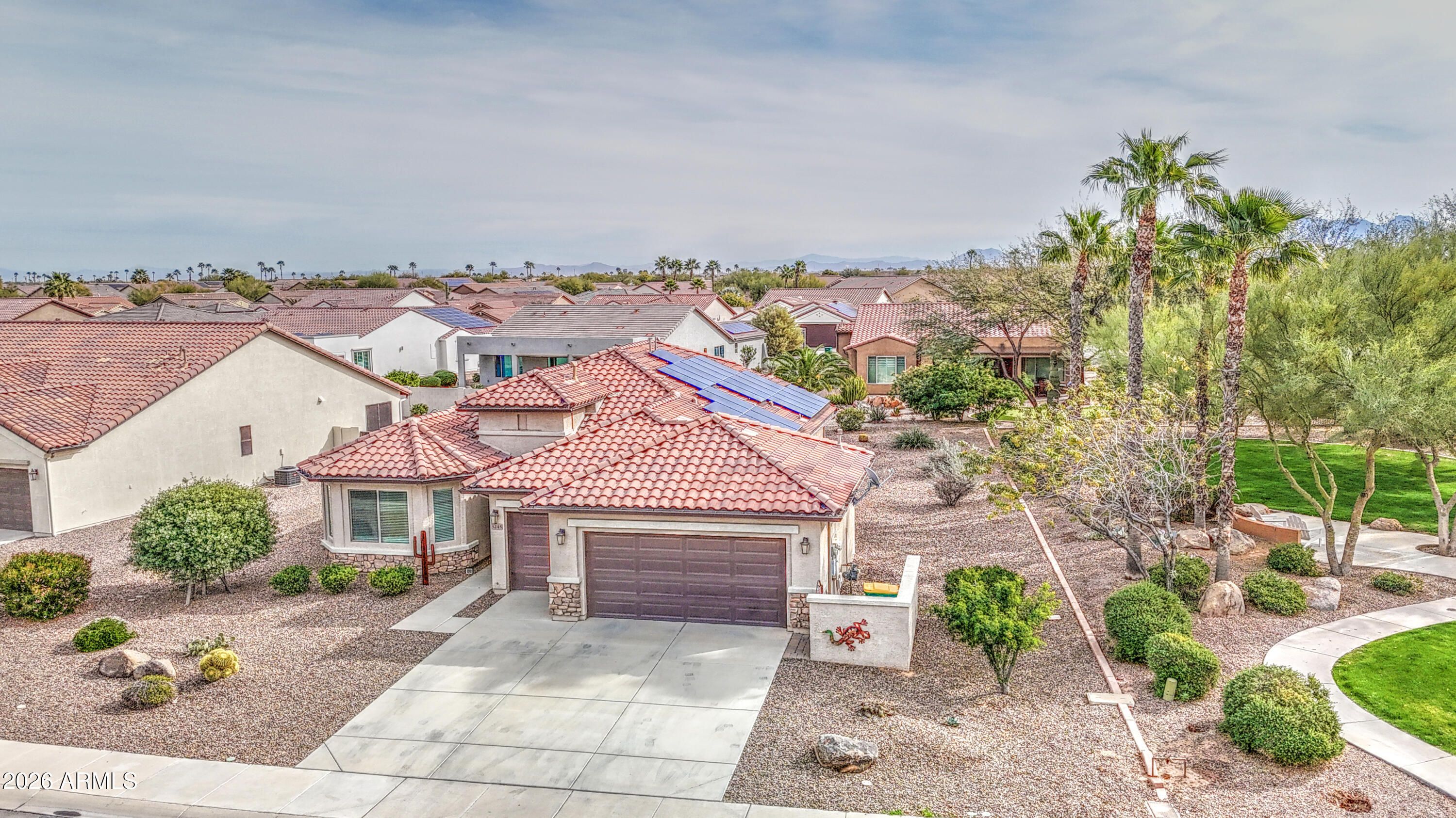 **AMAZINGLY UPGRADED MONTECITO MODEL on a PREMIUM LOT with OWNED SOLAR in a LUXURIOUS 55+ RESORT STYLE GOLF COMMUNITY!** Keep your utility bills down and enjoy living a Life of Amenities Galore in Robson Ranch. Your New Home Features: a Great Open Layout, 2 Large Bedrooms, 2 Baths, DEN, New Interior Paint, Custom Tile Flooring, Newer Fixtures & Fans, New Blinds, New Water Softener, Chef's Kitchen w/ Upgraded Cabinetry, Eat-at Island, Stunning Hardware, Gas Range, SS Appliances, Quartz Countertops, Tile Backsplash, New Reverse Osmosis, Under Cabinet & Pendant Lighting. Backyard has an Extended Covered Patio perfect for entertaining. 2 Car Garage has New Epoxy Flooring & Golf Car Cart Bay w/4 ft extension. Your front and backyard are low maintenance with gorgeous desert landscaping. This Gem is perched beside a gorgeous pocket park with shade trees, walking paths & benches for relaxing. This is one of Arizona's Premier Active Adult Communities with an extensive list of amenities like Golf, Fine Dining, Clubs, Clubhouse Activities, Indoor/Outdoor Pools, Fitness Rooms, Billiards, Crafts, Tennis, Pickleball & more! You also have a Guard Gate for an added level of Security and Privacy. Resort style living at its' best. Come see it before it goes!