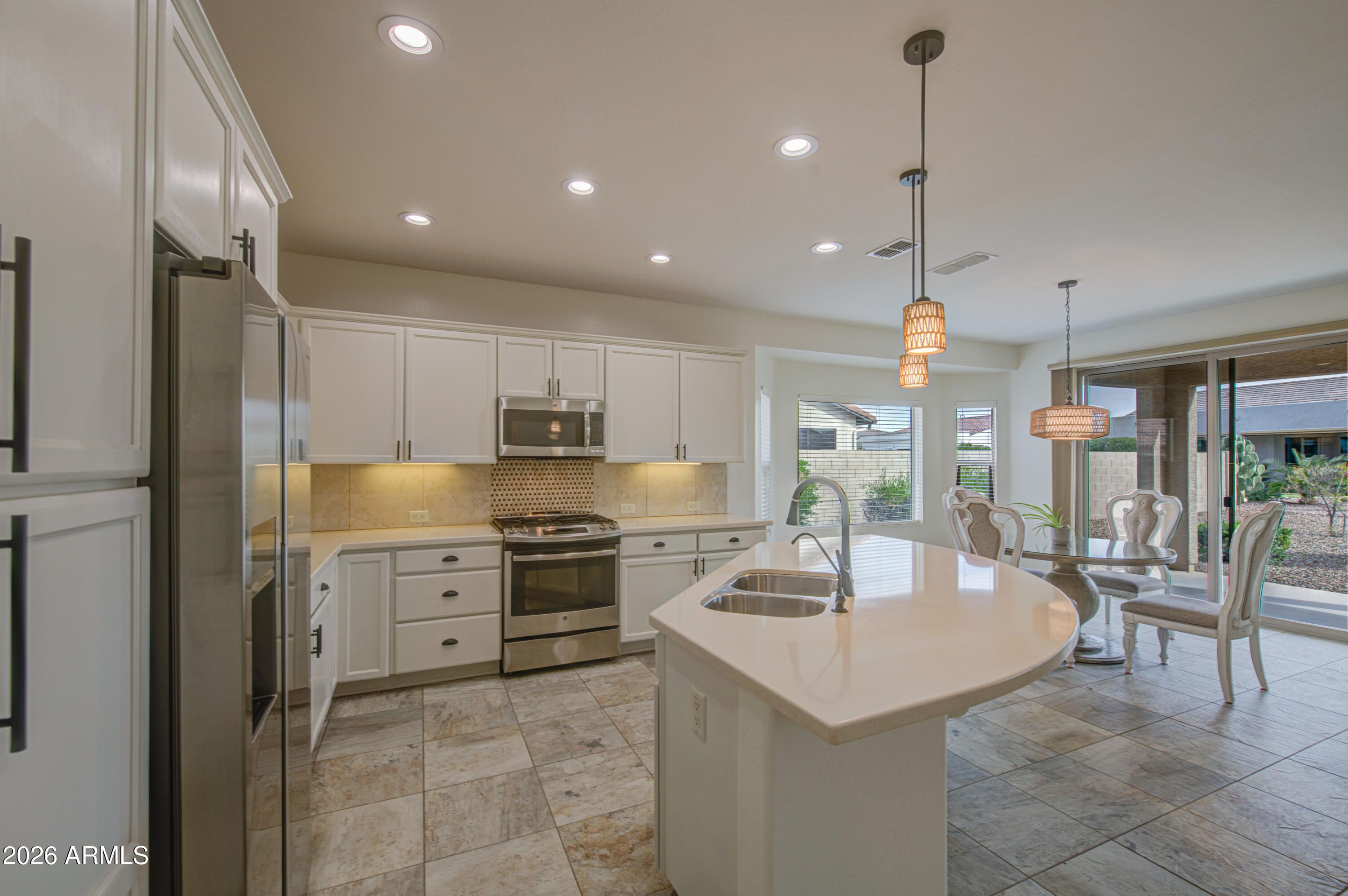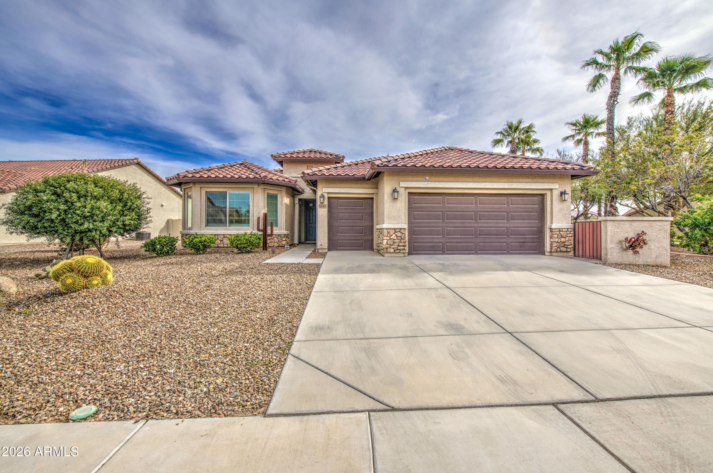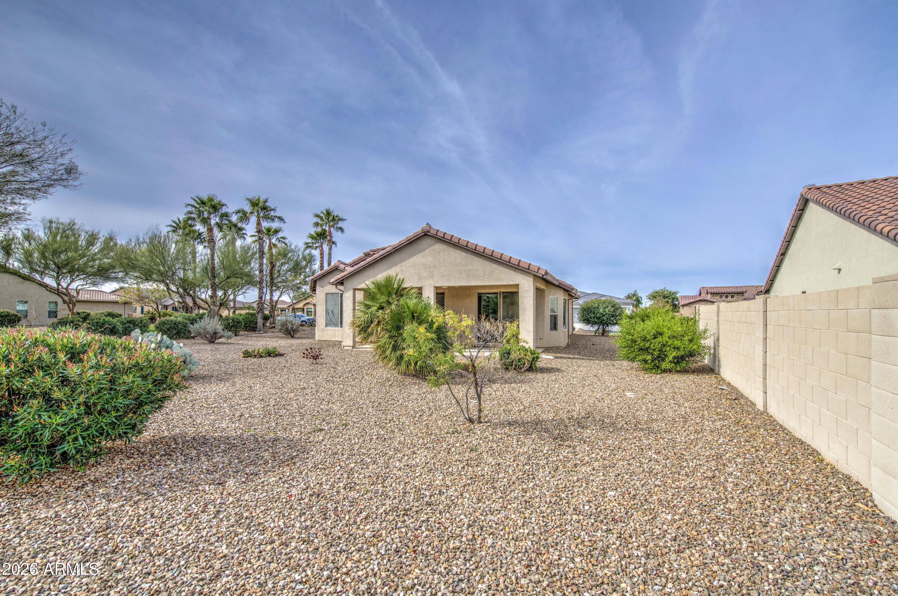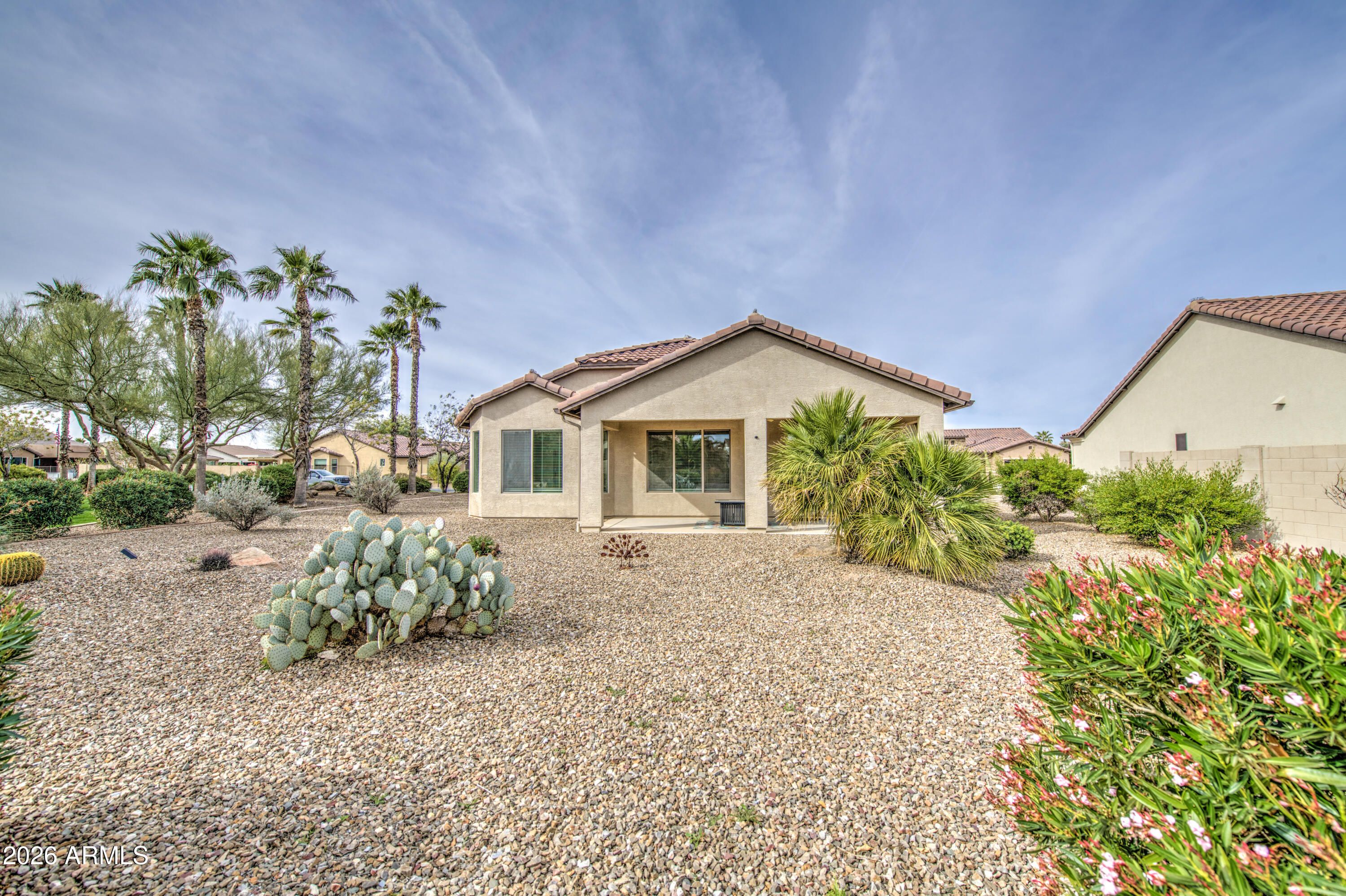 **AMAZINGLY UPGRADED MONTECITO MODEL on a PREMIUM LOT with OWNED SOLAR in a LUXURIOUS 55+ RESORT STYLE GOLF COMMUNITY!** Keep your utility bills down and enjoy living a Life of Amenities Galore in Robson Ranch. Your New Home Features: a Great Open Layout, 2 Large Bedrooms, 2 Baths, DEN, New Interior Paint, Custom Tile Flooring, Newer Fixtures & Fans, New Blinds, New Water Softener, Chef's Kitchen w/ Upgraded Cabinetry, Eat-at Island, Stunning Hardware, Gas Range, SS Appliances, Quartz Countertops, Tile Backsplash, New Reverse Osmosis, Under Cabinet & Pendant Lighting. Backyard has an Extended Covered Patio perfect for entertaining. 2 Car Garage has New Epoxy Flooring & Golf Car Cart Bay w/4 ft extension. Your front and backyard are low maintenance with gorgeous desert landscaping. This Gem is perched beside a gorgeous pocket park with shade trees, walking paths & benches for relaxing. This is one of Arizona's Premier Active Adult Communities with an extensive list of amenities like Golf, Fine Dining, Clubs, Clubhouse Activities, Indoor/Outdoor Pools, Fitness Rooms, Billiards, Crafts, Tennis, Pickleball & more! You also have a Guard Gate for an added level of Security and Privacy. Resort style living at its' best. Come see it before it goes!