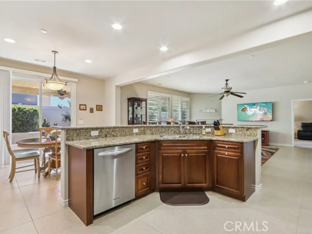 ? Gorgeous Home in Solera Diamond Valley by Del Webb – 55+ Resort-Style Living ? Welcome to this stunning home in the highly sought-after Solera Diamond Valley by Del Webb, a premier 55+ gated community offering exceptional amenities and an active lifestyle. From the moment you arrive, you'll be captivated by the gorgeous curb appeal, stamped concrete walkway, and beautiful front patio-perfect for relaxing and enjoying the serene surroundings. Step inside to an open-concept layout designed for both comfort and entertaining. The formal living and dining rooms offer elegant spaces for gatherings, while the family room with cozy fireplace creates a warm, inviting atmosphere. The chef's kitchen features granite countertops, stainless steel appliances, a pantry, and a charming breakfast nook-ideal for your morning coffee. You'll love the plantation shutters throughout and thoughtful upgrades in every room. The spacious primary suite includes a large walk-in closet and a luxurious bath with granite countertops and a step-in shower. Two additional guest bedrooms share a beautifully upgraded bathroom, also with granite counters and a step-in shower. The laundry room offers convenience with extra cabinetry, storage, and a utility sink. Outside, enjoy your private oasis in the fully fini