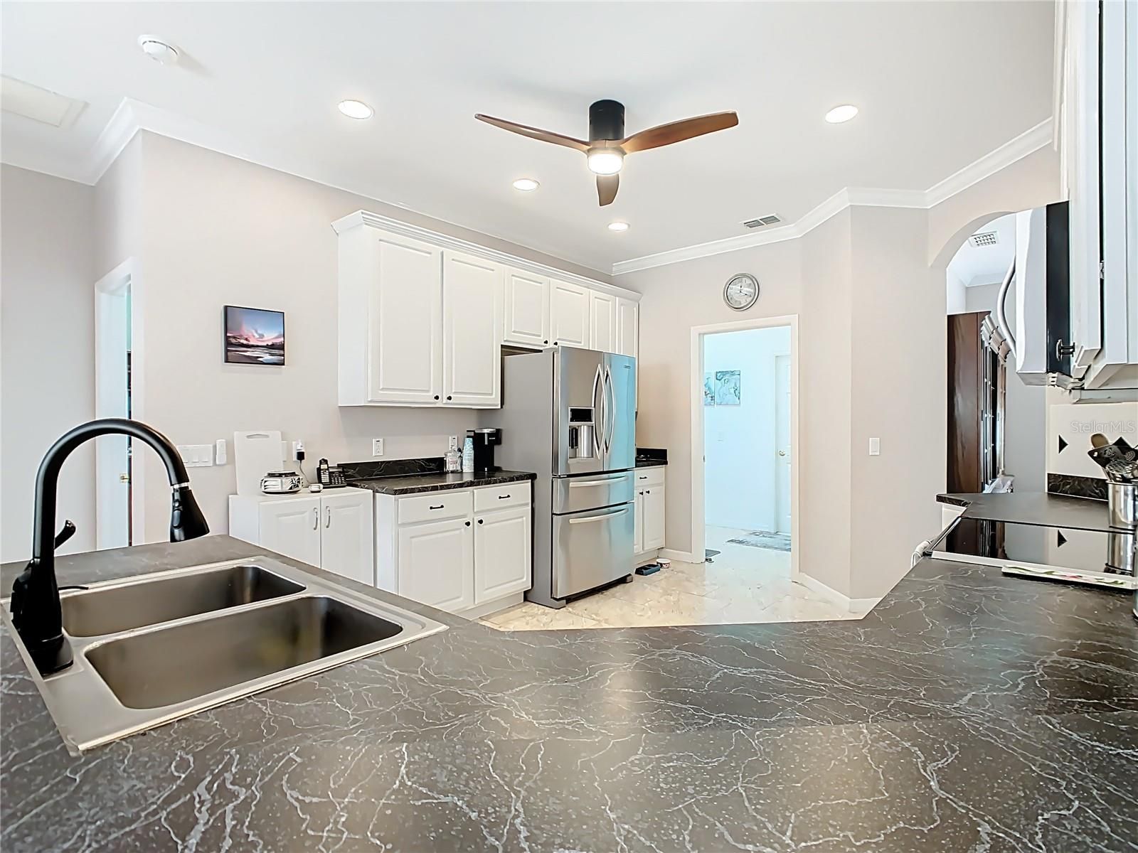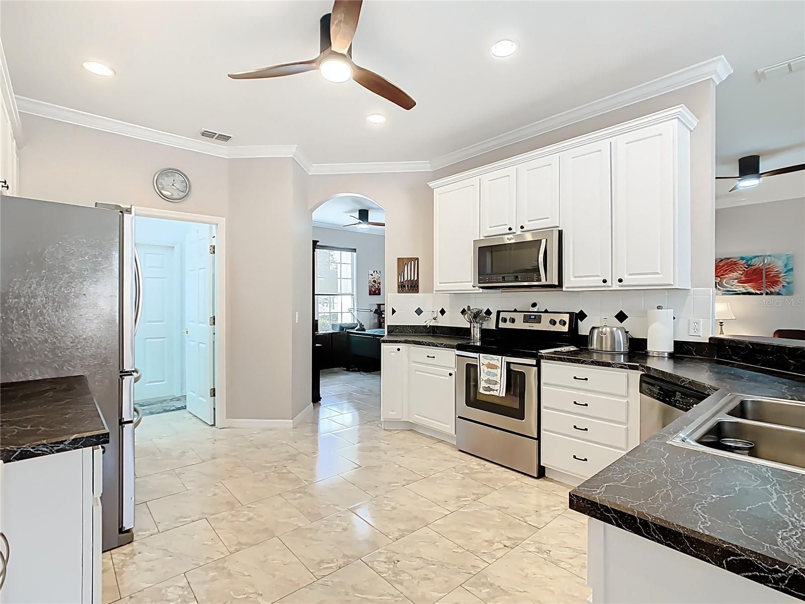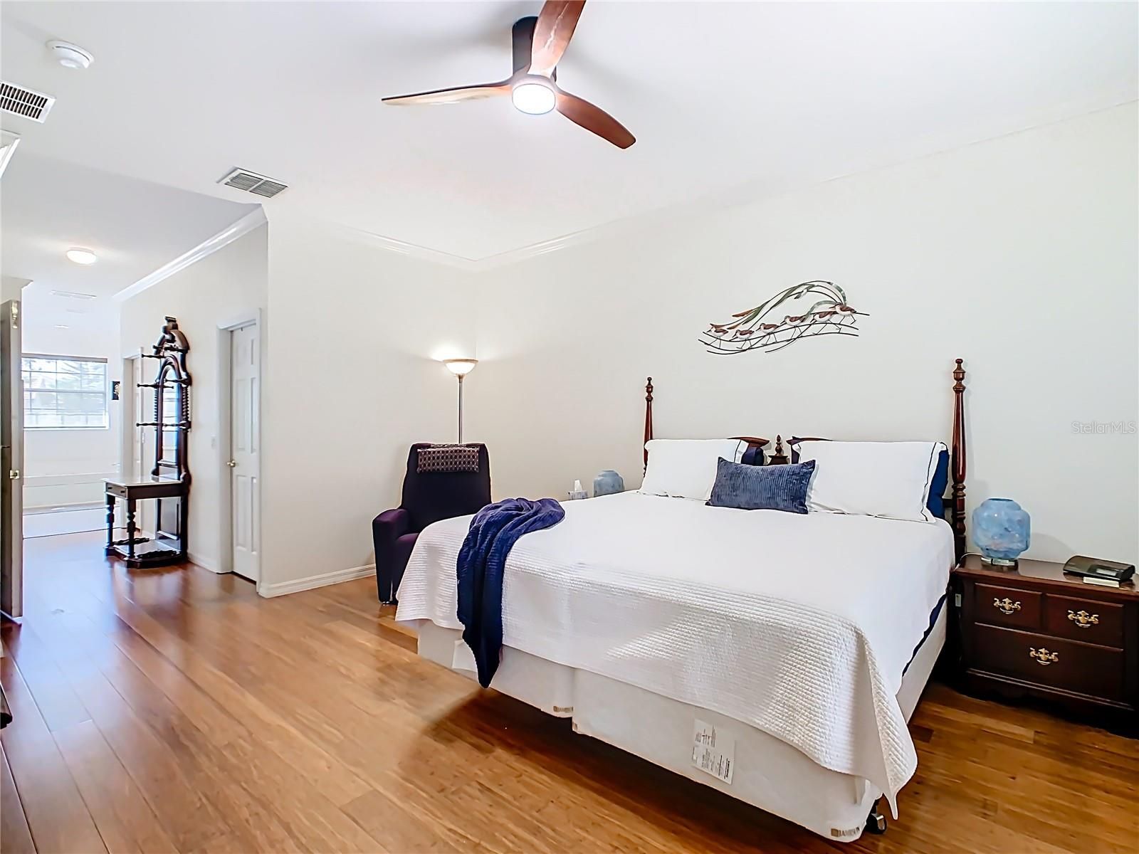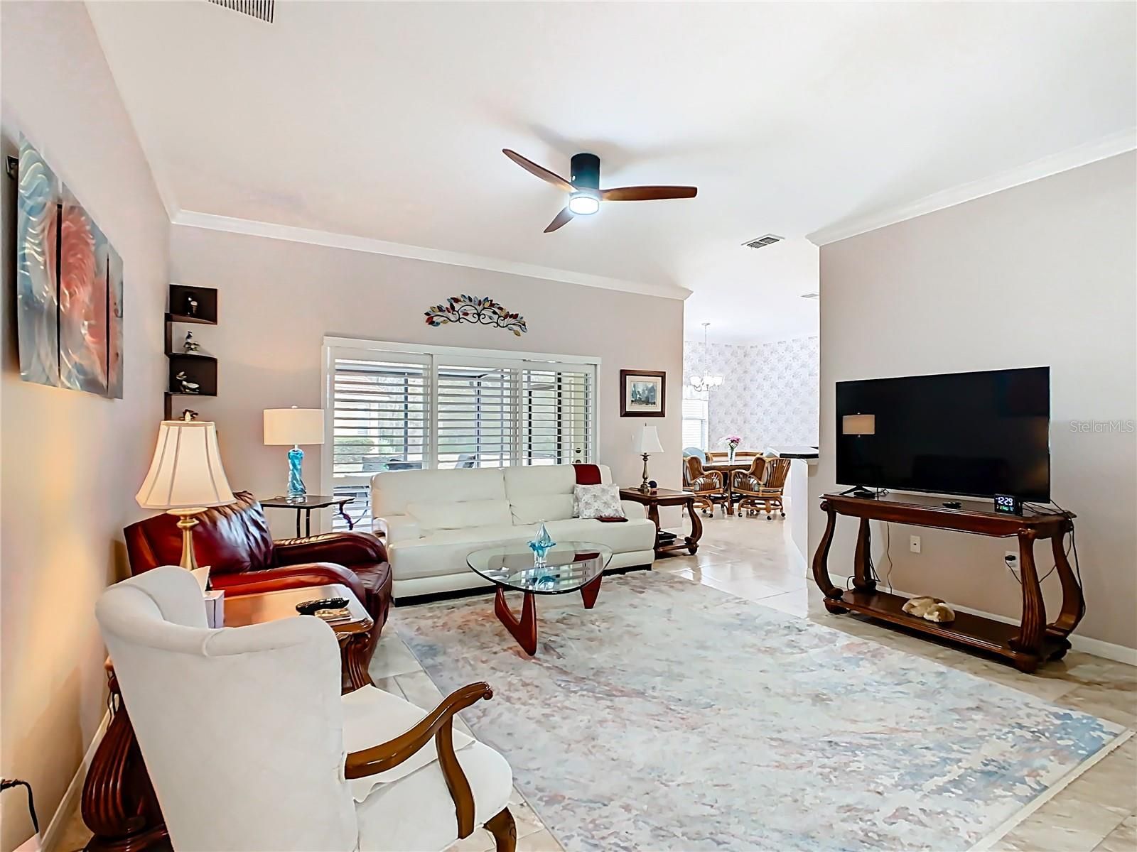 - Ceiling Fan(s), Chair Rail, Crown Molding, High Ceilings, Living/Dining Room, Open Floorplan, Solid-Wood Cabinets, Walk-In Closet(s)