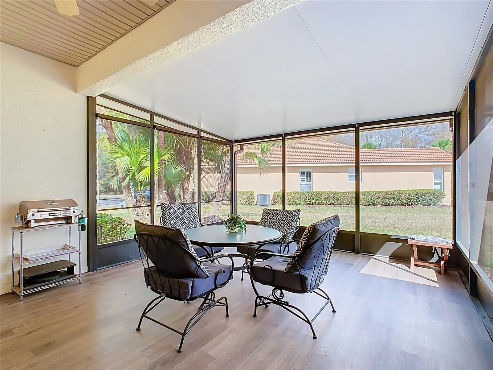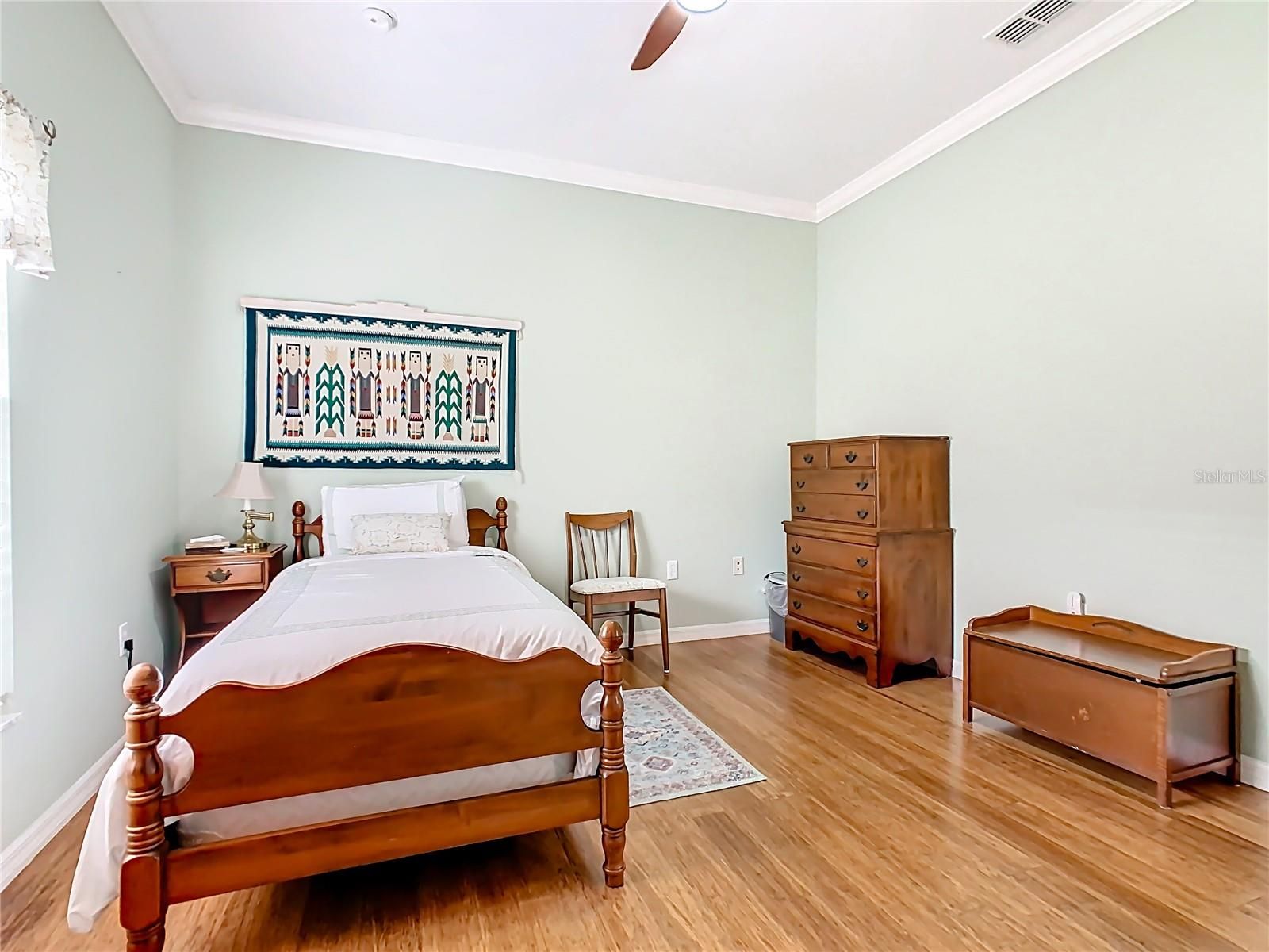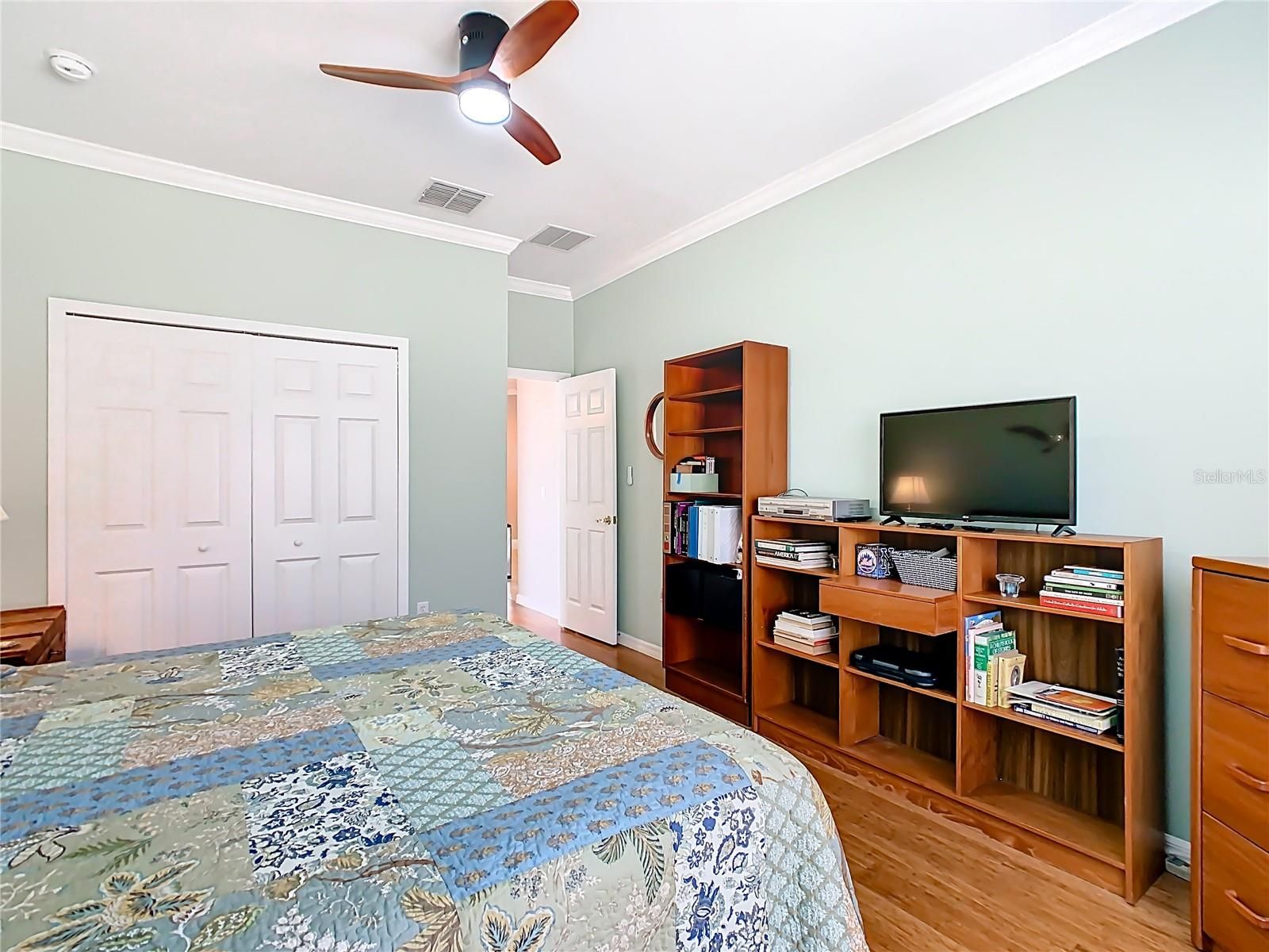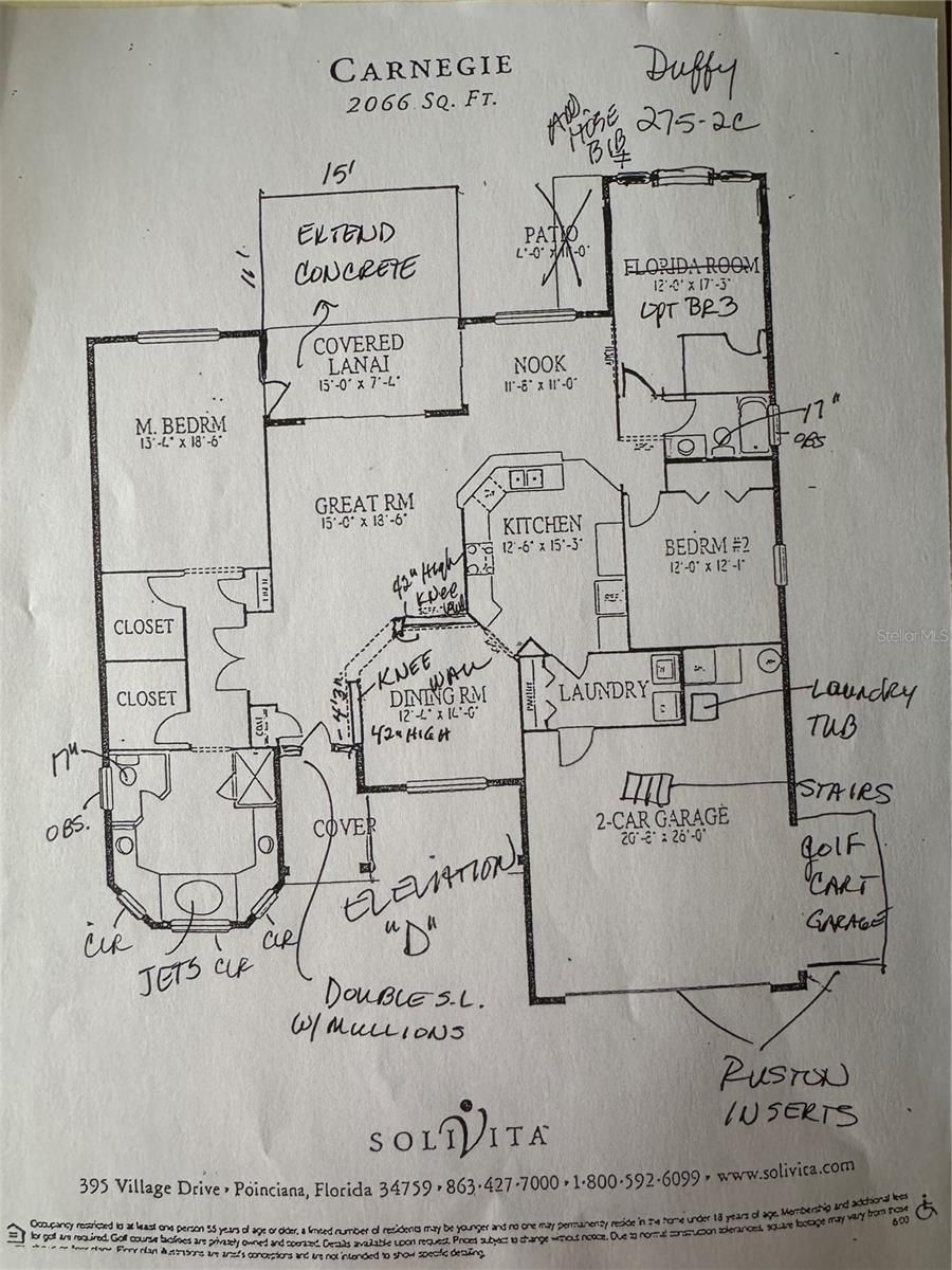 Carnegie Custom by AV Homes – 3 Bedrooms, 2 Baths + DEN + Golf Cart Garage – One-of-a-Kind Home This is not your typical Carnegie. This is a true custom build by AV Homes, created specifically for the original owner—a unique floorplan you won’t find anywhere else. Thoughtful modifications, premium finishes, and an exceptional homesite make this property stand out from every other home on the market. ****Prime Homesite & Outdoor Living**** Corner lot with golf course views from the front, **Over 1/4-acre lot, **Private wooded preserve behind the home, **Screened lanai with weatherproof Luxury Vinyl Plank flooring, **Ideal exposure East/SE for morning sun and cool afternoon shade. ****Exterior Features**** **Spanish Tile Roof **Oversized 2-car garage + separate golf cart garage **Finished garage flooring, overhead storage, and laundry tub **Exterior repainted in 2025 **Garage ladder with extra storage in attic ****Interior Highlights**** **No Carpet Anywhere, Step inside and prepare to be impressed. This home was designed with comfort, elegance, and durability in mind. **Ceramic tile in all wet areas **Stranded bamboo flooring in all bedrooms—glued down, not floating **Crown molding throughout, even in bathrooms **Upgraded lighting, mirrors, fixtures, and fans **Custom plantation shutters, including over the triple sliders—creating a picture-window effect **French doors (not sliders) from both the dining room and primary bedroom ****Custom Floorplan Enhancements**** **Dedicated DEN at the front of the home with knee walls for added usable space—perfect for office, library, or hobby room **Dining room positioned off the kitchen for an open yet defined layout **Gourmet Kitchen **42" solid wood cabinetry **Stainless steel appliances, including a 4-door refrigerator with water & ice **Excellent storage and workspace for the home chef ****Luxurious Primary Suite**** **A retreat designed for relaxation: **Soaker tub **Separate walk-in glass shower **Two adult-height vanities **Additional sit-down makeup vanity **Private French door to lanai ****This home is truly special—a custom design, meticulously maintained, and priced to sell quickly. There is no other home like it, and opportunities like this don’t last long. Call today for your private showing before it’s gone.