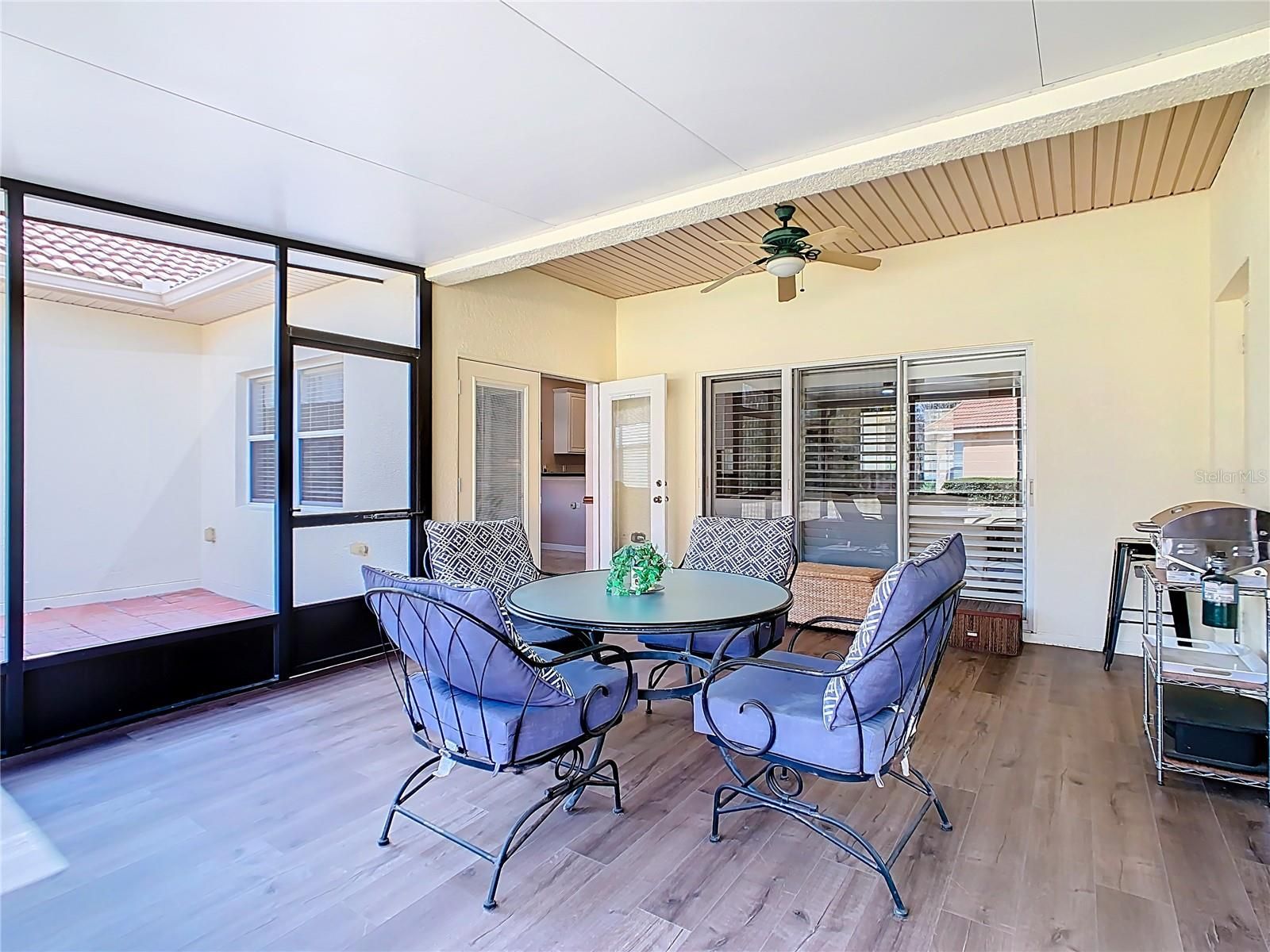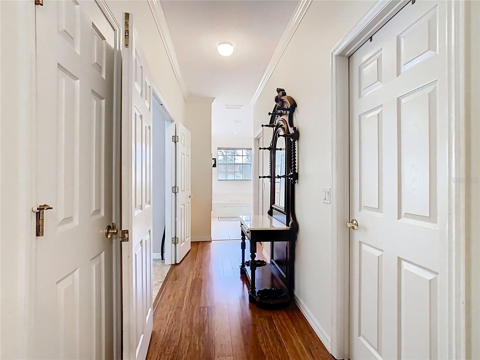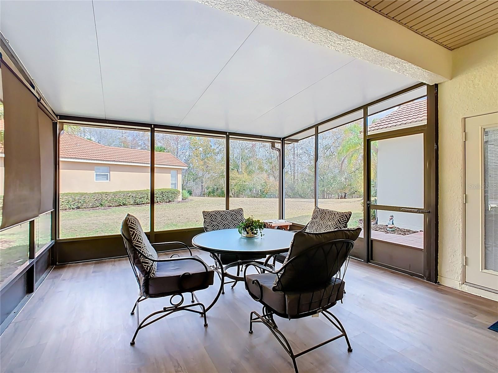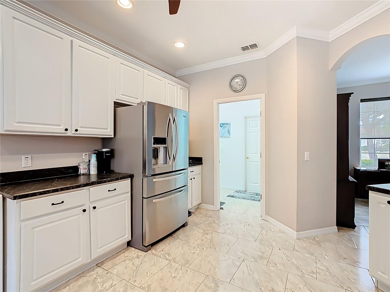Carnegie Custom by AV Homes – 3 Bedrooms, 2 Baths + DEN + Golf Cart Garage – One-of-a-Kind Home This is not your typical Carnegie. This is a true custom build by AV Homes, created specifically for the original owner—a unique floorplan you won’t find anywhere else. Thoughtful modifications, premium finishes, and an exceptional homesite make this property stand out from every other home on the market. ****Prime Homesite & Outdoor Living**** Corner lot with golf course views from the front, **Over 1/4-acre lot, **Private wooded preserve behind the home, **Screened lanai with weatherproof Luxury Vinyl Plank flooring, **Ideal exposure East/SE for morning sun and cool afternoon shade. ****Exterior Features**** **Spanish Tile Roof **Oversized 2-car garage + separate golf cart garage **Finished garage flooring, overhead storage, and laundry tub **Exterior repainted in 2025 **Garage ladder with extra storage in attic ****Interior Highlights**** **No Carpet Anywhere, Step inside and prepare to be impressed. This home was designed with comfort, elegance, and durability in mind. **Ceramic tile in all wet areas **Stranded bamboo flooring in all bedrooms—glued down, not floating **Crown molding throughout, even in bathrooms **Upgraded lighting, mirrors, fixtures, and fans **Custom plantation shutters, including over the triple sliders—creating a picture-window effect **French doors (not sliders) from both the dining room and primary bedroom ****Custom Floorplan Enhancements**** **Dedicated DEN at the front of the home with knee walls for added usable space—perfect for office, library, or hobby room **Dining room positioned off the kitchen for an open yet defined layout **Gourmet Kitchen **42" solid wood cabinetry **Stainless steel appliances, including a 4-door refrigerator with water & ice **Excellent storage and workspace for the home chef ****Luxurious Primary Suite**** **A retreat designed for relaxation: **Soaker tub **Separate walk-in glass shower **Two adult-height vanities **Additional sit-down makeup vanity **Private French door to lanai ****This home is truly special—a custom design, meticulously maintained, and priced to sell quickly. There is no other home like it, and opportunities like this don’t last long. Call today for your private showing before it’s gone.