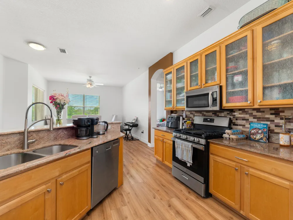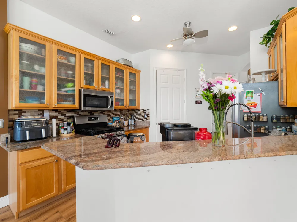 Welcome to Your New Lakefront Retreat in Lake Forest at St. Lucie West. Inside this beautifully maintained CBS lakefront home you'll experience Florida living at its finest. Designed for both comfort and elegance, the interior offers a bright and spacious layout featuring tile flooring throughout. The kitchen is a showpiece with decorative cabinetry, pantry, granite countertops, a breakfast bar, and stainless steel appliances--perfect for hosting or everyday living. The home boasts a formal living room and separate dining area with a large window framing serene lake views. The expansive family room opens to an extended screened patio through sliding glass doors, making it ideal for entertaining or simply relaxing lakeside.