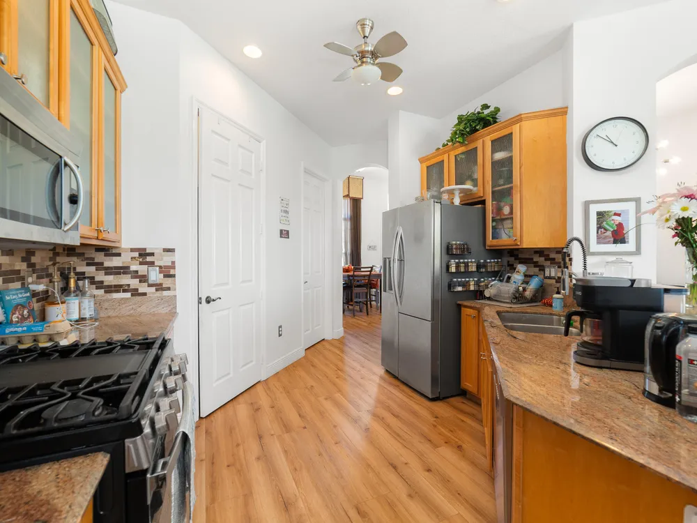 - Electric Garage Door, Microwave, Gas Range, Refrigerator, Smoke Detector, Electric Water Heater, Water Softener Owned