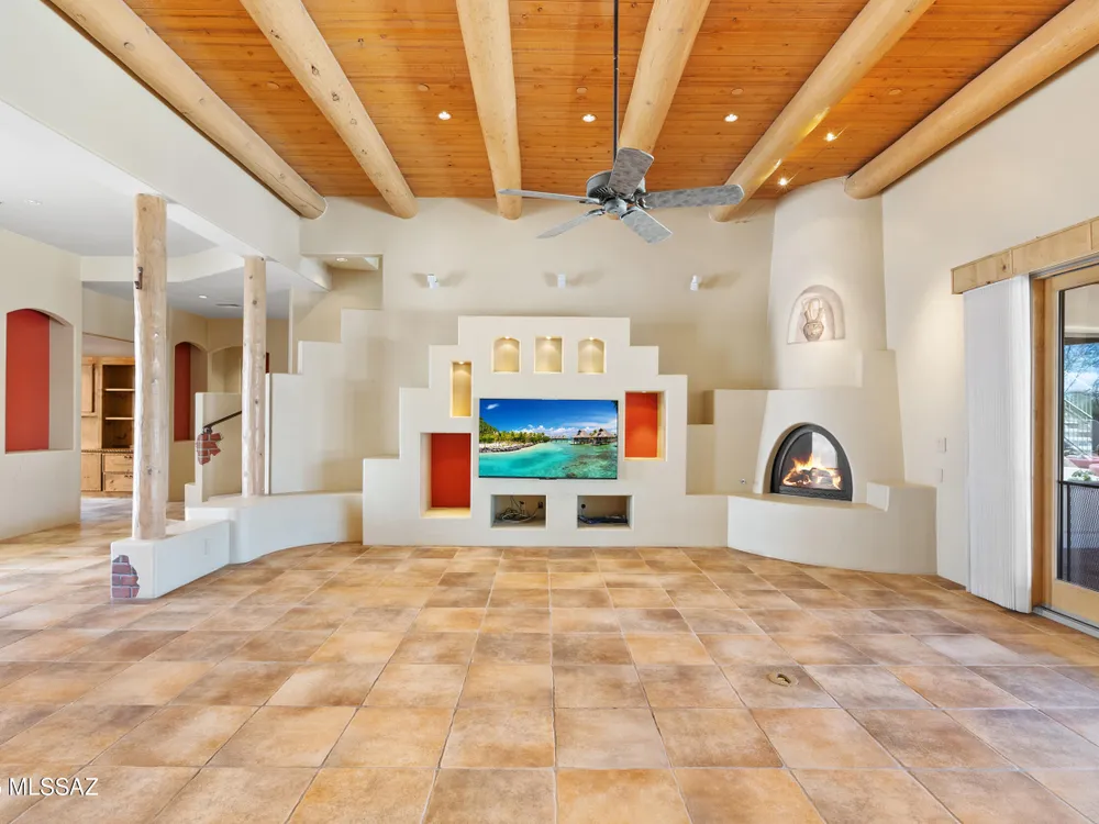 - Beamed Ceilings, Ceiling Fan(s), Central Vacuum, Entertainment Center, Entrance Foyer, Fire Sprinkler System, High Ceilings, Plant Shelves, Skylights, Split Bedrooms, Storage, Vaulted Ceiling(s), Walk-In Closet(s), Wet Bar