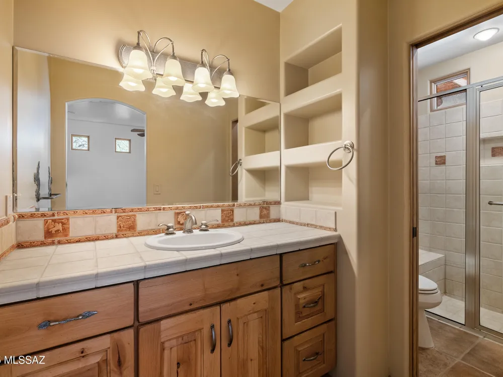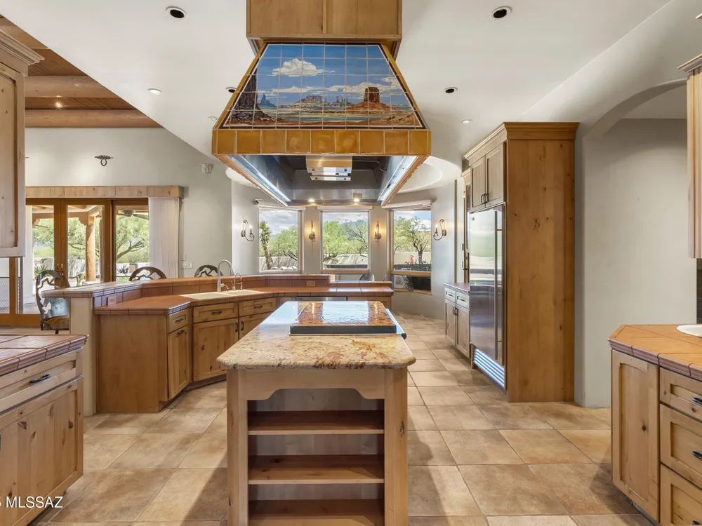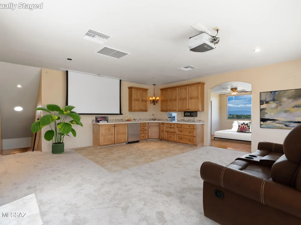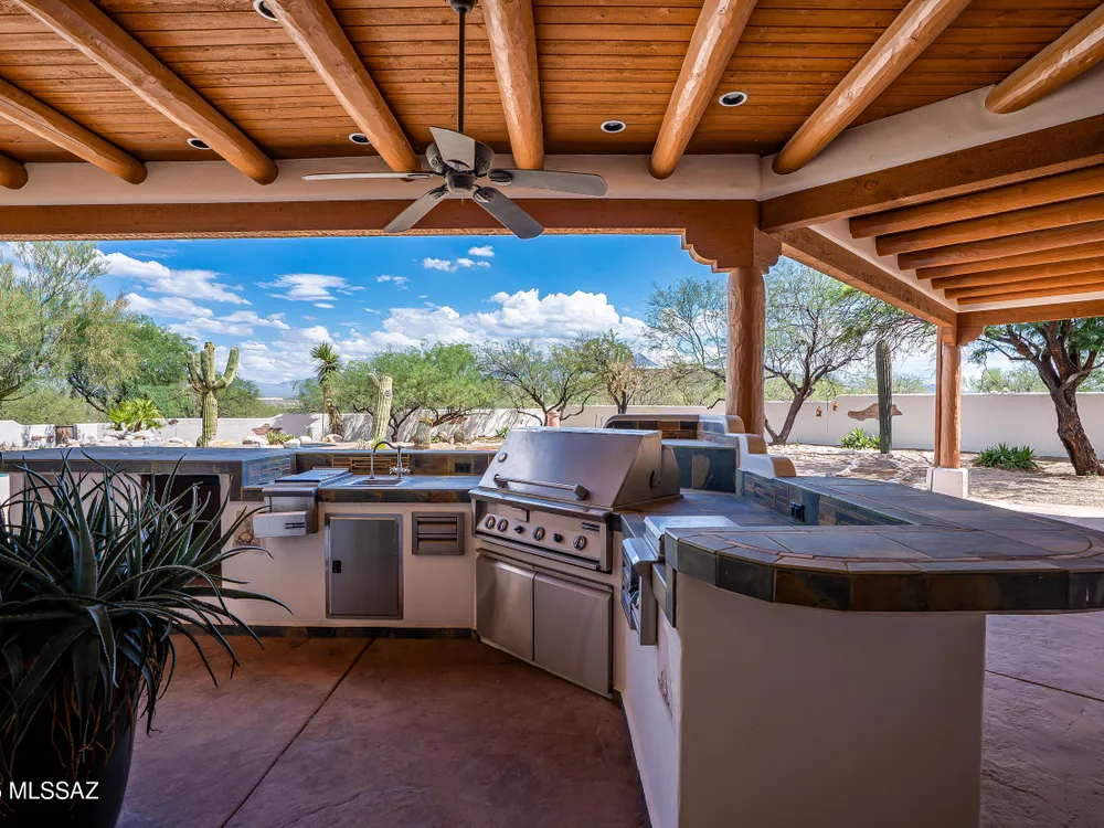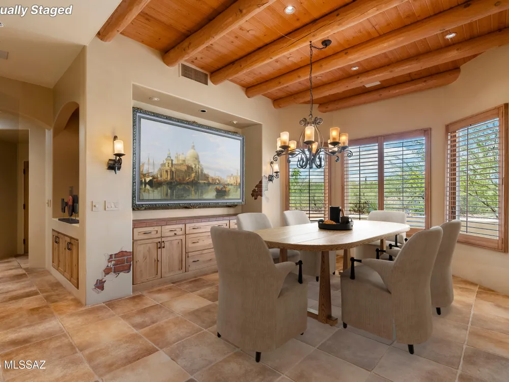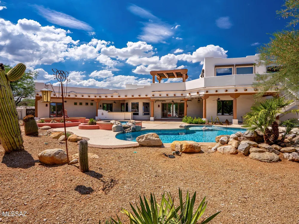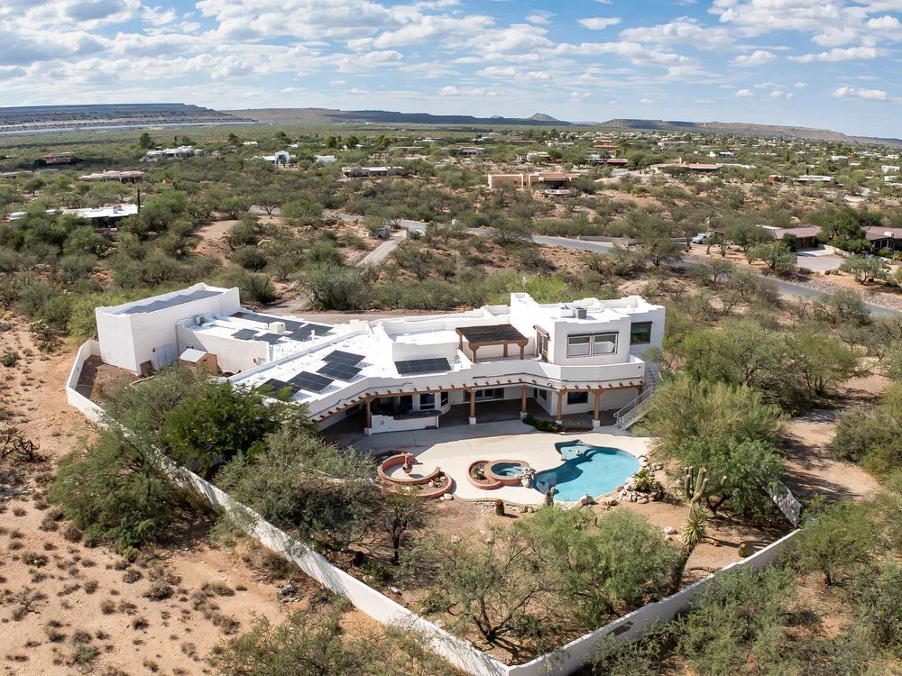 Start your morning on the upper observation deck watching the sun rises over the Santa Rita Mountains. Whether you're entertaining friends around the heated pool, tending to your raised garden beds, or watching a movie in your private theater, every space offers its own kind of comfort and joy. Impeccably designed and thoughtfully updated, this exceptional Green Valley estate delivers unmatched privacy, quality, and smart-living convenience. The resort-style backyard is anchored by a custom pool and spa with $50K in upgrades, including a natural gas and solar heating system. Inside, this 4,928 sq ft residence features 7 bathrooms, oversized suites with patio access, and a whole-home automation system with programmable one-touch controls. see upgrades list in mls docs
