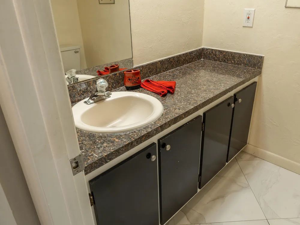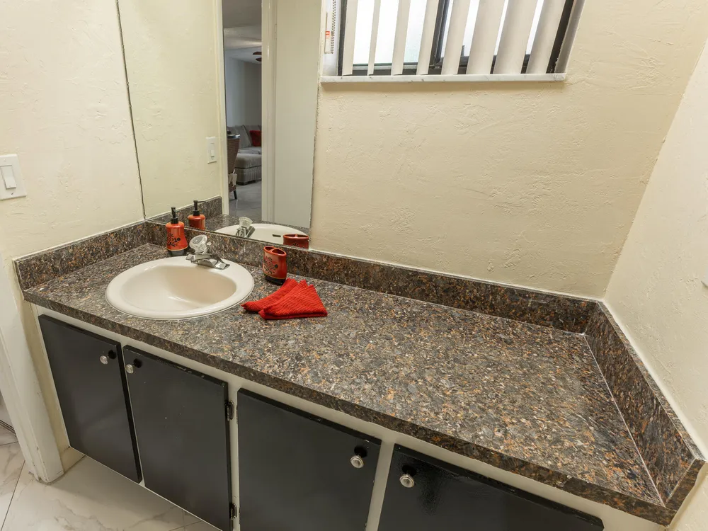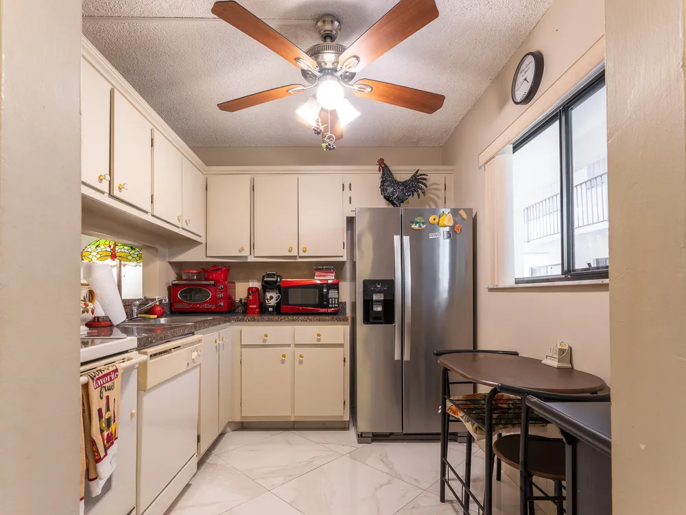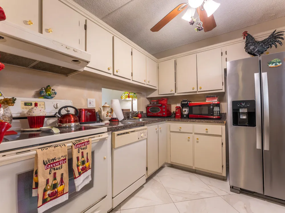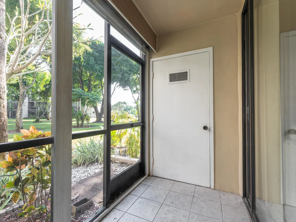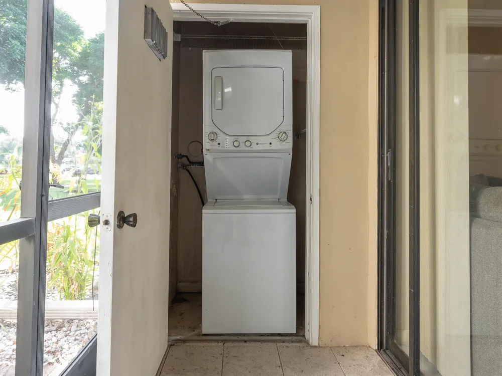 Spacious 1 bedroom 1.5 bath condo on the first floor in the Oleander Community in Las Verdes. Newer ceramic tiled floor, nice sized kitchen with newer refrigerator, stove/oven, dishwasher, ceiling fan. Open living room/dining area, ceiling fan, overlooking the enclosed patio with a garden view, sliding glass doors with vertical blinds. Master bedroom with ceiling fan, walk-in closet, bathroom with tub/shower. Washer/Dryer in the utility closet on the patio. Enclosed patio with roll down hurricane shutters. Close to Shopping, Downtown Delray and the Beaches!! Condo is waiting for new owners to call this place home!!