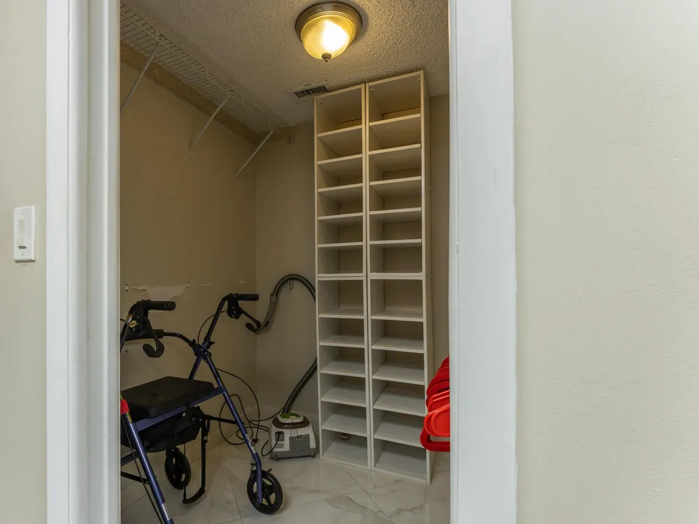 - Entry Level Living Area, Walk-In Closet(s), Family Room, Family/Dining Room, Blinds, Window Vertical(s), Primary Downstairs, Storm Shutters