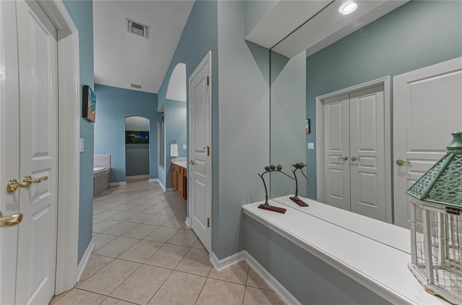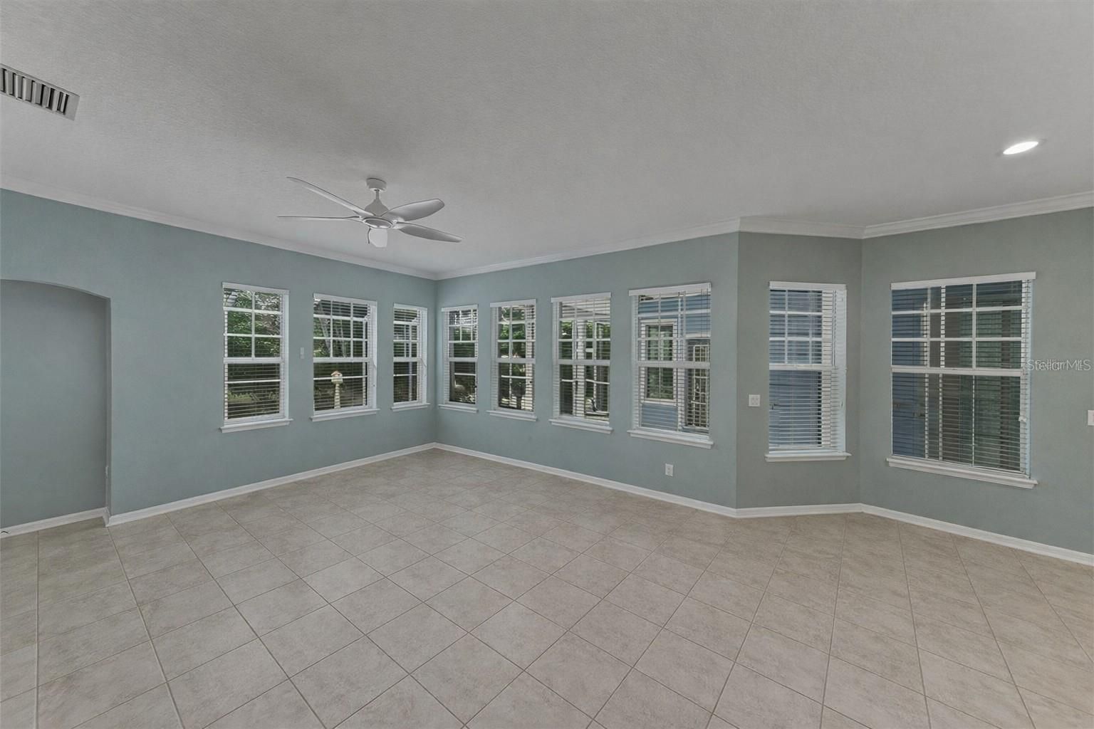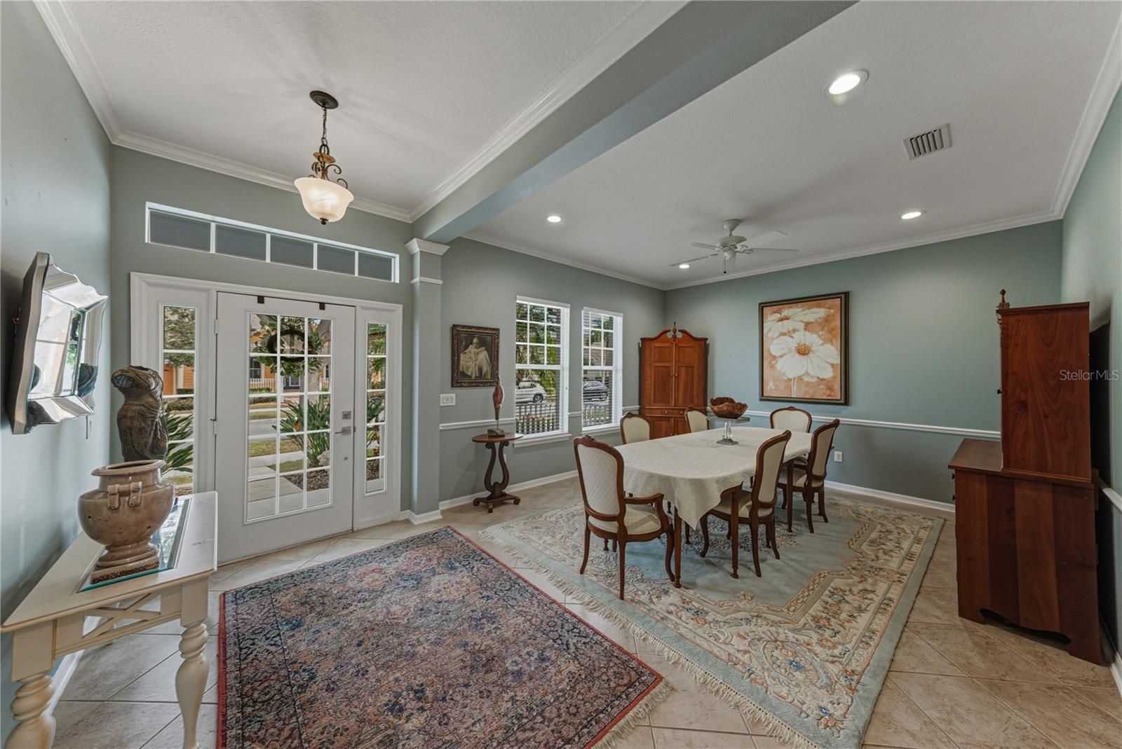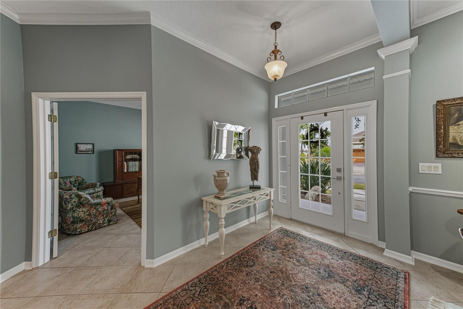 - Crown Molding, Eat-in Kitchen, High Ceilings, Kitchen/Family Room Combo, Open Floorplan, Main Level Primary, Solid Surface Counters, Split Bedrooms, Walk-In Closet(s)