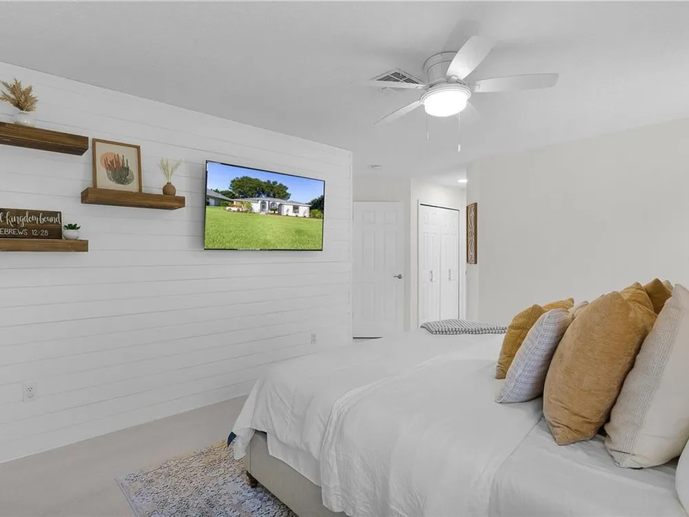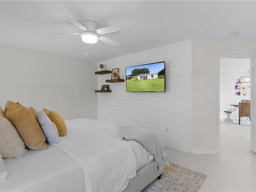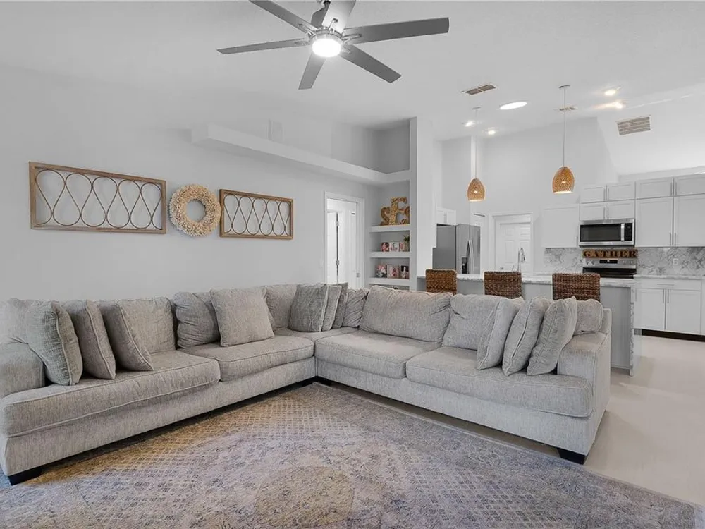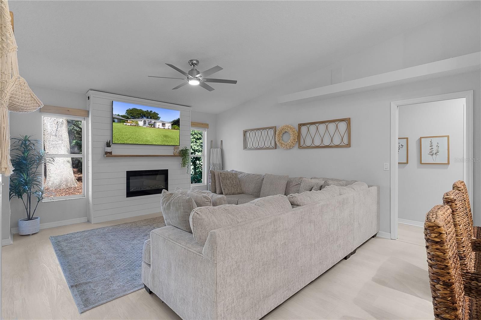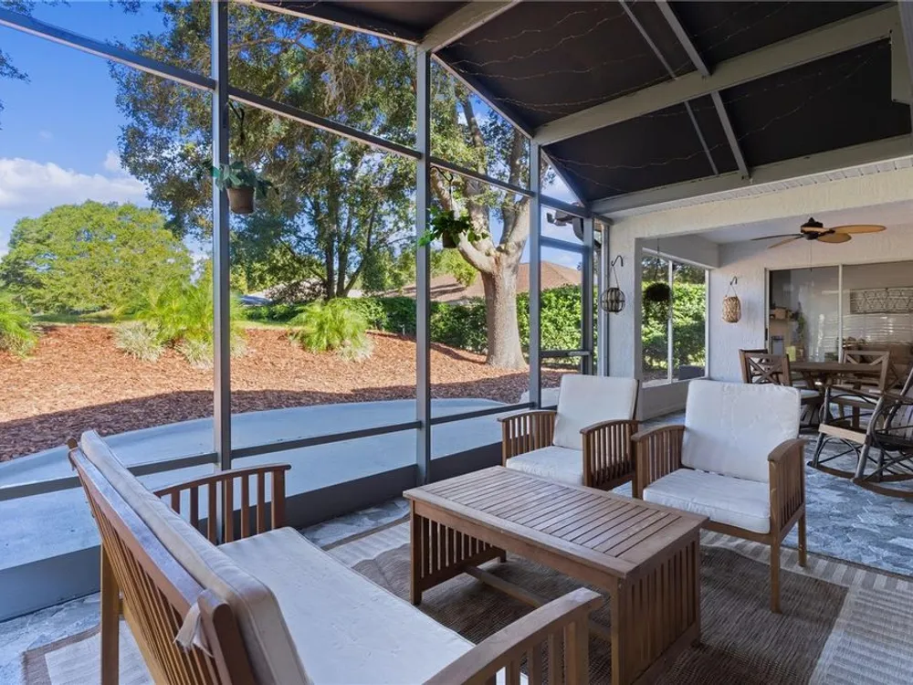 Welcome to The Grove! An HOA Community with fees of only $77/month! This home is move-in ready with too many improvements to list, including a WHOLE HOME water filtration system and a Stanley Steamer Restore UV light system to keep the air ducts clean and healthy from the Florida humidity! There is also a transferable home warranty, which includes the A/C & hot water system! This home has the light, bright look you’ve been looking for with light-colored granite and quartz counters, open floor plan and one continuous flooring throughout the home. The spectacular feature wall with shiplap and an electric fireplace is a great area to get cozy and feel the ambiance created! A spacious Primary bedroom is located on the opposite side of the home from bedrooms 2 & 3 for the utmost privacy. Other aspects of this home to consider are the oversized screen lanai, a side garage (new garage door and system!) with more driveway space that is so convenient! Residents may choose to become social members at the clubhouse for an additional fee. Please call the clubhouse for information on how you can enjoy features such as pickleball, tennis, indoor racquetball, sauna and weight room. The breathtaking views overlooking Lake Griffin from the gorgeous pool might alone just be with the membership! If you would rather be on the lake than observing the view, there is also an opportunity to use the marina! The clubhouse restaurant is just perfect for your needs after golfing, swimming or boating. Roof is 2020. NO BOND, FURNITURE AVAILABLE SEPARATELY!