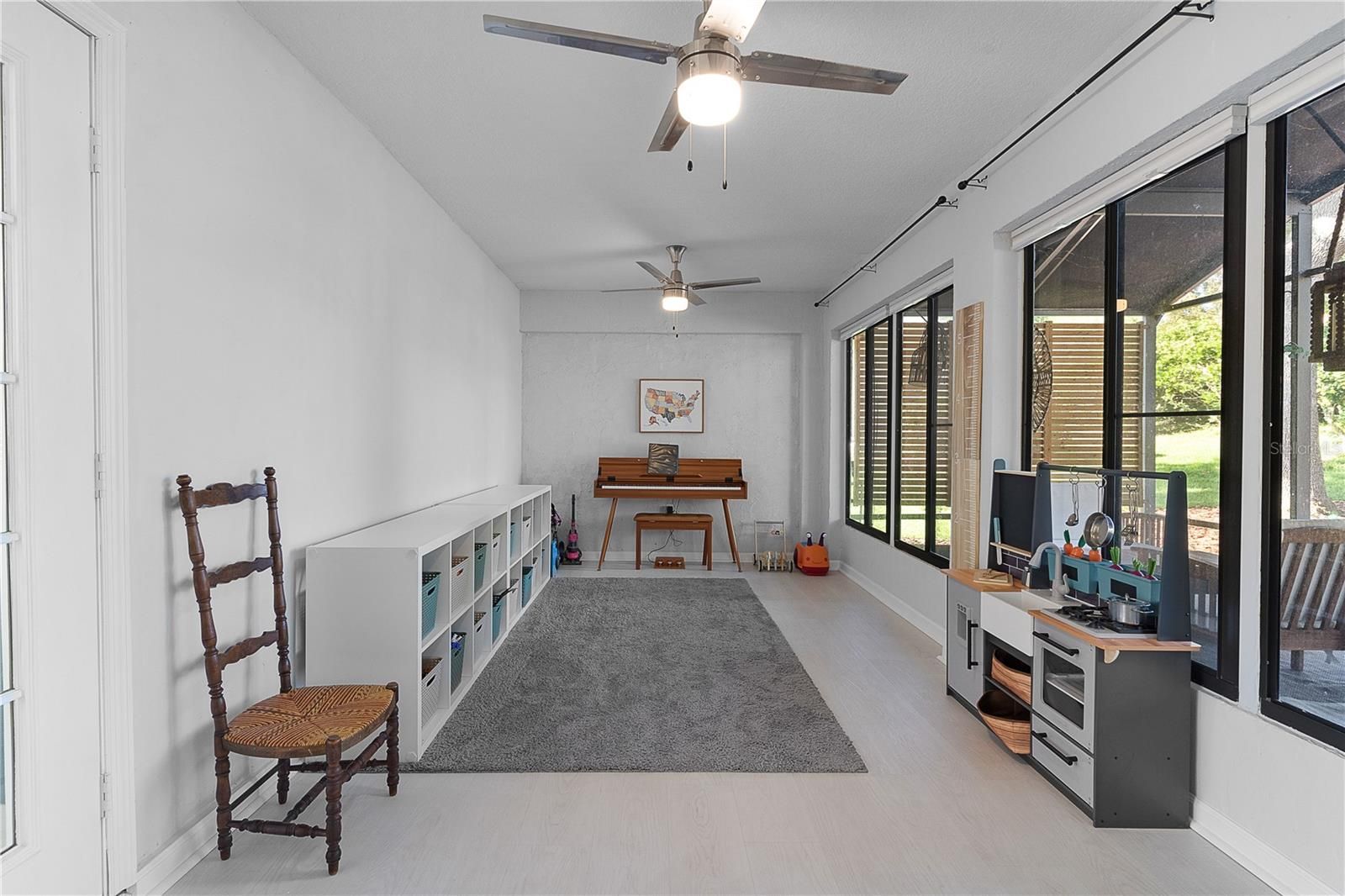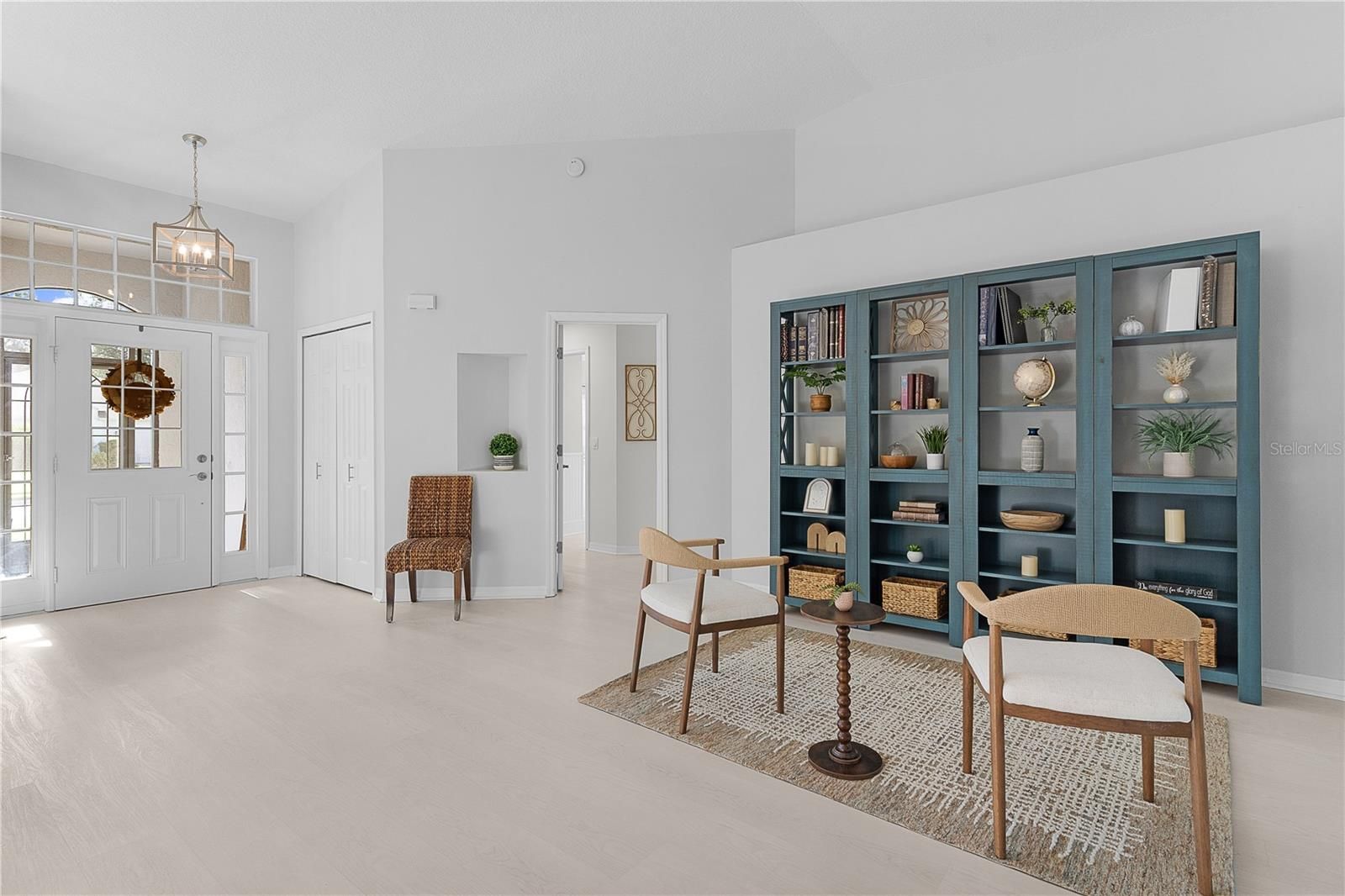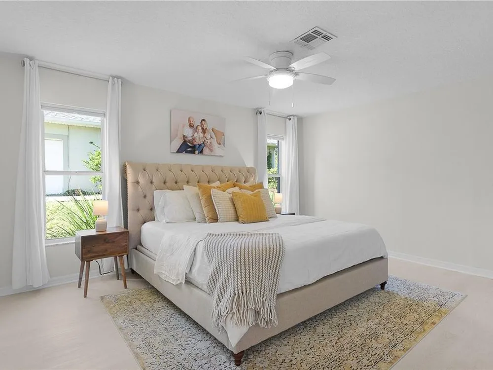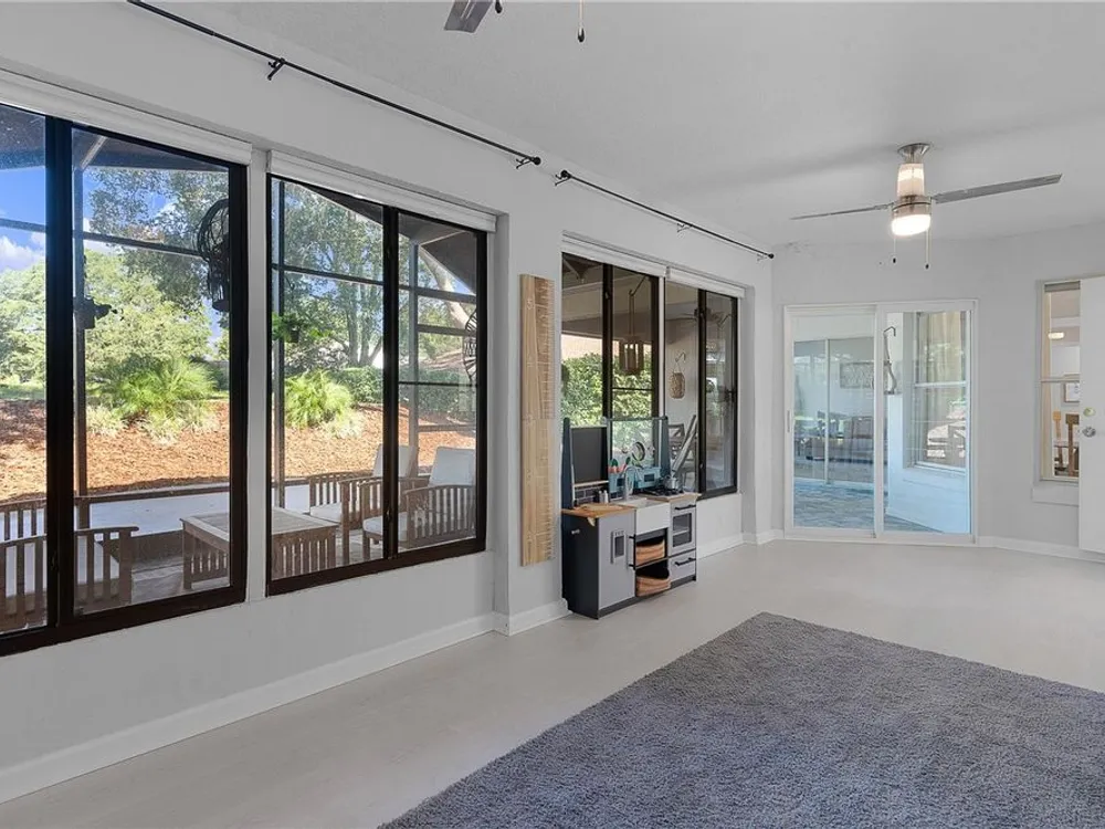 Welcome to The Grove! An HOA Community with fees of only $77/month! This home is move-in ready with too many improvements to list, including a WHOLE HOME water filtration system and a Stanley Steamer Restore UV light system to keep the air ducts clean and healthy from the Florida humidity! There is also a transferable home warranty, which includes the A/C & hot water system! This home has the light, bright look you’ve been looking for with light-colored granite and quartz counters, open floor plan and one continuous flooring throughout the home. The spectacular feature wall with shiplap and an electric fireplace is a great area to get cozy and feel the ambiance created! A spacious Primary bedroom is located on the opposite side of the home from bedrooms 2 & 3 for the utmost privacy. Other aspects of this home to consider are the oversized screen lanai, a side garage (new garage door and system!) with more driveway space that is so convenient! Residents may choose to become social members at the clubhouse for an additional fee. Please call the clubhouse for information on how you can enjoy features such as pickleball, tennis, indoor racquetball, sauna and weight room. The breathtaking views overlooking Lake Griffin from the gorgeous pool might alone just be with the membership! If you would rather be on the lake than observing the view, there is also an opportunity to use the marina! The clubhouse restaurant is just perfect for your needs after golfing, swimming or boating. Roof is 2020. NO BOND, FURNITURE AVAILABLE SEPARATELY!