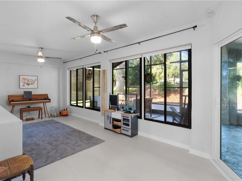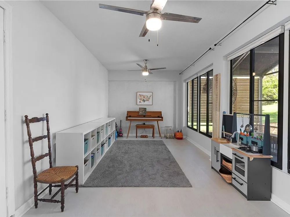 - Ceiling Fan(s), Kitchen/Family Room Combo, Living/Dining Room, Open Floorplan, Solid Surface Counters, Split Bedrooms, Stone Counters, Vaulted Ceiling(s), Window Treatments