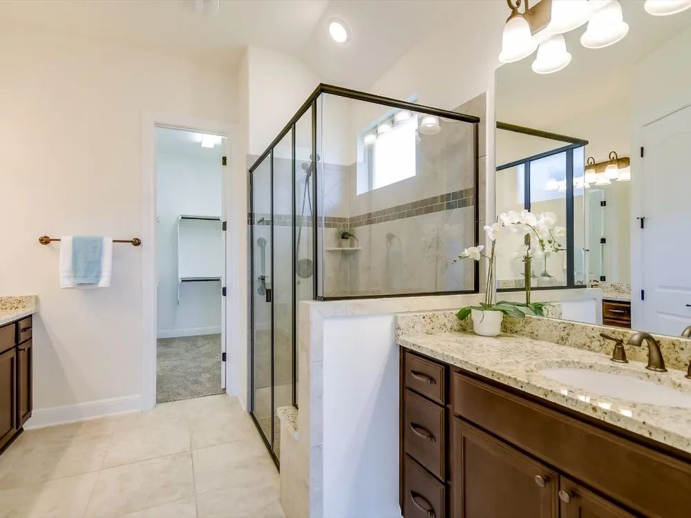 - Breakfast Bar, Tray Ceiling(s), Ceiling Fan(s), Double Vanity, French Door(s)/Atrium Door(s), Granite Counters, Kitchen Island, Main Level Primary, NoInteriorSteps, Open Floorplan, Pantry, Recessed Lighting, Smart Thermostat, Vaulted Ceiling(s), Walk-In Closet(s)