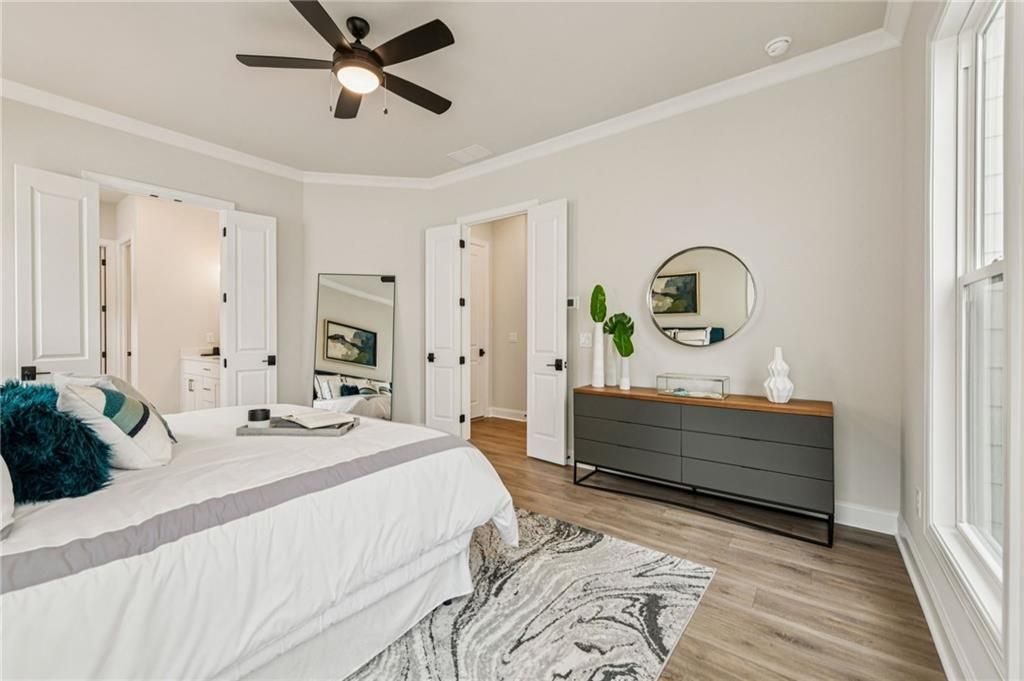 - Crown Molding, Pull Down Attic Stairs, Double Vanity, High Ceilings, High Speed Internet, Walk-In Closet(s), Dual Pane Window(s), Bathroom, Bedroom, Bonus Room, Great Room, Kitchen, Loft, Primary Bathroom, Primary Bedroom