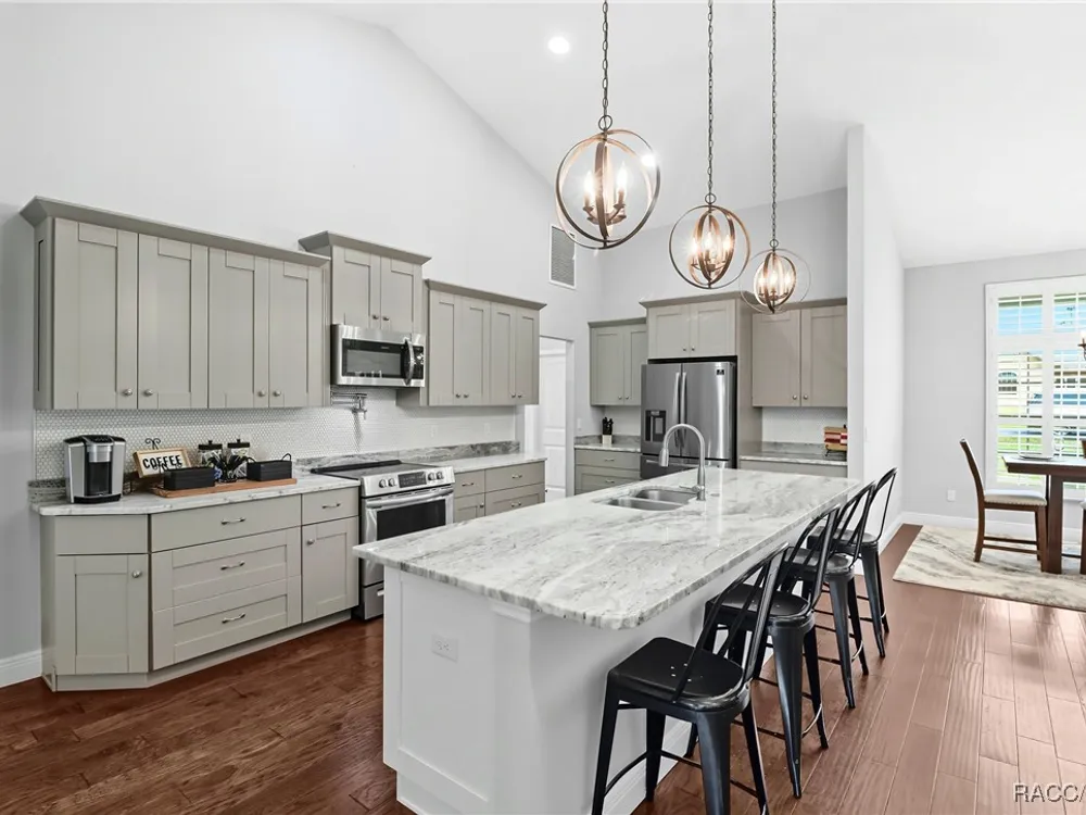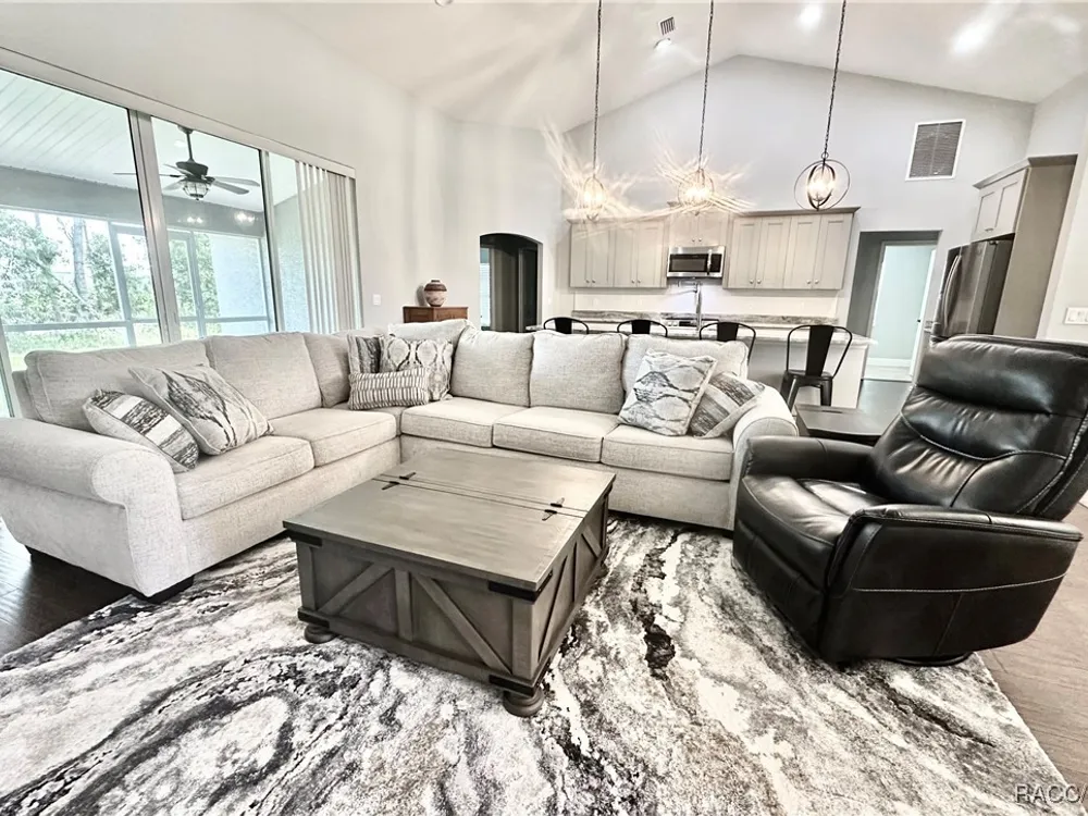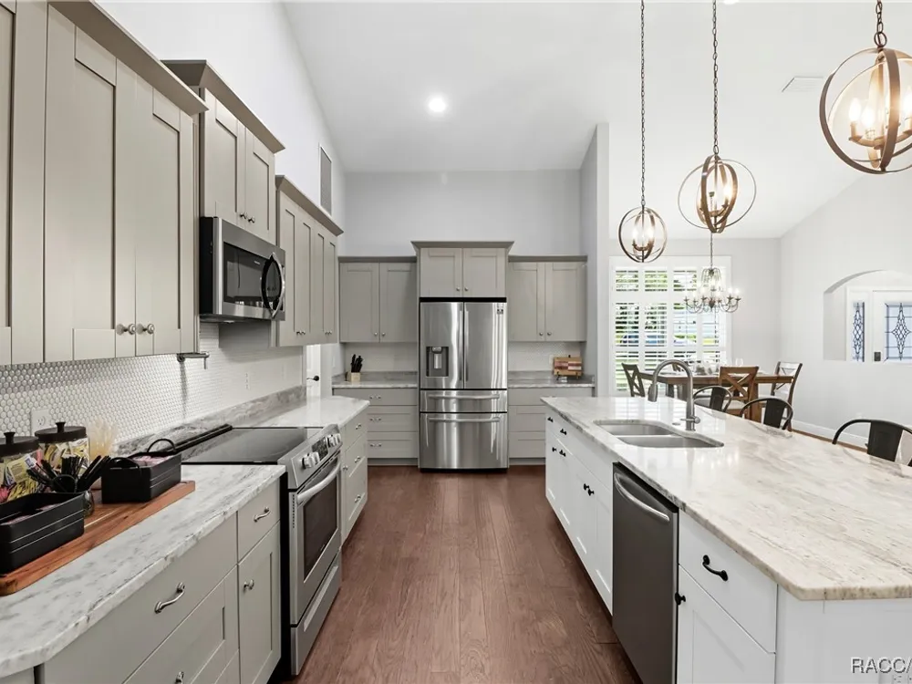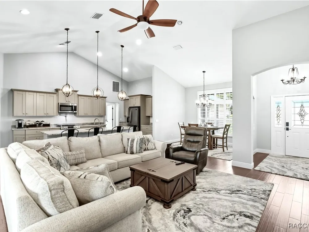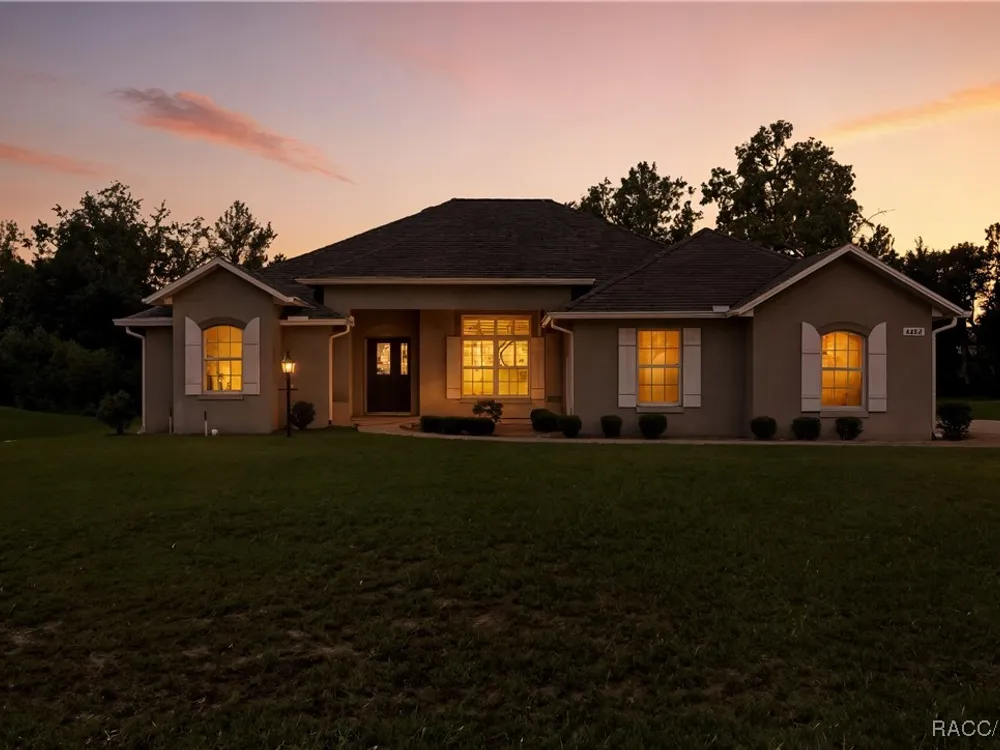 TURN-KEY AND FULLY FURNISHED!!! This immaculate, like-new home offers all the modern conveniences with a prime location in the Horse Capital of the World! Situated on almost a half an acre, this Ocala oasis is nestled in the beautiful, quiet neighborhood of Kingsland Country Estates. The thoughtfully designed 3/2 split floor-plan is highlighted by desirable modern aesthetics including vaulted ceilings, engineered hardwood flooring throughout main living areas, granite countertops, high end finishes, and the peace of mind of a new 2024 roof! The gorgeously appointed kitchen is a chef’s dream come true with granite countertops, a large pantry, near-new stainless steel appliances, a pot-filler faucet and an expansive 10-foot island for all the chef’s creations or entertaining! The luxurious spoils don’t stop there though! The spacious master suite features a beautiful tray ceiling (as do the secondary bedrooms), dual walk-in closets, and a generously sized flex space for an office or reading nook. The thoughtful layout continues into the ever-inviting ensuite complete with a modern tiled walk-in shower, dual granite vanities, and the serenity that only a soaking tub can offer with a relaxing bubble bath at the day’s end. Beyond the show-stopping interior, immerse yourself in Florida’s beautiful weather and enjoy the solitude of no rear neighbors as the sliding pocket doors offer an unobstructed experience of the screened lanai, accented by newly installed pavers. Beautifully designed, meticulously maintained, ideally located AND OFFERED FULLY FURNISHED, the only thing this home is missing is YOU!