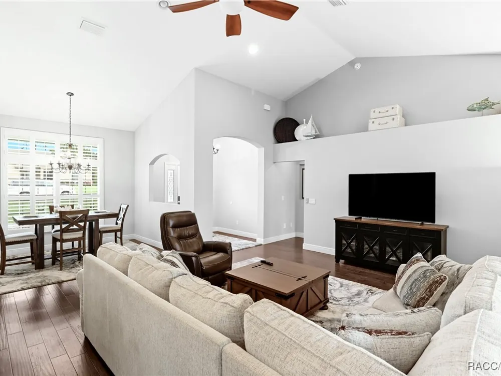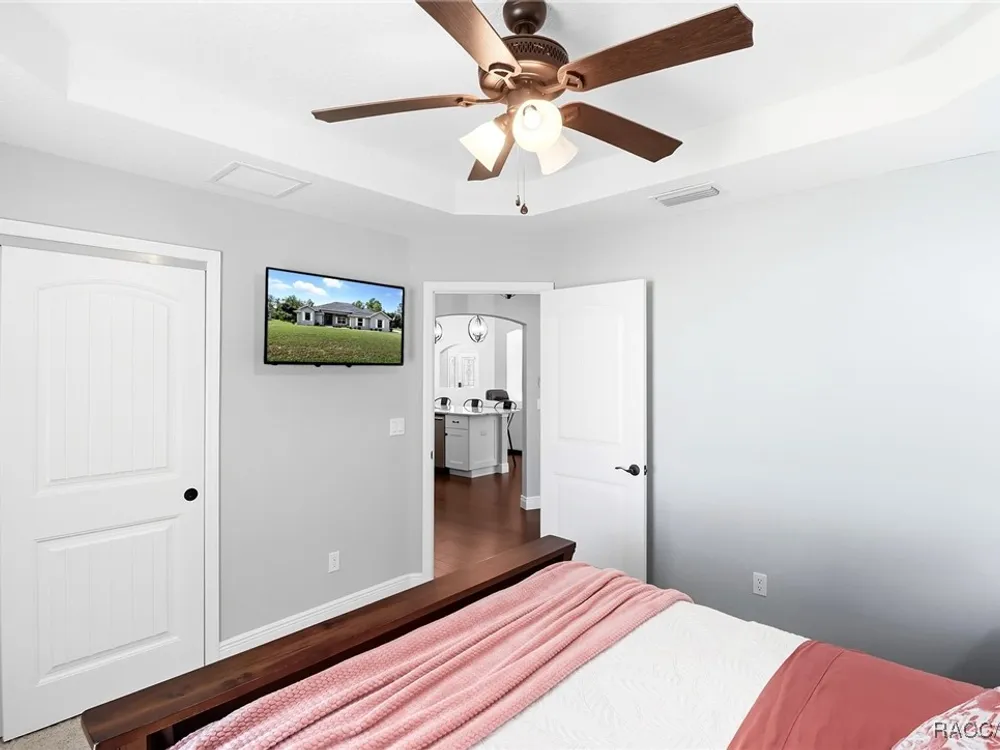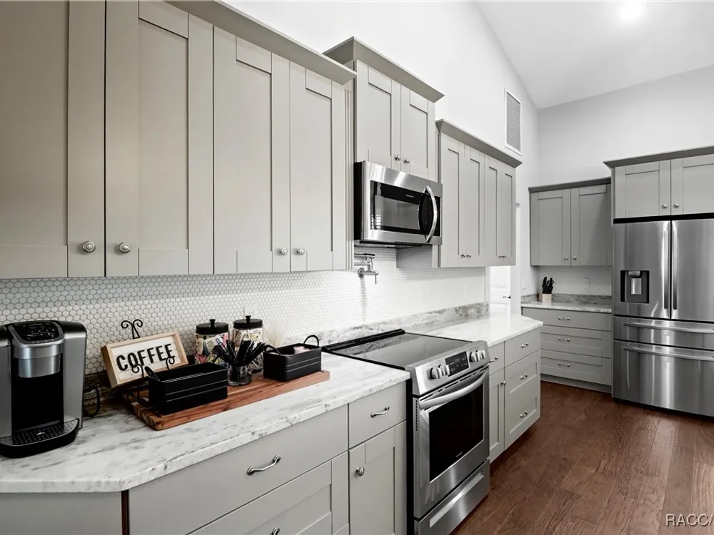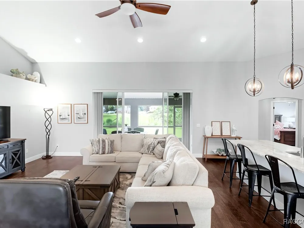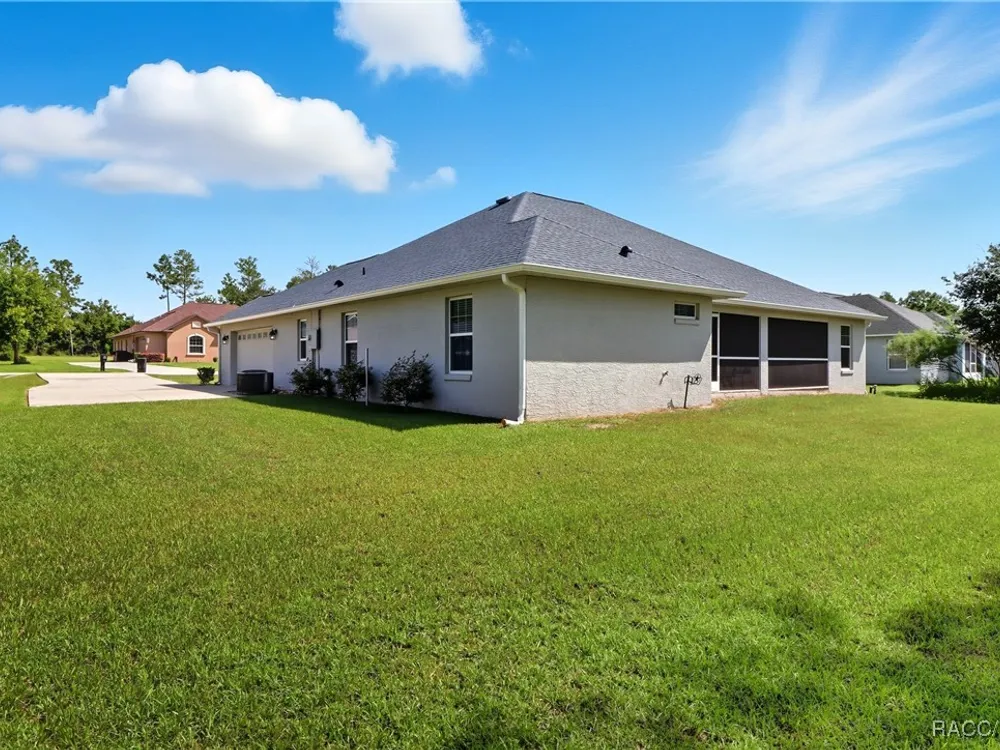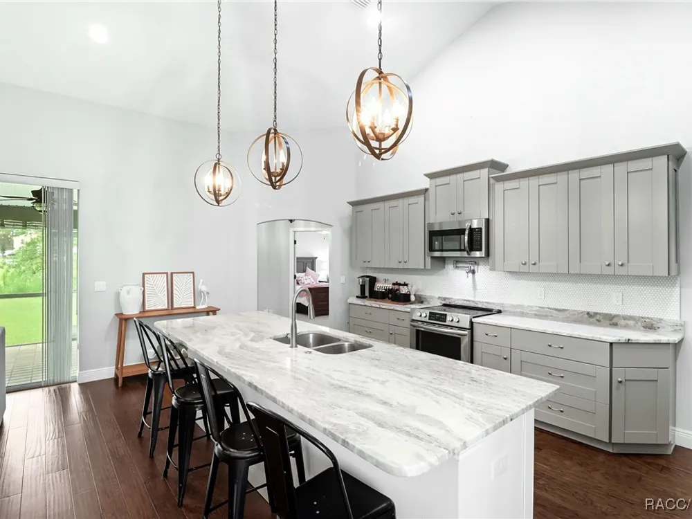 TURN-KEY AND FULLY FURNISHED!!! This immaculate, like-new home offers all the modern conveniences with a prime location in the Horse Capital of the World! Situated on almost a half an acre, this Ocala oasis is nestled in the beautiful, quiet neighborhood of Kingsland Country Estates. The thoughtfully designed 3/2 split floor-plan is highlighted by desirable modern aesthetics including vaulted ceilings, engineered hardwood flooring throughout main living areas, granite countertops, high end finishes, and the peace of mind of a new 2024 roof! The gorgeously appointed kitchen is a chef’s dream come true with granite countertops, a large pantry, near-new stainless steel appliances, a pot-filler faucet and an expansive 10-foot island for all the chef’s creations or entertaining! The luxurious spoils don’t stop there though! The spacious master suite features a beautiful tray ceiling (as do the secondary bedrooms), dual walk-in closets, and a generously sized flex space for an office or reading nook. The thoughtful layout continues into the ever-inviting ensuite complete with a modern tiled walk-in shower, dual granite vanities, and the serenity that only a soaking tub can offer with a relaxing bubble bath at the day’s end. Beyond the show-stopping interior, immerse yourself in Florida’s beautiful weather and enjoy the solitude of no rear neighbors as the sliding pocket doors offer an unobstructed experience of the screened lanai, accented by newly installed pavers. Beautifully designed, meticulously maintained, ideally located AND OFFERED FULLY FURNISHED, the only thing this home is missing is YOU!