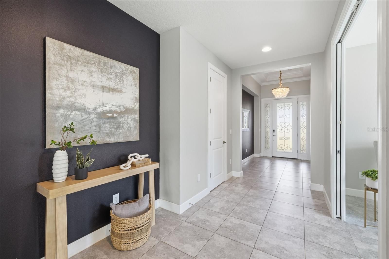 Come and enjoy luxury living at 5263 Morey Farms Loop in Palmetto, Florida, nestled within the highly sought-after community of Esplanade at Artisan Lakes. This is more than a home—it’s a lifestyle. Built in 2020 and enhanced with extensive, high-end upgrades, this rarely available Santini model offers 2,203 square feet of beautifully curated living space with three bedrooms and two and a half bathrooms. With the level of improvements throughout, it feels as pristine and refined as new construction. As you arrive, the expanded extra-wide driveway and oversized two-car garage immediately make an impression, complete with a stunning epoxy-coated floor that blends durability with elegance. Every detail has been thoughtfully considered to elevate both style and function. The gourmet kitchen is truly the heart of the home, featuring a stainless steel gas stove, 42-inch cabinetry, creamy quartz countertops, a generous oversized island, and all new appliances. A custom-designed pantry offers exceptional extended storage. The kitchen flows effortlessly into the open living and dining areas, creating a seamless environment ideal for entertaining or simply enjoying everyday life. Custom interior lighting fixtures illuminate the home beautifully, while ceiling fans in every bedroom ensure year-round comfort. Speaking of the Santini model, this floor plan offers a feature that truly sets it apart within Esplanade at Artisan Lakes. The two triple sliders in the dining area, along with the double slider in the main living space, fully retract to open the home completely to the lanai. When opened together, they dissolve the boundary between indoors and outdoors, transforming the entire living space into one expansive, flowing environment. Natural light pours in, fresh air circulates freely, and the home becomes an entertainer’s dream—where the kitchen, dining room, living area, and screened lanai merge into one stunning indoor-outdoor retreat. This seamless integration is a signature design element unique to the Santini model and truly captures the essence of Florida living.