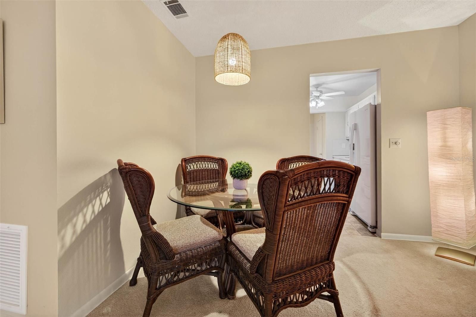 - Ceiling Fan(s), Living/Dining Room, Thermostat, Window Treatments