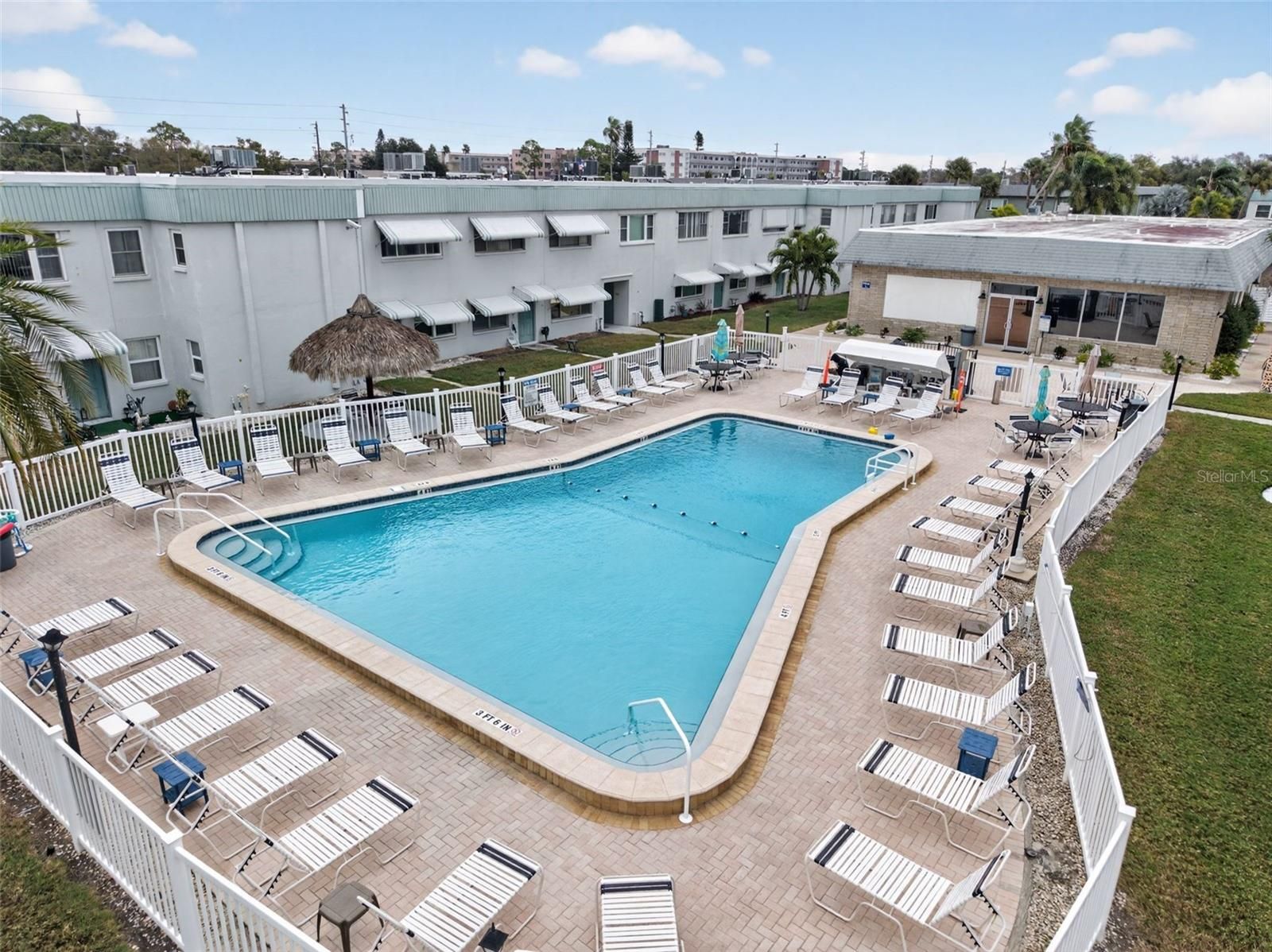 Welcome to Paradise Shores! This well-maintained 2-bedroom, 1-bath condo features a thoughtfully designed floor plan with a versatile bonus room ideal for a second living area, home office, or hobby space. The unit is equipped with HURRICANE IMPACT WINDOWS, and the AC is approximately 3 years old, offering added peace of mind and efficiency. Enjoy the convenience of a COVERED PARKING spot located close to the building. Paradise Shores is an active 55+ community in the heart of St. Pete, offering fantastic amenities including a sparkling pool, shuffleboard, and outdoor kitchens with a tiki hut—perfect for an active, low-maintenance Florida lifestyle.