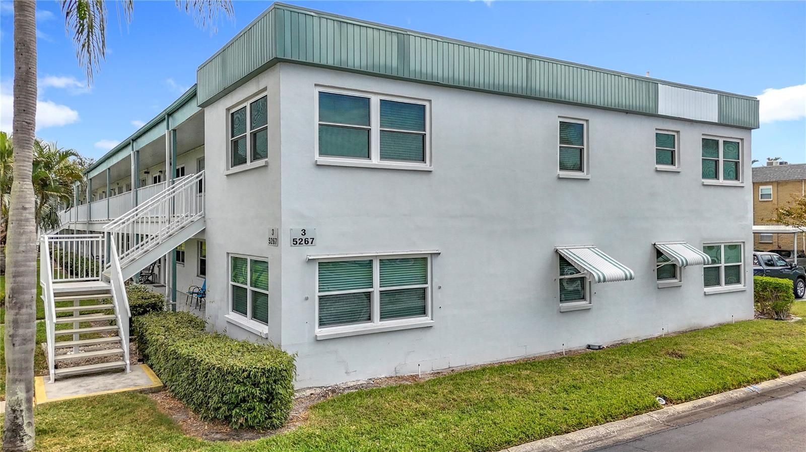 Welcome to Paradise Shores, a vibrant 55+ community in the heart of St. Petersburg! This beautifully maintained 2-bedroom, 2-bath 1110 sq ft. corner second-floor condo offers peace of mind with impact windows and no required milestone inspection—only two stories in the building. Keep in mind that because this is a corner unit you have additional windows that provide lots of light that you wouldn't have with an interior unit. The entire unit features easy-care tile flooring throughout and a spacious Florida room that provides extra living or hobby space. This unit comes with one covered parking space that is conveniently located by the building. Enjoy cooking with natural gas—the range is gas and the gas fee is included in your monthly maintenance! Paradise Shores offers wonderful amenities including a sparkling pool, clubhouse with library, large entertainment area, shuffleboard courts, grilling and gathering spaces, and an active social calendar. Laundry facilities are conveniently located on-site. This central location puts you just minutes from award-winning Gulf beaches, the airports, shopping malls, restaurants, the VA and downtown St. Petersburg. Whether you’re seeking a full-time residence or a sunny seasonal retreat, this inviting condo offers affordable Florida living at its best!