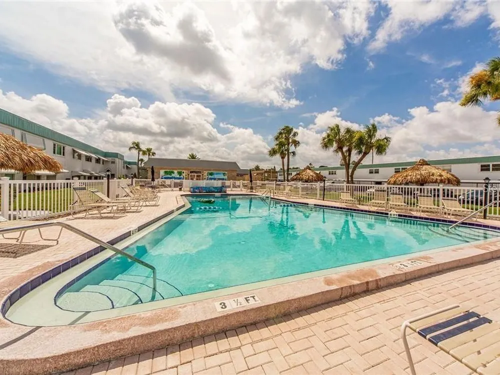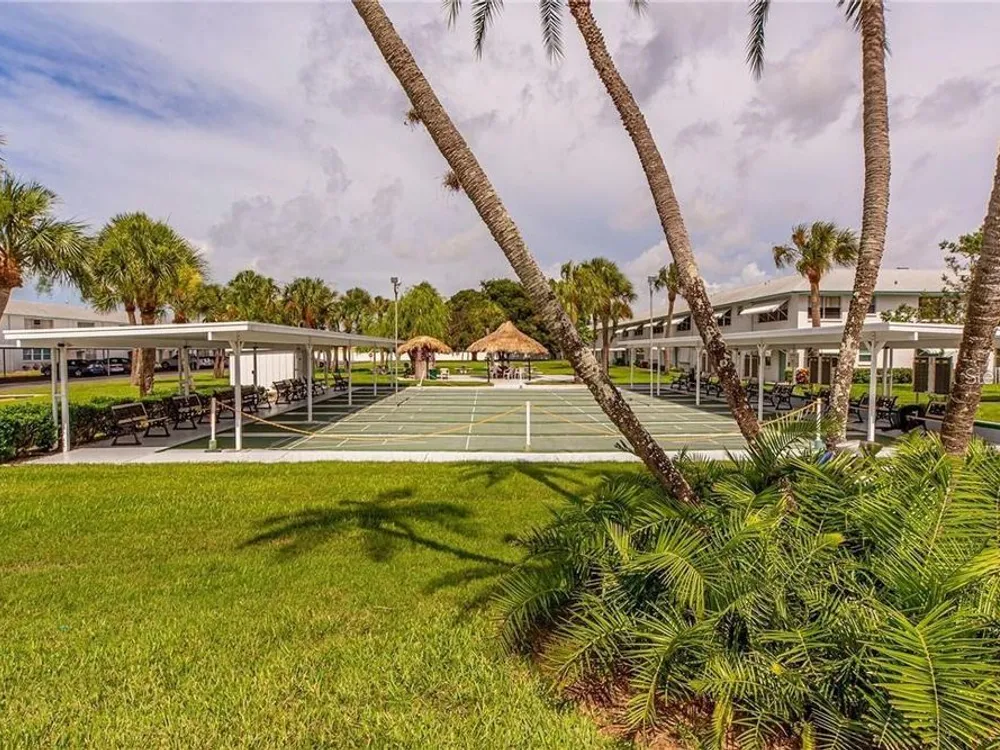 Welcome to your paradise, called "Paradise Shores," in the heart of St. Pete, just minutes from our beautiful beaches, either full-time or as a winter retreat! What a wonderful place to call home. "RARELY AVAILABLE FIRST FLOOR": This very well-maintained 2-bedroom, 1-bath features a walk-in shower and covered parking space #5 steps from the condo and is move-in ready, turnkey!. As you enter this beautifully appointed 1st-floor condo, you will be greeted by a spacious open floor plan that seamlessly integrates the living, dining, and kitchen areas; there is also a bonus sunroom for additional space for an office or just relaxing with your favorite book and generous closets for plenty of storage. The spacious layout is perfect for entertaining friends and family, and having a covered parking space right outside the back door is now so convenient. This wonderful condo features updated windows, HVAC 2019, tile flooring, an appliance packet, and a walk-in shower in the bathroom for your convenience. Paradise Shores offers the welcoming 55+ condo that not only provides a comfortable living space but also encourages an active and vibrant lifestyle. At Paradise Shores, you can indulge in resort-style living with a heated pool that is open year-round, shuffleboard courts, and bocce ball for friendly conversation under the sun with friends and family. The property offers a grilling station and a community library. The clubhouse is the heart of the community, where you can connect with neighbors and forge lasting friendships. Located just moments from the beach, this condo combines the best of coastal living with the convenience of the nearby VA hospital, Target, Publix, Tyrone Mall, Seminole Outdoor Mall, Madeira Beach, shopping, dining, and cultural attractions, downtown St. Pete, and John's Pass—just too many to list. The monthly HOA fee includes cable TV, Wi-Fi, natural gas for cooking and heating the water (no hot water heaters in the unit; the hot water boilers are covered by the HOA), the building exterior, reserves, grounds maintenance, recreational facilities, the roof, trash, water & sewer. Schedule your private tour today and discover the endless possibilities awaiting you at Paradise Shores. Embrace the lifestyle you deserve. The seller is offering turnkey
