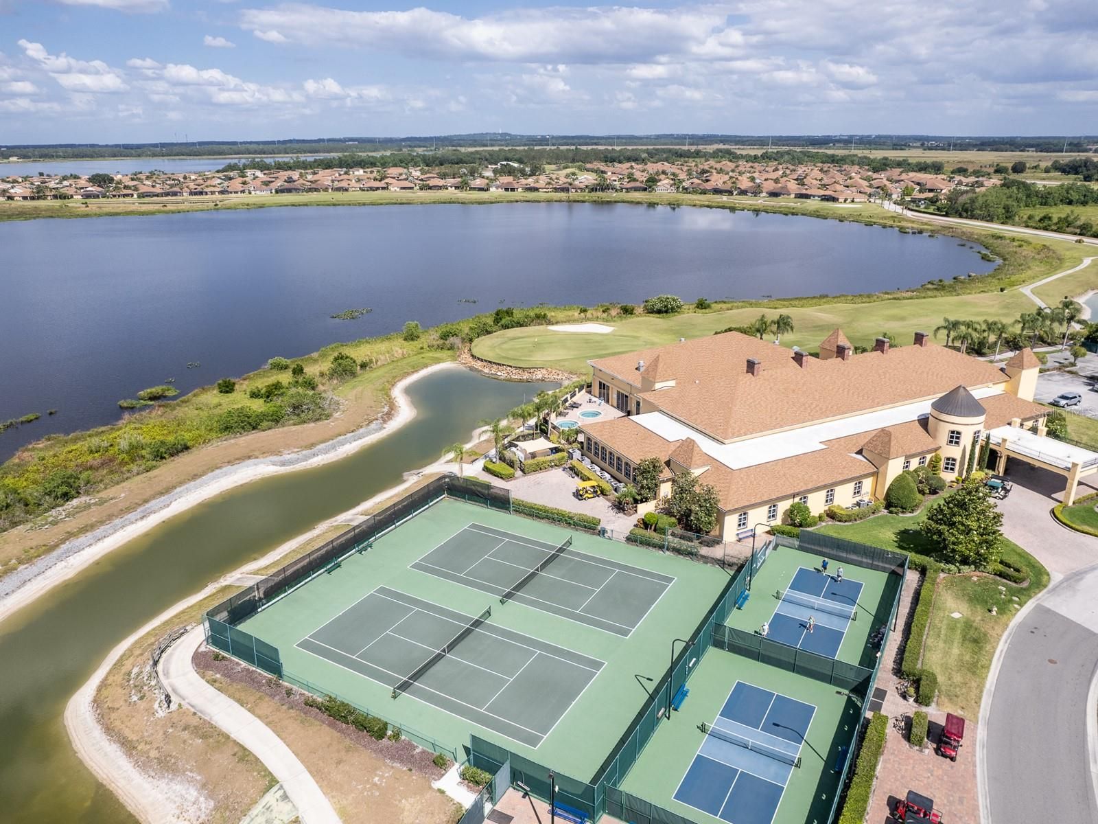 WAIT !!! DON"T SCROLL PAST THIS BEAUTIFUL DESIGNER HOME in the PREMIER Active 55+ Community in LAKE ASHTON. This amazing DESIGNER CUSTOM BUILT HOME has everything you are looking for..... From the Beautiful Front Door, and enclosed screened Entrance ... To the exceptional entrance with High Ceilings, and offering Coffered and Tray Ceilings in the Great Room and Master Bedroom. When you enter this amazing HOME, you will be awed by the Beautiful Designer Features that this home offers, that gives it an elegance that you will admire and enjoy for years to come. You will LOVE THE EXPANSIVE WATER VIEW OVER THE LAKE in the Back, that you can see easily from the extended Screened Veranda, LOOKING TOWARDS THE CLUBHOUSE and OVER THE GOLF COURSE... it is simply amazing. A Huge benefit in choosing this home is that "You" are going to save thousands on this property because the CDD DEBT IS COMPLETELY PAID IN FULL! The OPEN FLOOR PLAN sets the stage for seamless living combined with elegance. This HOME IS MOVE-IN READY. Some of the many designer upgrades in this home include: Large 20" Diagonal Tile throughout the home in most rooms with excellent upgraded carpeting in the bedrooms, the Gourmet Kitchen with Stainless Steel Appliances, which is open to the Great Room, has 42" All Wood Cherry Cabinets w/ crown molding "bump up and out cabinets, high end Tile Backsplash ( 2022) New Range (2022) Dishwasher (2023) Stainless Steel Refrigerator, Custom Pendant lights over the Kitchen Bar that looks into the GREAT ROOM, and beautiful Granite that completes the designers influence. This floor plan allows easy access to the extended Veranda through the 3 Sliding glass doors which opens from the Great Room into the Large SCREENED Veranda (14 X 34). The View looks over the Golf Course and Lake in the back. The Expanded Den creates a comfortable reading or gathering room for friends and family. The Master Bedroom boasts of a Tray Ceiling and sliders with Silhouette Vertical Blinds that lead to the Expanded Veranda. Throughout the house you will enjoy Designer Ceiling Fans, Window Tinting, Vertical Blinds at the Kitchen and Great Room Sliders, also Designer upgrades in the bathrooms that compliment the Master Bathroom Suite. Other important upgrades are the NEW ROOF in JULY 2025, Newer Water Heater in 2020, and the A/C is only 6 years old. The 2 car + Golf Cart garage adds additional storage that leads into the inside laundry room, with the Washer and dryer. You will enjoy the Active Lifestyle present in Lake Ashton that sets this community apart from other communities in the Central Florida area. 2 Large Clubhouses, 3 Natural Lakes, 2 Private Golf Courses, Bowing Alley, Movie Theater, Tennis, Pickleball, Basketball court indoor, 2 Pools, 1 indoor and 1 outdoor Pool with Hot Tubs, Sauna, 2 Fitness Centers, Cards, Crafts, Entertainment, Fishing, Boating and close to stores, shopping, and lots or Restaurants. Call today for your private tour and see how much this Active Lifestyle Community will add to your health and enjoyment during these Golden Years.